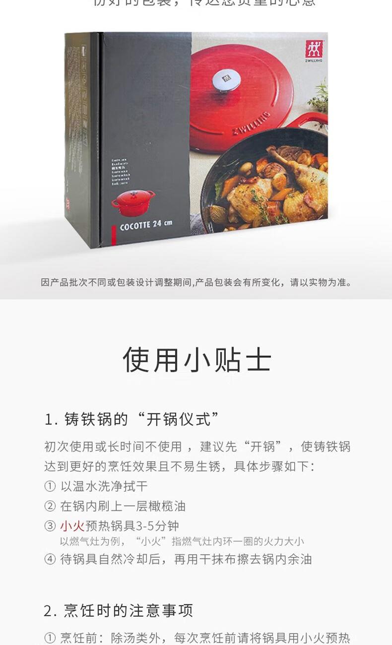 雙立人(ZWILLING)24cm圓形琺瑯鑄鐵鍋燉鍋