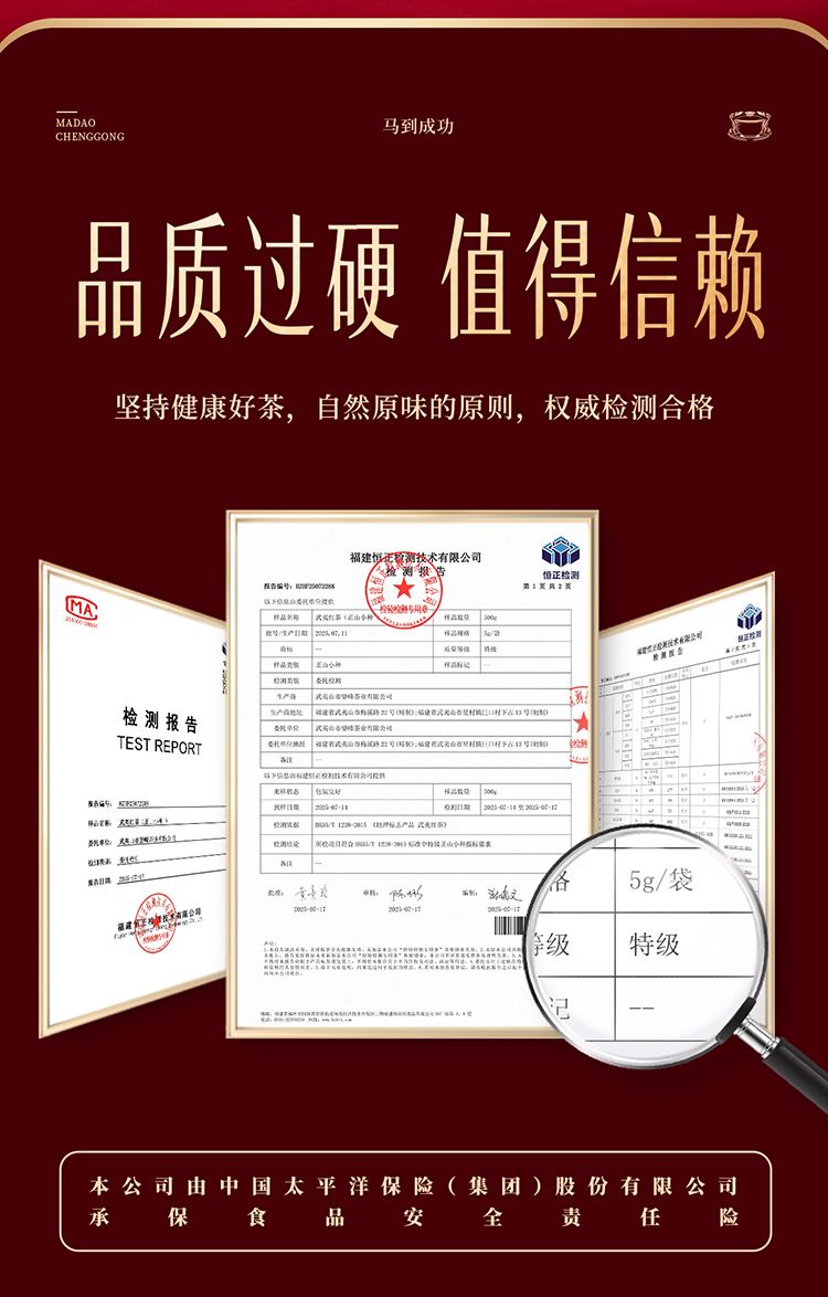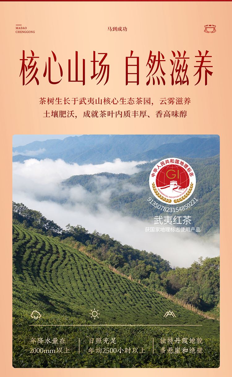 系列:正山小種-馬到成功 產(chǎn)地:福建·武夷山凈含量:250g/盒 等 級:特級 保質(zhì)期:36個月 產(chǎn)品原料:武夷紅茶 貯藏方式:干燥、密封、避光防潮、防異味 賣點: ①馬到成功吉祥茶禮,佳節(jié)走親訪友必備款伴手禮 ②武夷山高山茶園,不打農(nóng)藥,不撒肥,真正自然生態(tài)好茶 ③堅持武夷紅茶制作工藝,從采摘到制作,只為一杯好茶