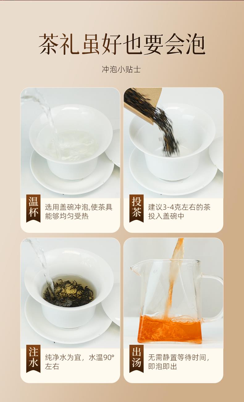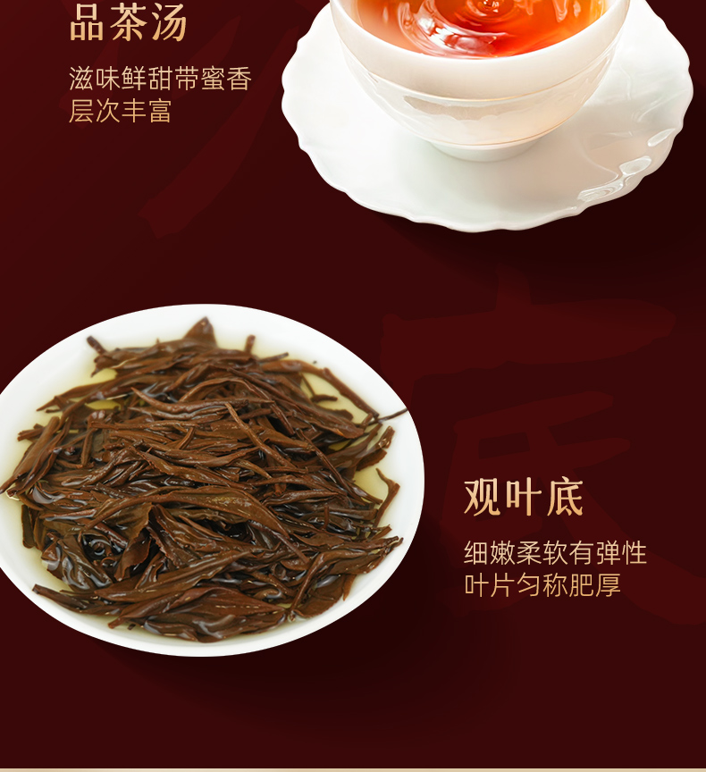 5.干茶=色澤烏潤 金芽顯露 茶湯=花果蜜香 紅潤透亮 葉底=鮮嫩均勻 完整舒展