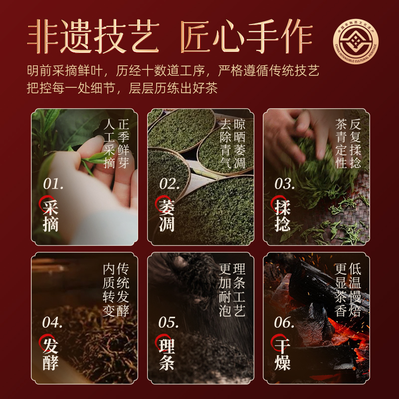 4.古法技藝 匠心制茶 傳統(tǒng)6大高標(biāo)準(zhǔn)制茶-1采 2萎 3揉 4酵 5理 6燥