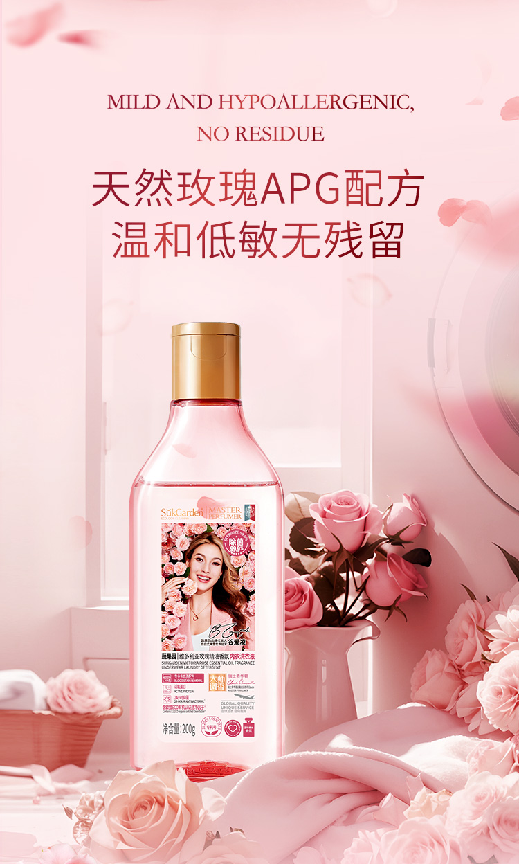 SukGarden蔬果園格拉斯玫瑰精油香氛洗衣液(袋裝)*500g*2 SukGarden蔬果園銀針雪松潔廁劑*800g*1 SukGarden蔬果園橘采星光果蔬餐具凈-白瓶*800g*1 SukGarden蔬果園維多利亞玫瑰精油香氛內(nèi)衣洗衣液*200g*1 蔬果園大師調(diào)香品 牌通用禮盒(A-26)-彩箱*250*125*295mm*1