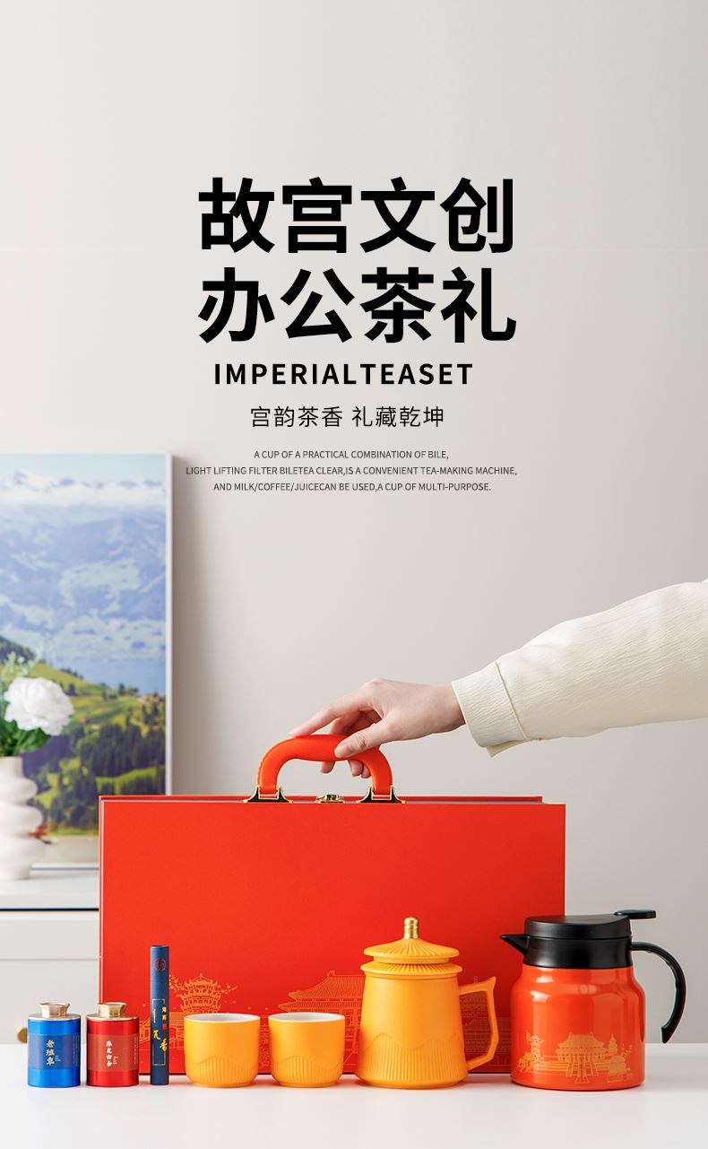 瓷語花香故宮文創(chuàng)辦公杯燜壺茶禮套裝 禮品已成功加入PPT!