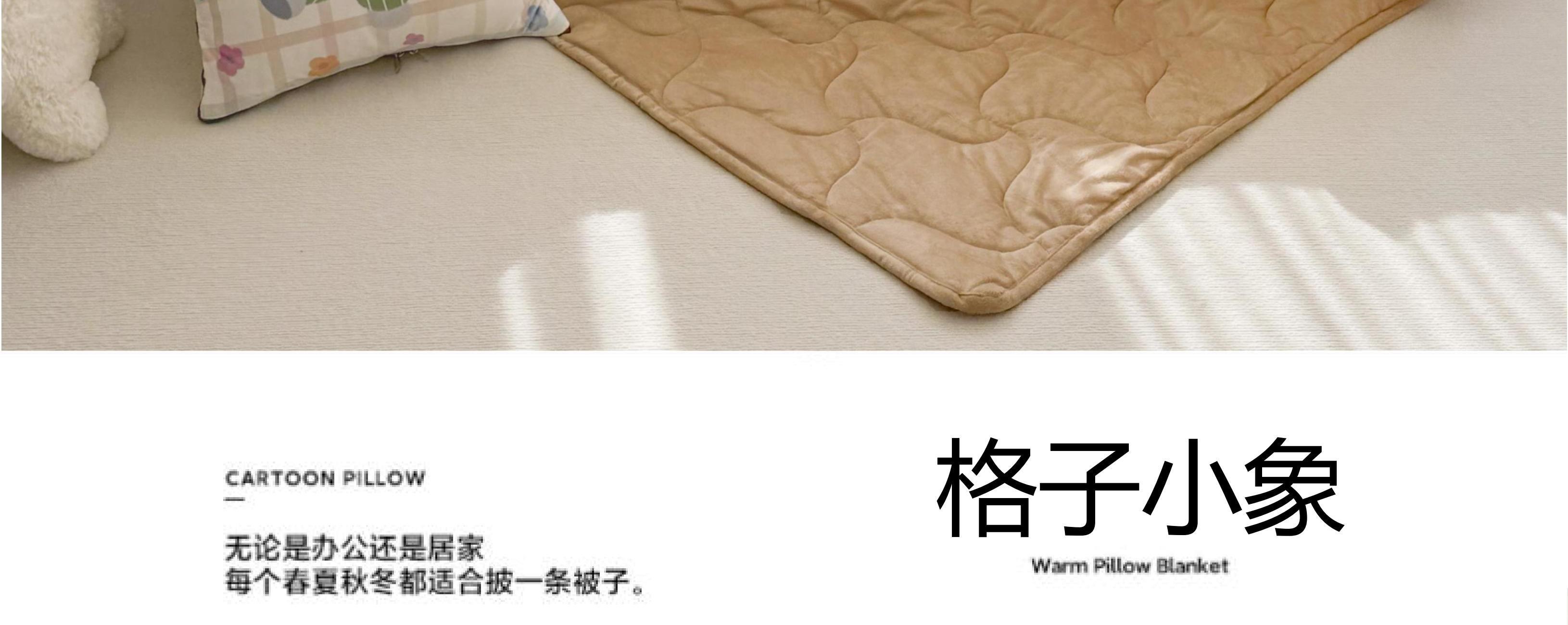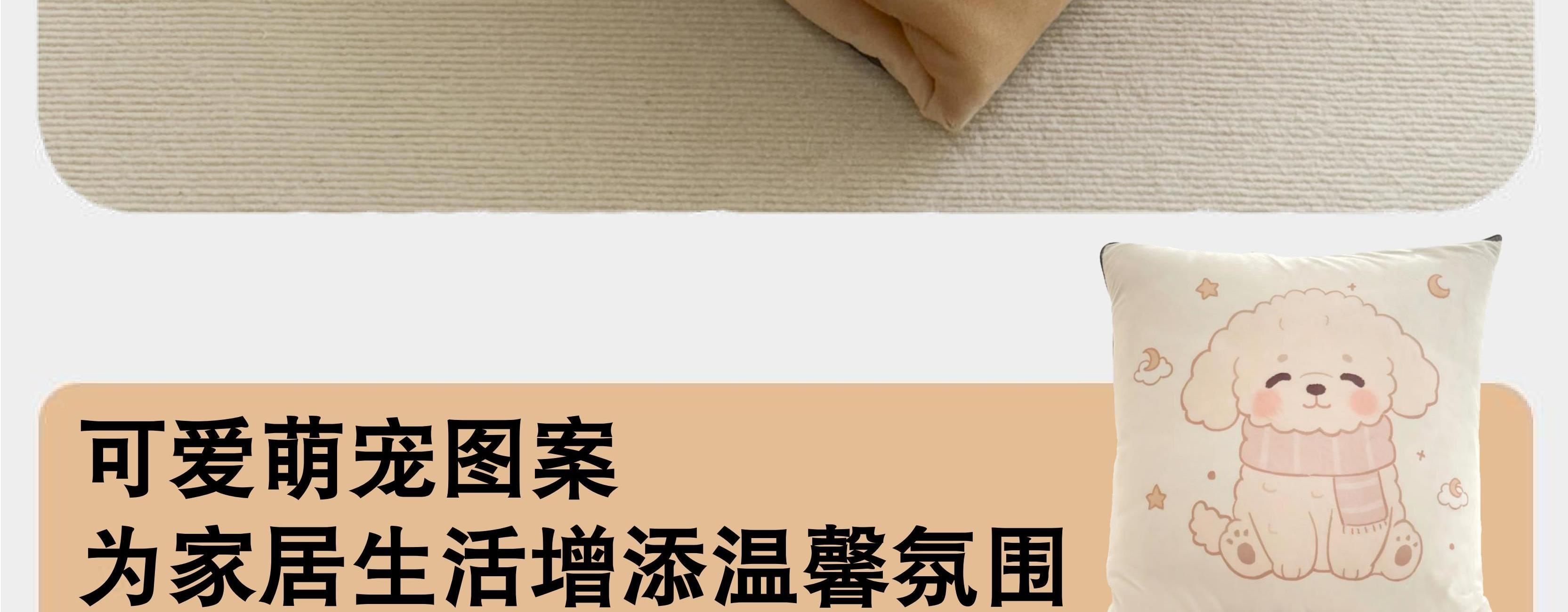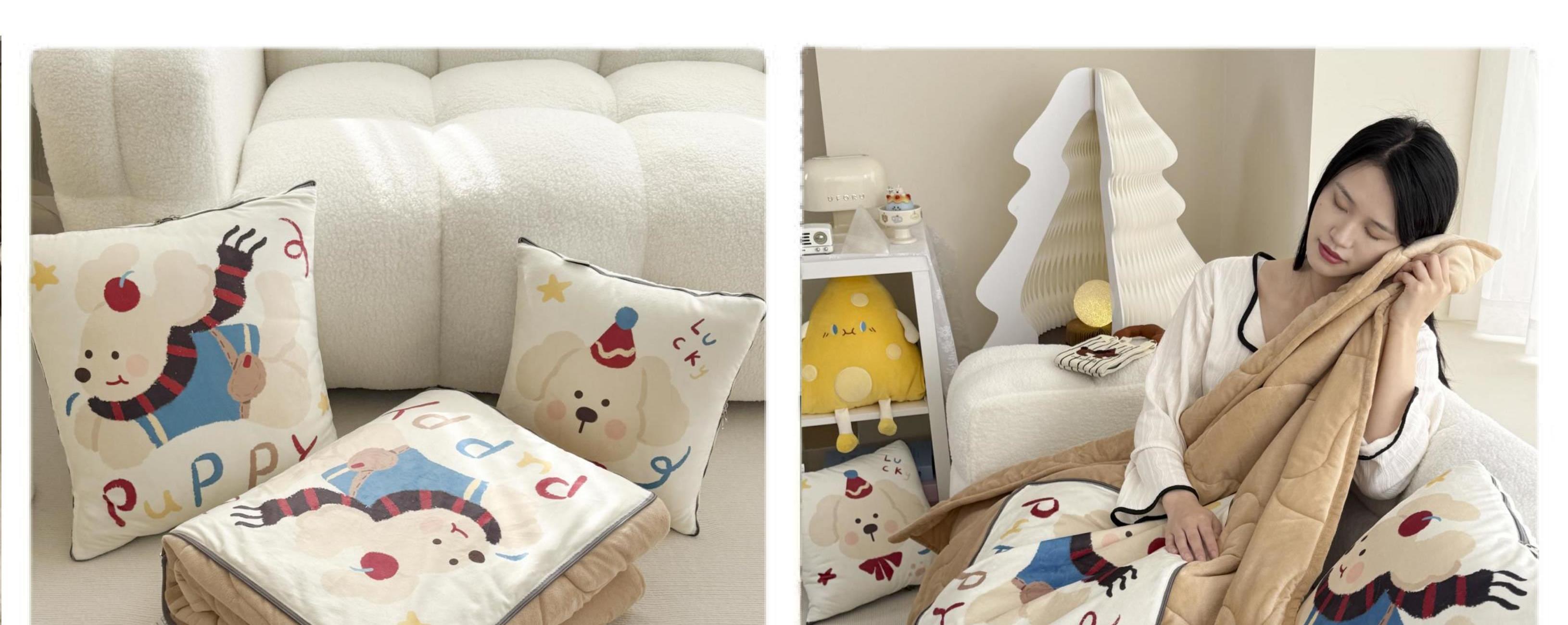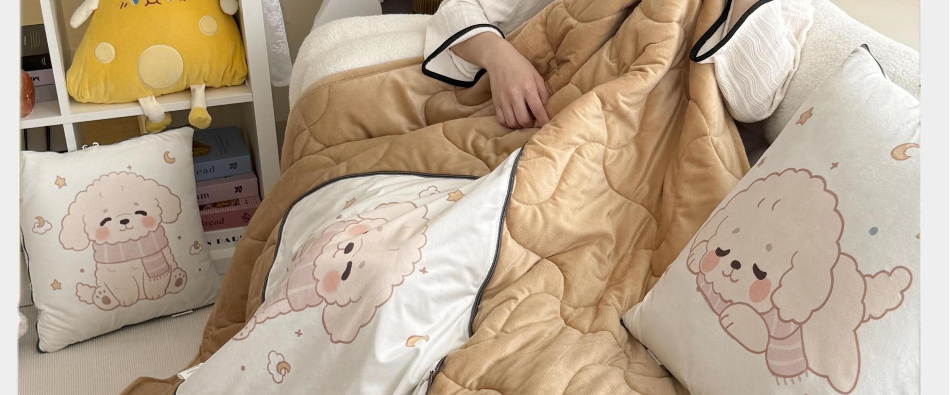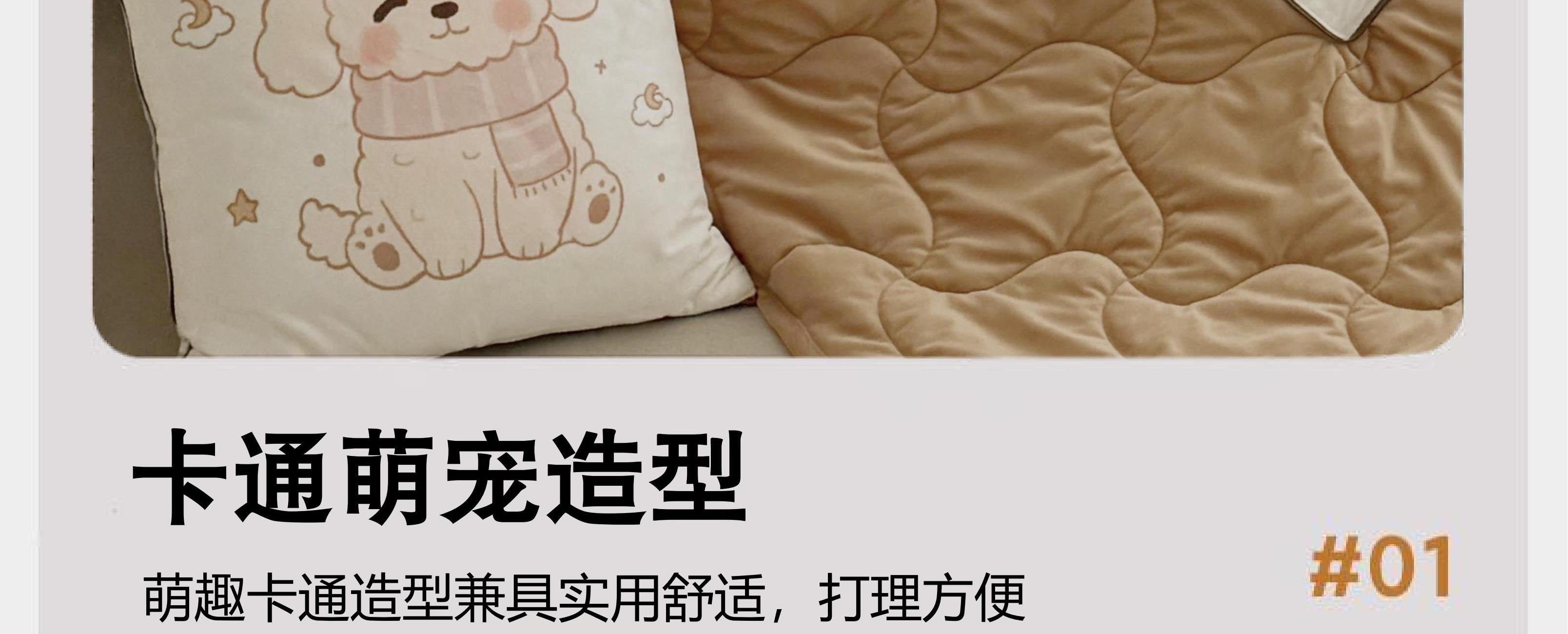 規(guī)格:抱枕40*40被子105*150cm 面料:聚酯纖維(外殼 被體水晶絨)/數(shù)碼印花工藝/填充PP棉 花色:布丁小狗、草莓鼠、格子小象、歡樂犬、懶懶貓、吐司熊 采用水晶絨面料,手感細(xì)膩柔軟舒適透氣;絨底密集牢固,不易脫毛;pp棉填充,蓬松飽滿不易板結(jié),回彈性好;活性印染工藝,色牢度高,可機(jī)洗水洗;一枕多用,午睡毯、空調(diào)被。車用毯、披肩。
