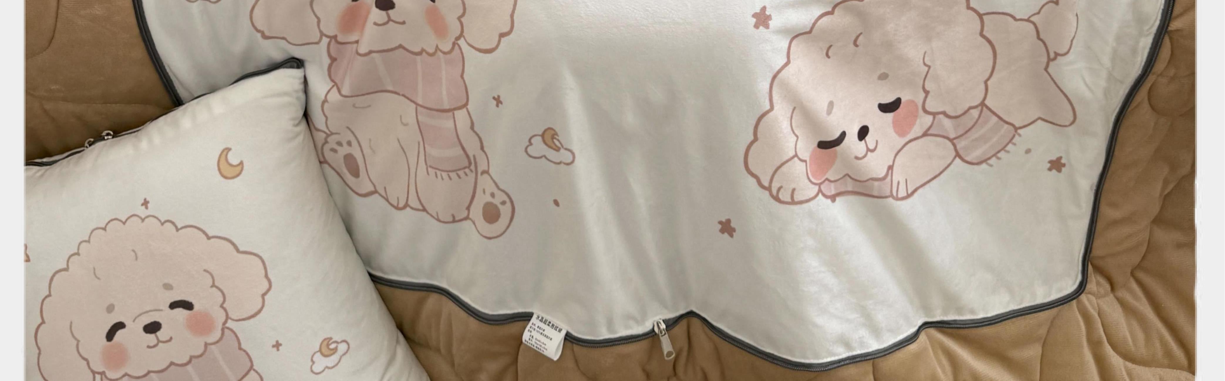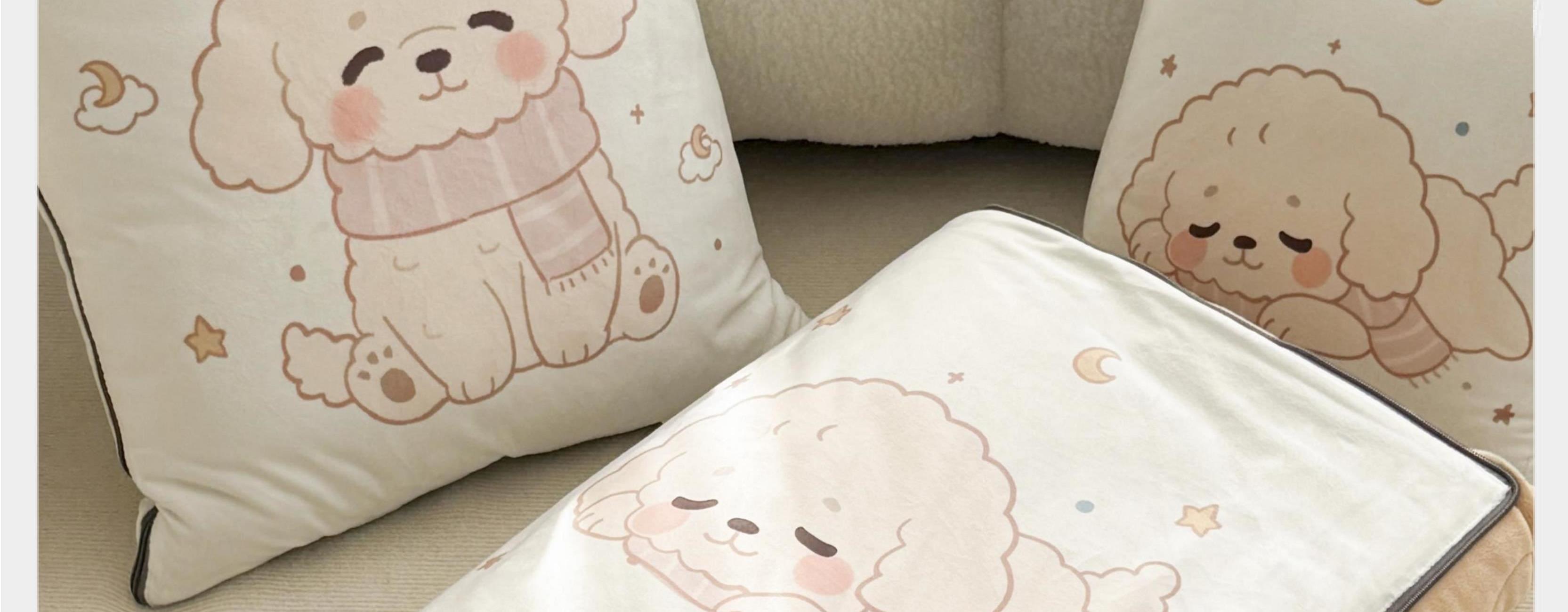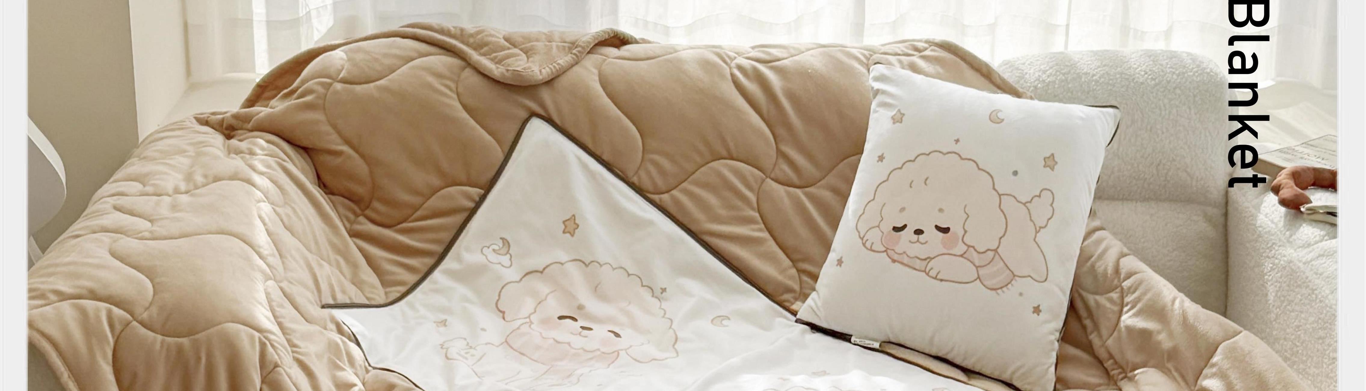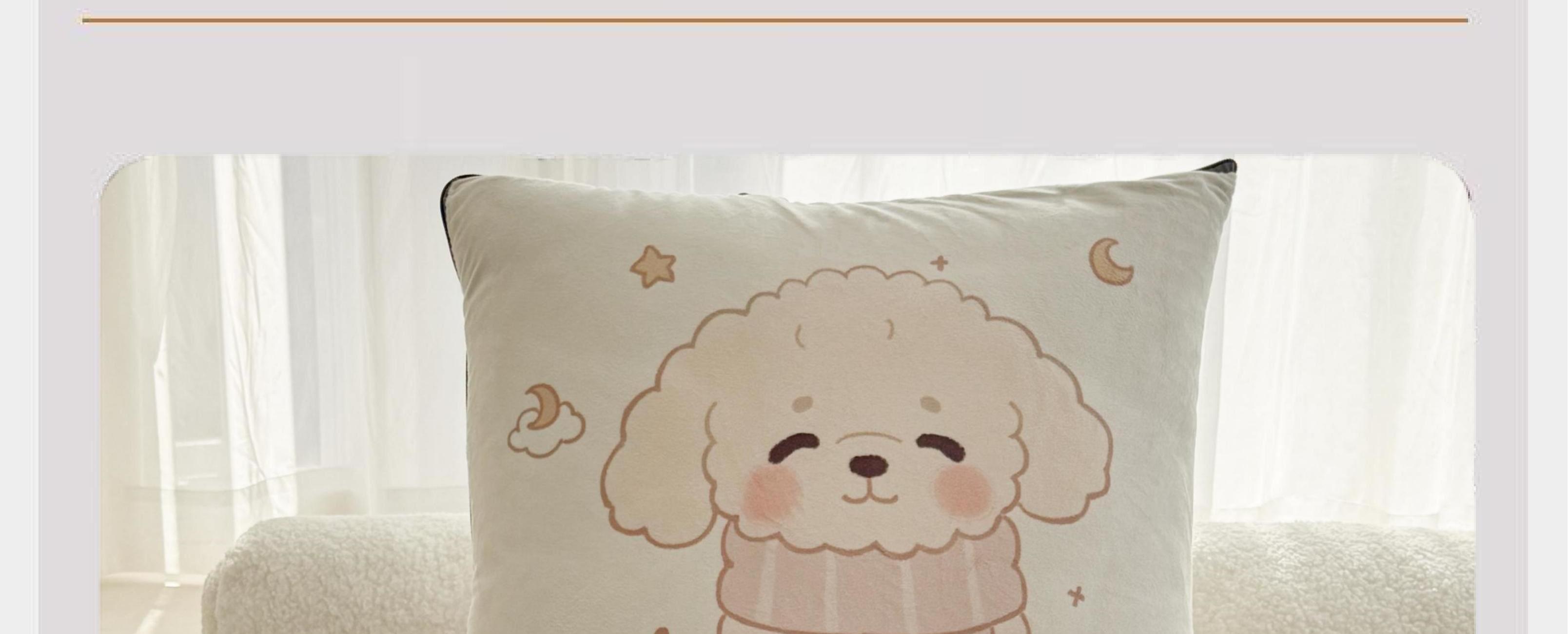 規(guī)格:抱枕40*40被子105*150cm 面料:聚酯纖維(外殼 被體水晶絨)/數(shù)碼印花工藝/填充PP棉 花色:布丁小狗、草莓鼠、格子小象、歡樂犬、懶懶貓、吐司熊 采用水晶絨面料,手感細(xì)膩柔軟舒適透氣;絨底密集牢固,不易脫毛;pp棉填充,蓬松飽滿不易板結(jié),回彈性好;活性印染工藝,色牢度高,可機(jī)洗水洗;一枕多用,午睡毯、空調(diào)被。車用毯、披肩。