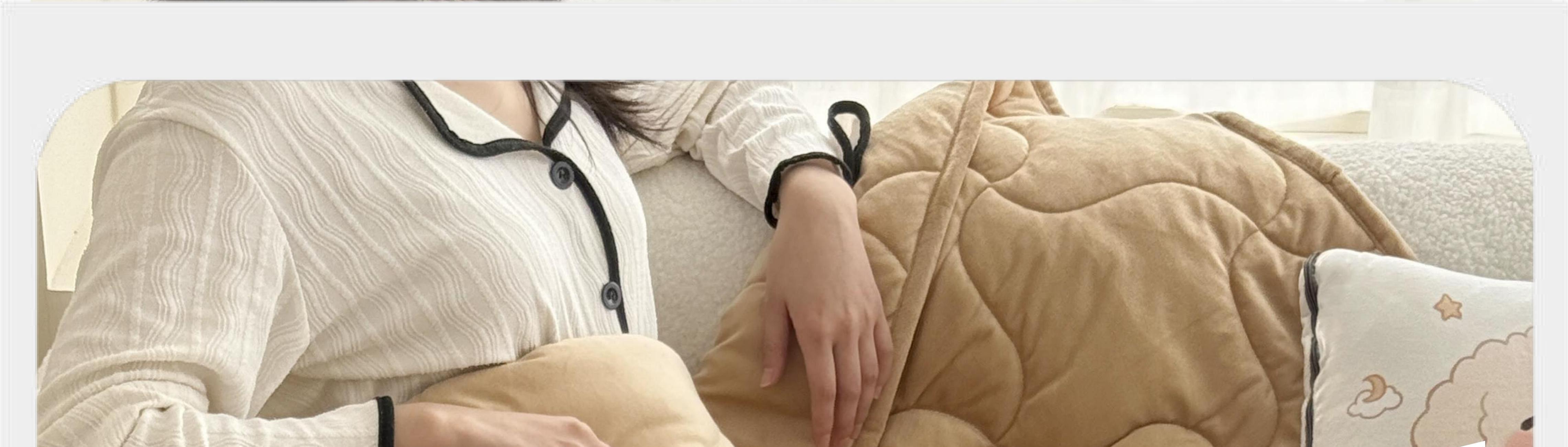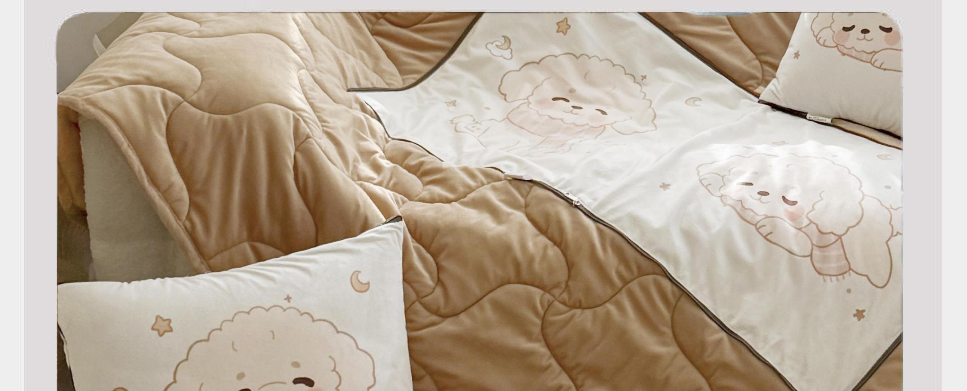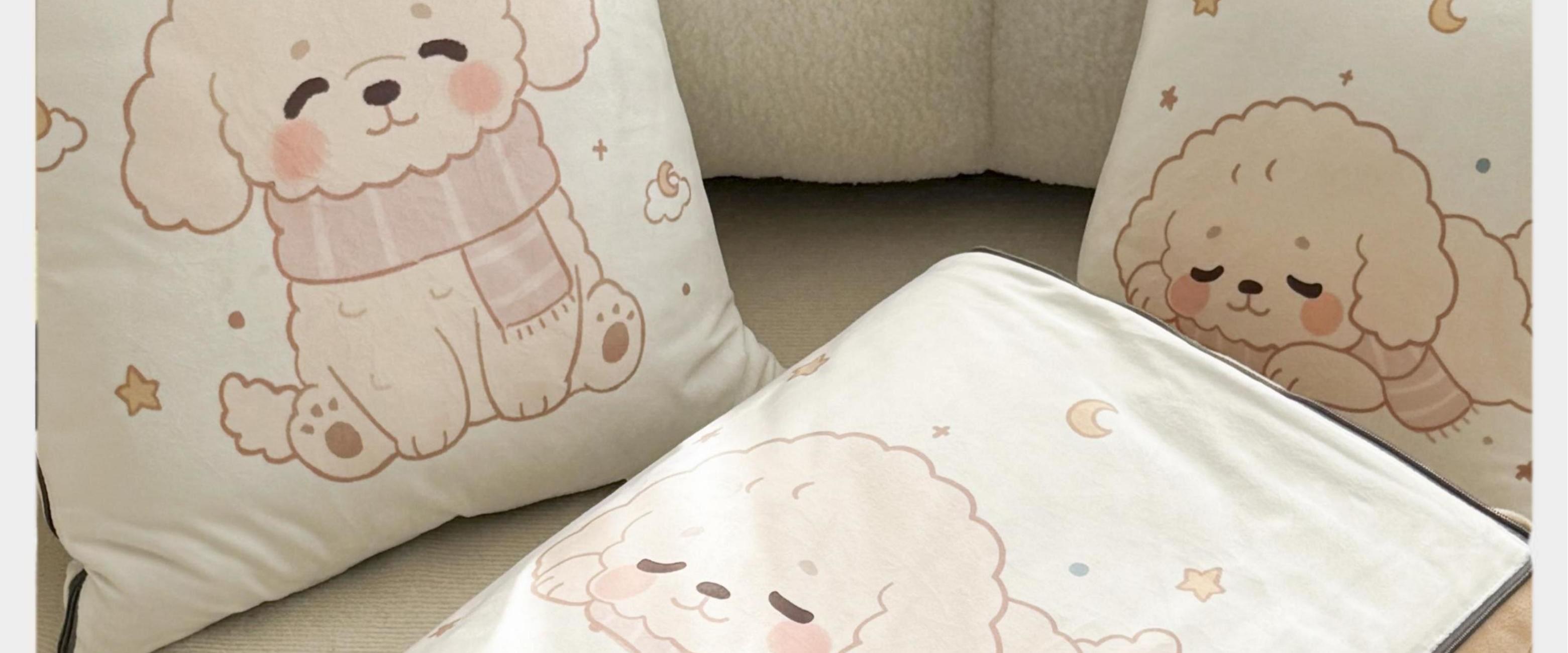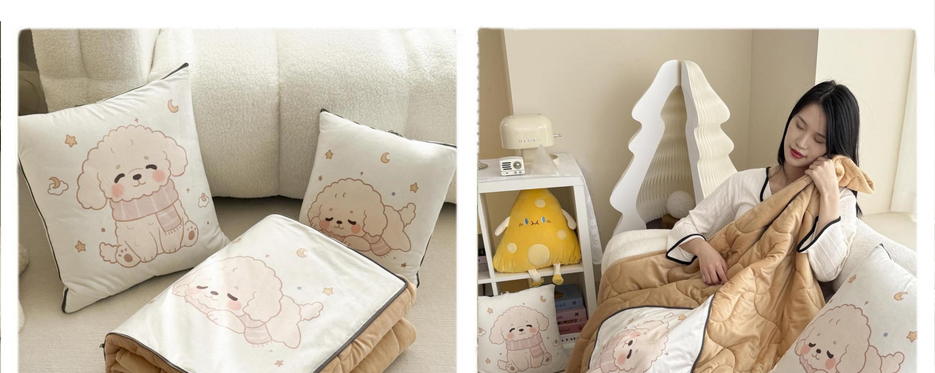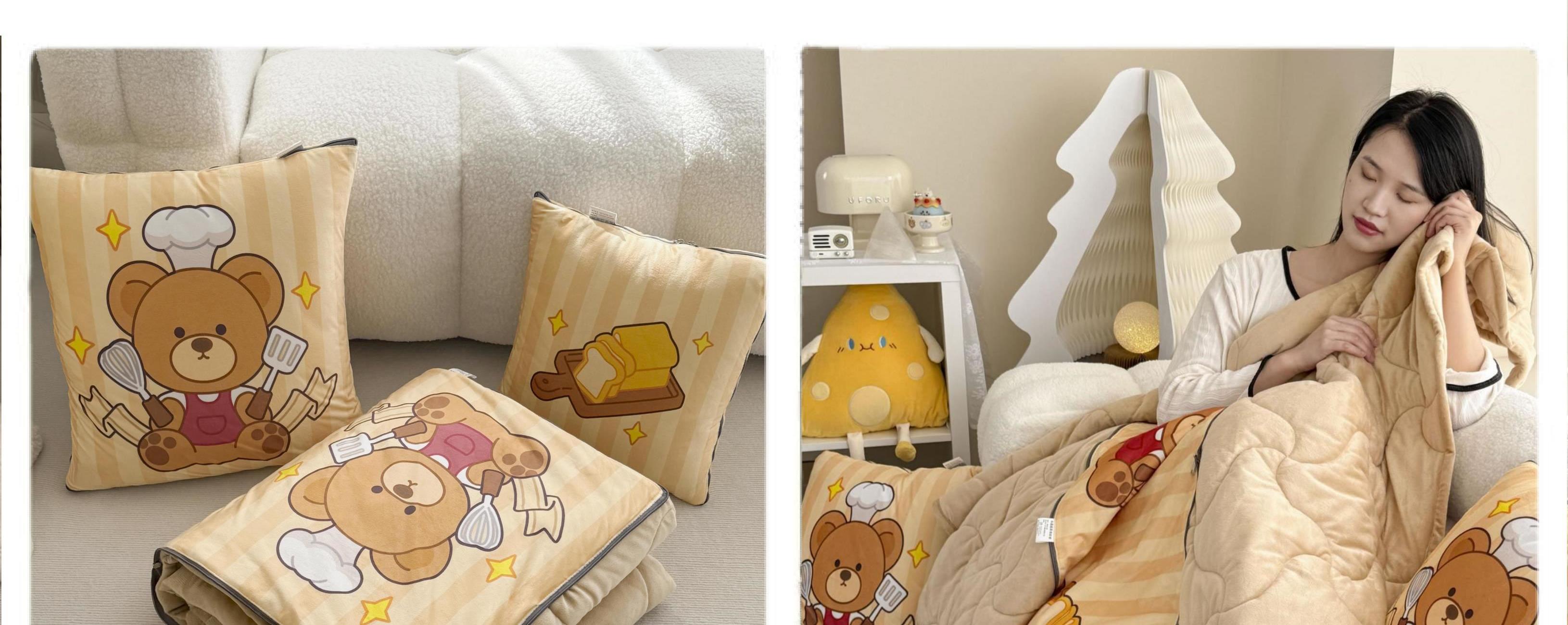 規(guī)格:抱枕40*40被子105*150cm 面料:聚酯纖維(外殼 被體水晶絨)/數(shù)碼印花工藝/填充PP棉 花色:布丁小狗、草莓鼠、格子小象、歡樂犬、懶懶貓、吐司熊 采用水晶絨面料,手感細(xì)膩柔軟舒適透氣;絨底密集牢固,不易脫毛;pp棉填充,蓬松飽滿不易板結(jié),回彈性好;活性印染工藝,色牢度高,可機(jī)洗水洗;一枕多用,午睡毯、空調(diào)被。車用毯、披肩。