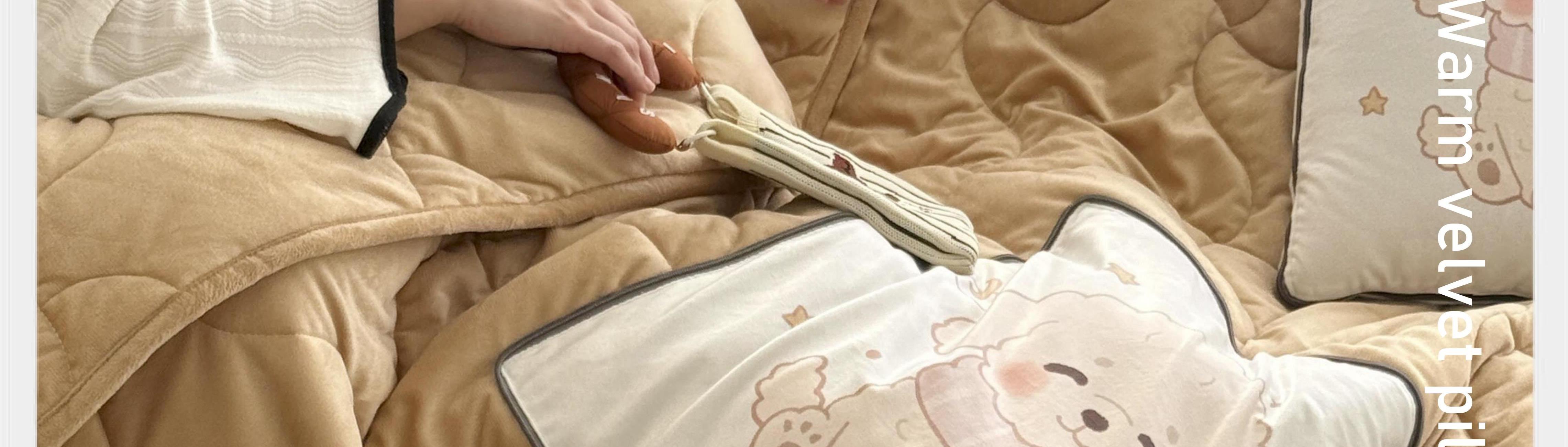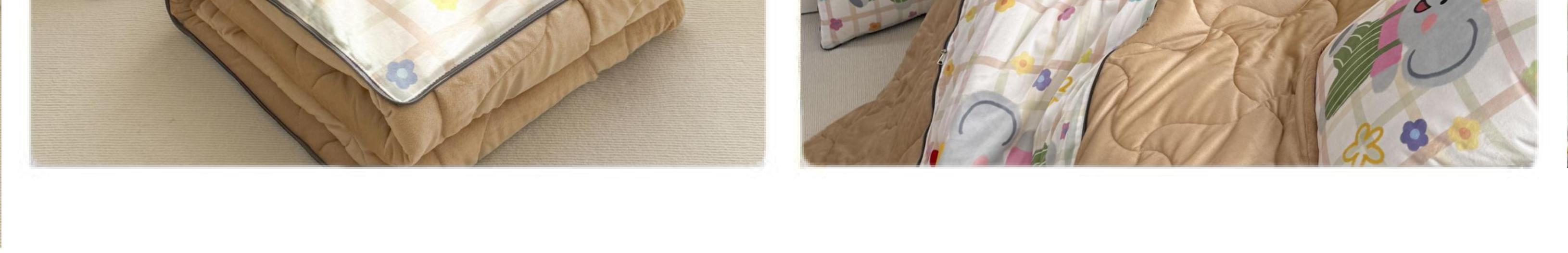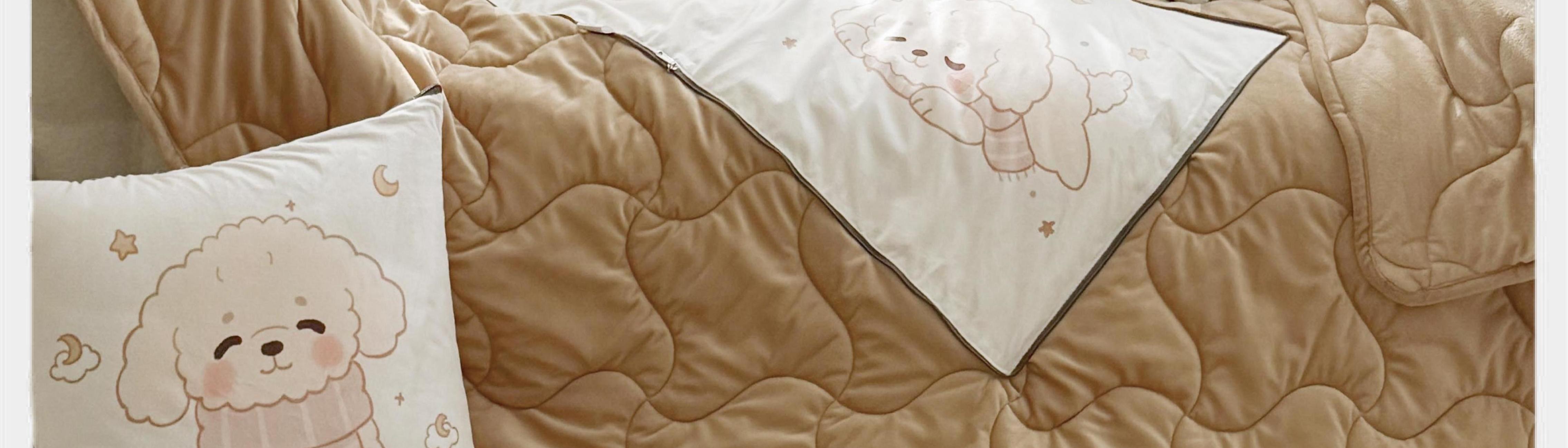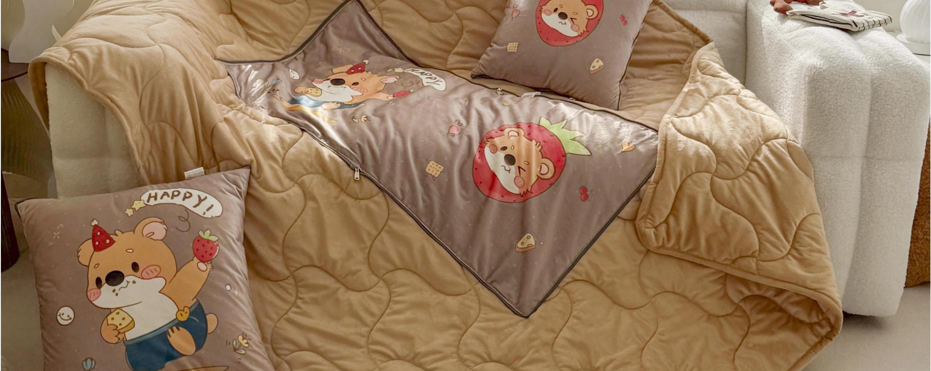 規(guī)格:抱枕40*40被子105*150cm 面料:聚酯纖維(外殼 被體水晶絨)/數(shù)碼印花工藝/填充PP棉 花色:布丁小狗、草莓鼠、格子小象、歡樂犬、懶懶貓、吐司熊 采用水晶絨面料,手感細(xì)膩柔軟舒適透氣;絨底密集牢固,不易脫毛;pp棉填充,蓬松飽滿不易板結(jié),回彈性好;活性印染工藝,色牢度高,可機(jī)洗水洗;一枕多用,午睡毯、空調(diào)被。車用毯、披肩。