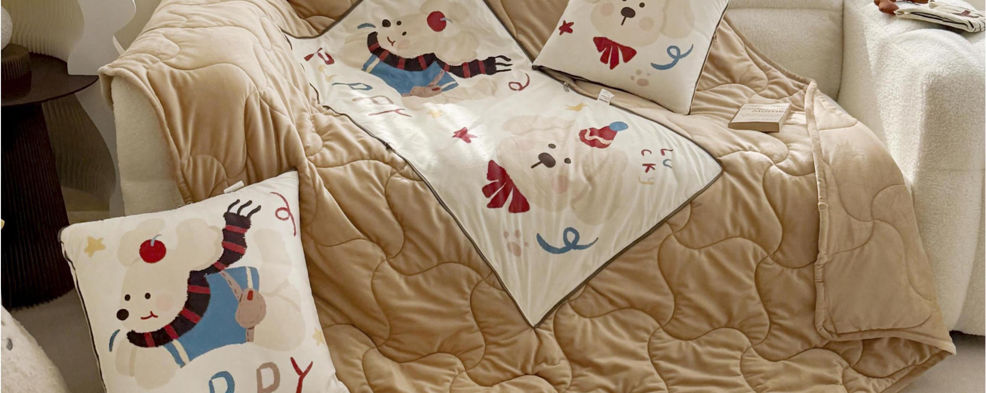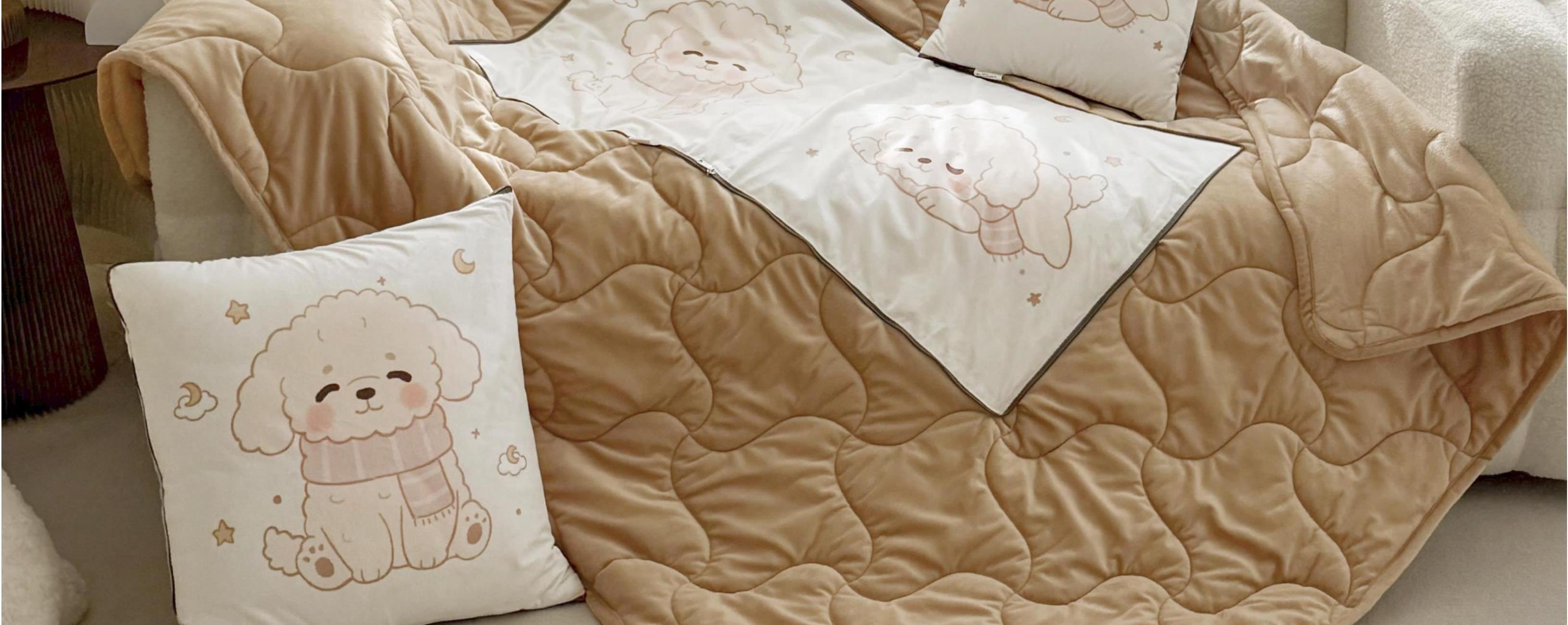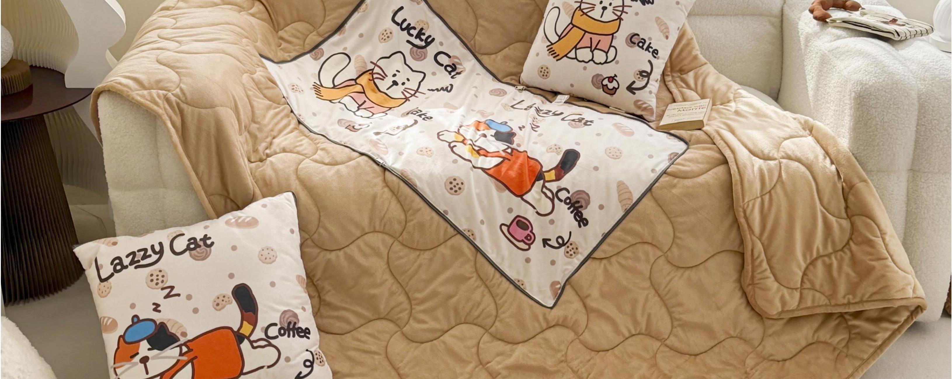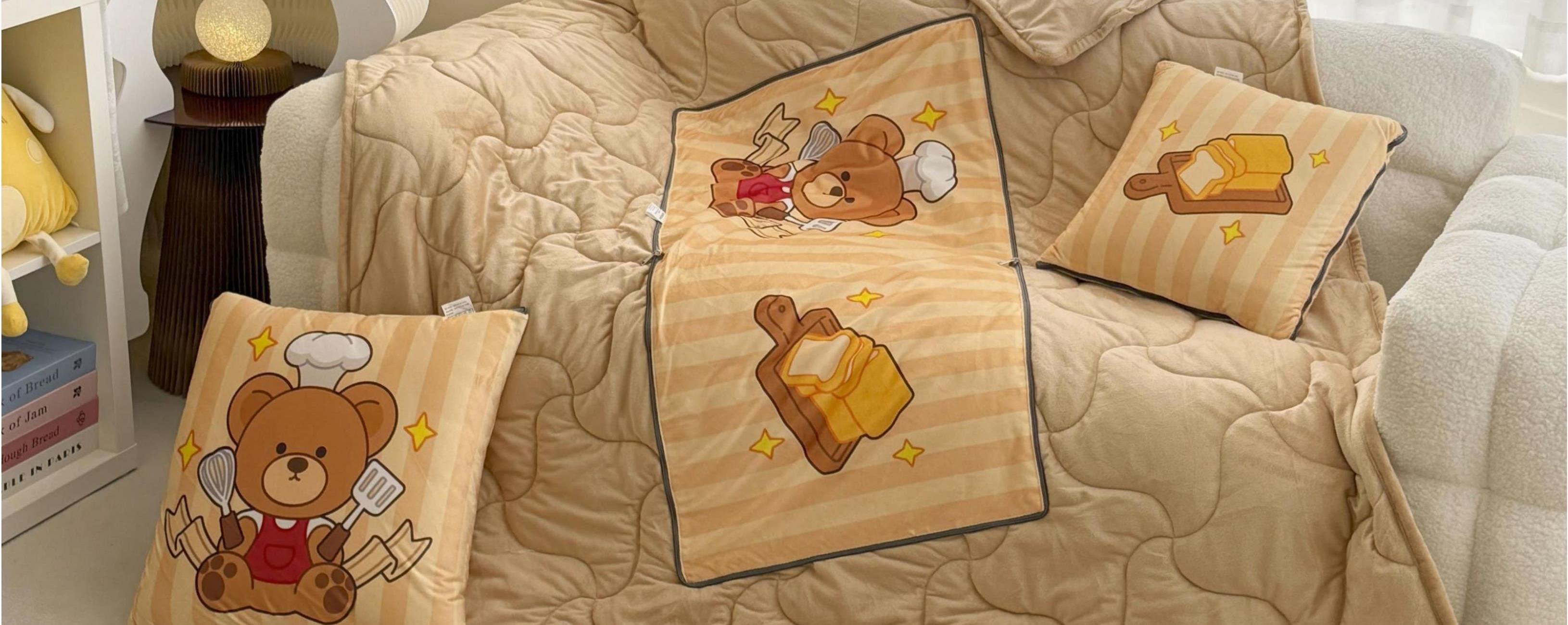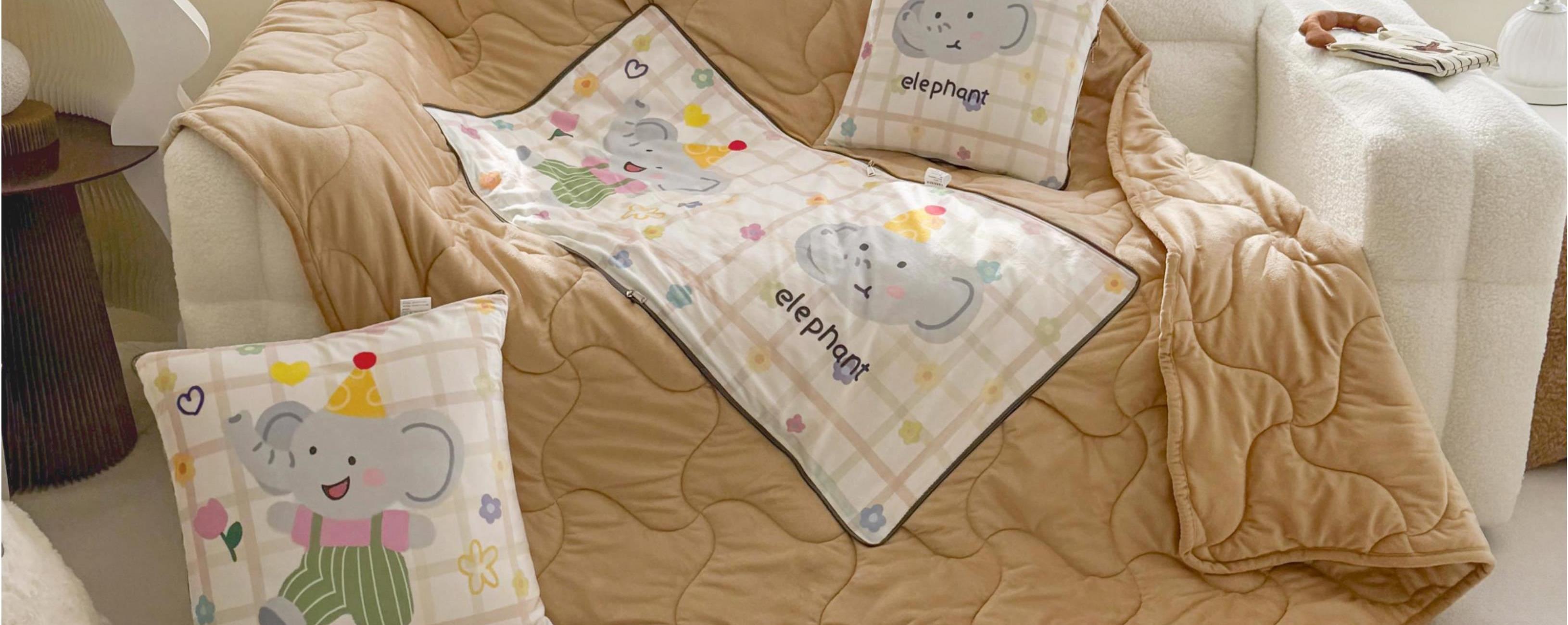 規(guī)格:抱枕40*40被子105*150cm 面料:聚酯纖維(外殼 被體水晶絨)/數(shù)碼印花工藝/填充PP棉 花色:布丁小狗、草莓鼠、格子小象、歡樂犬、懶懶貓、吐司熊 采用水晶絨面料,手感細(xì)膩柔軟舒適透氣;絨底密集牢固,不易脫毛;pp棉填充,蓬松飽滿不易板結(jié),回彈性好;活性印染工藝,色牢度高,可機(jī)洗水洗;一枕多用,午睡毯、空調(diào)被。車用毯、披肩。