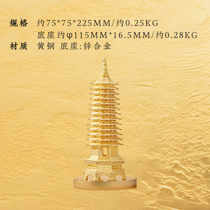尺寸:塔身約75*75*22.5MM/約0.25KG 底座約4115MM*16.5MM/約0.28KG 材質(zhì)黃銅 底座:鋅合金