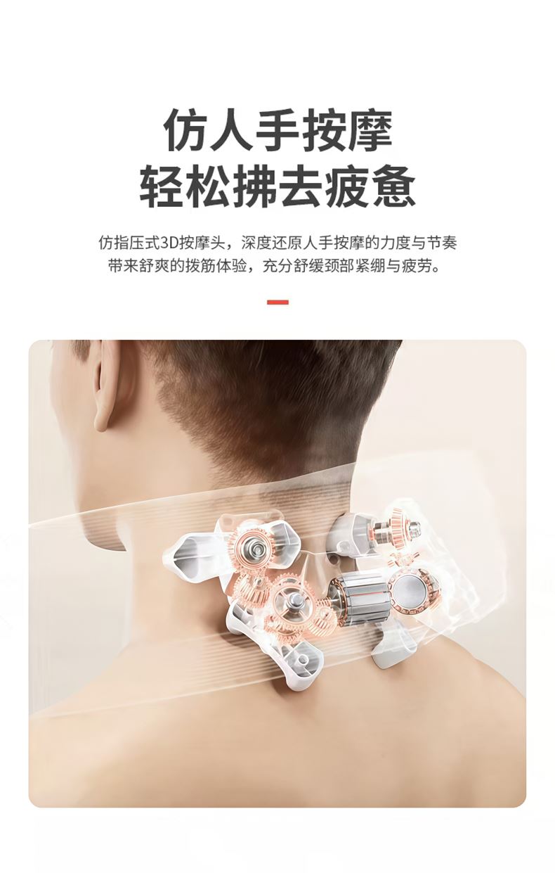 材質(zhì):瑜伽布料,回彈記憶棉 充電口:TypeC 產(chǎn)品尺寸:220*220*115mm 產(chǎn)品凈重:500g 額定功率:3.7W 電池容量:1200mAh ? 仿真人雙頭按摩手感 強電機高配 ? 360°環(huán)頸支撐 高密度回彈記憶棉 ? C口便攜可充電 智能定時15分鐘模式, ? 恒溫熱敷功能可選 質(zhì)保一年
