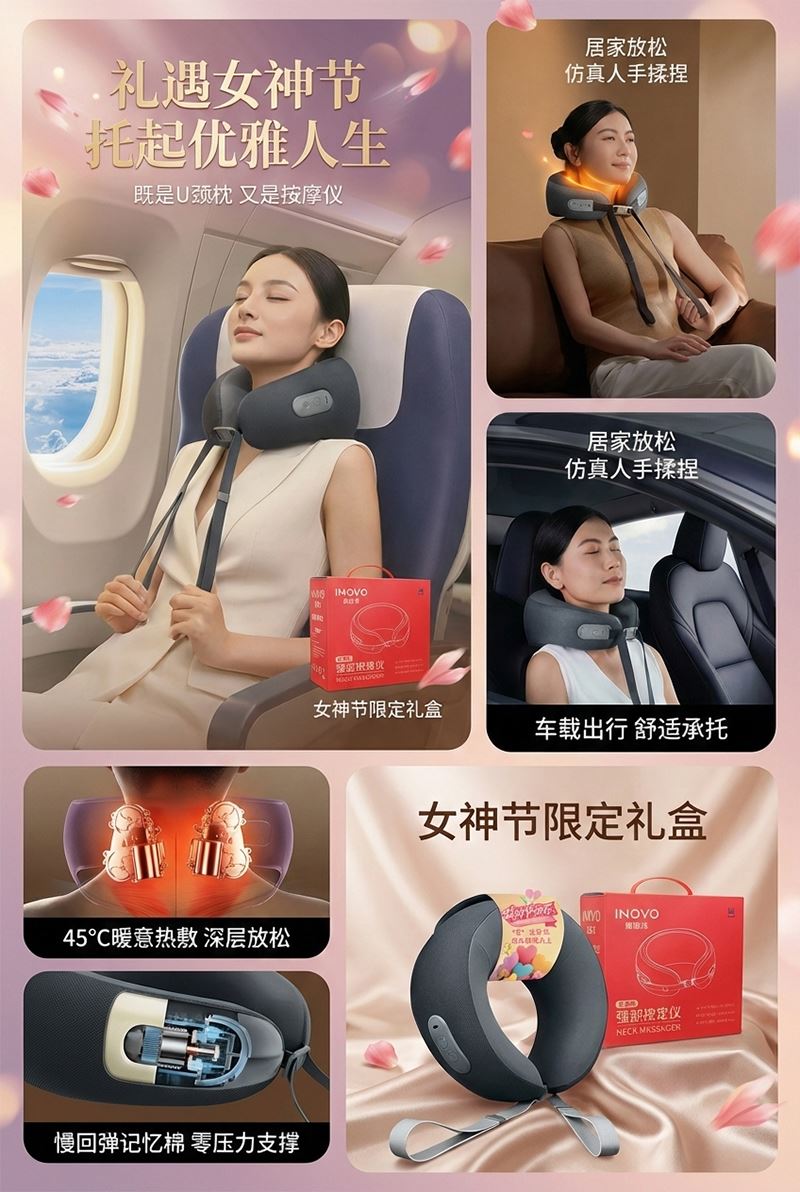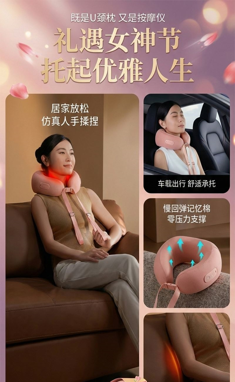 愛爾沃女神款U形頸椎按摩儀仿真人按摩 禮品已成功加入PPT!