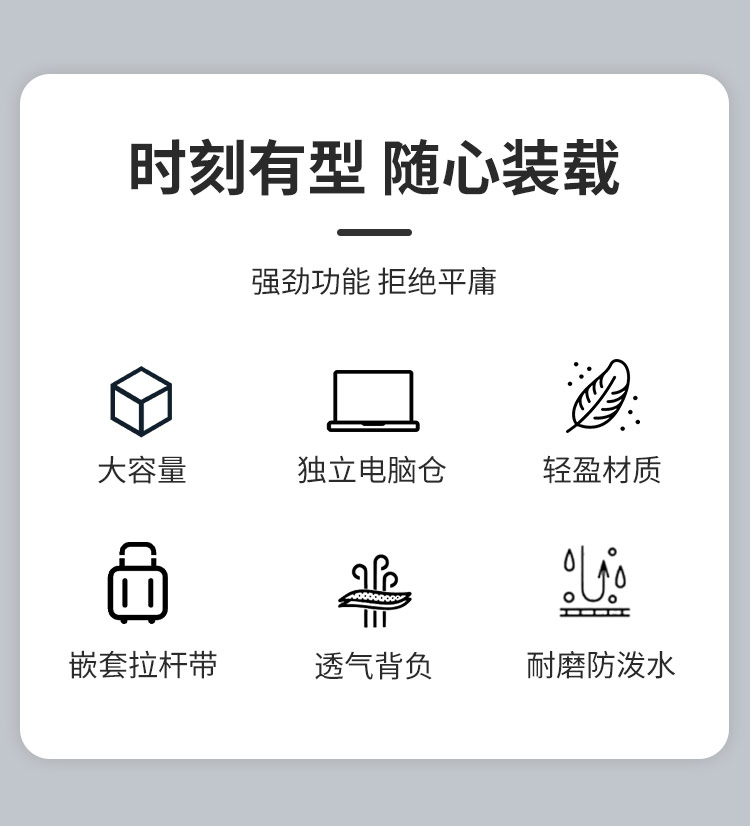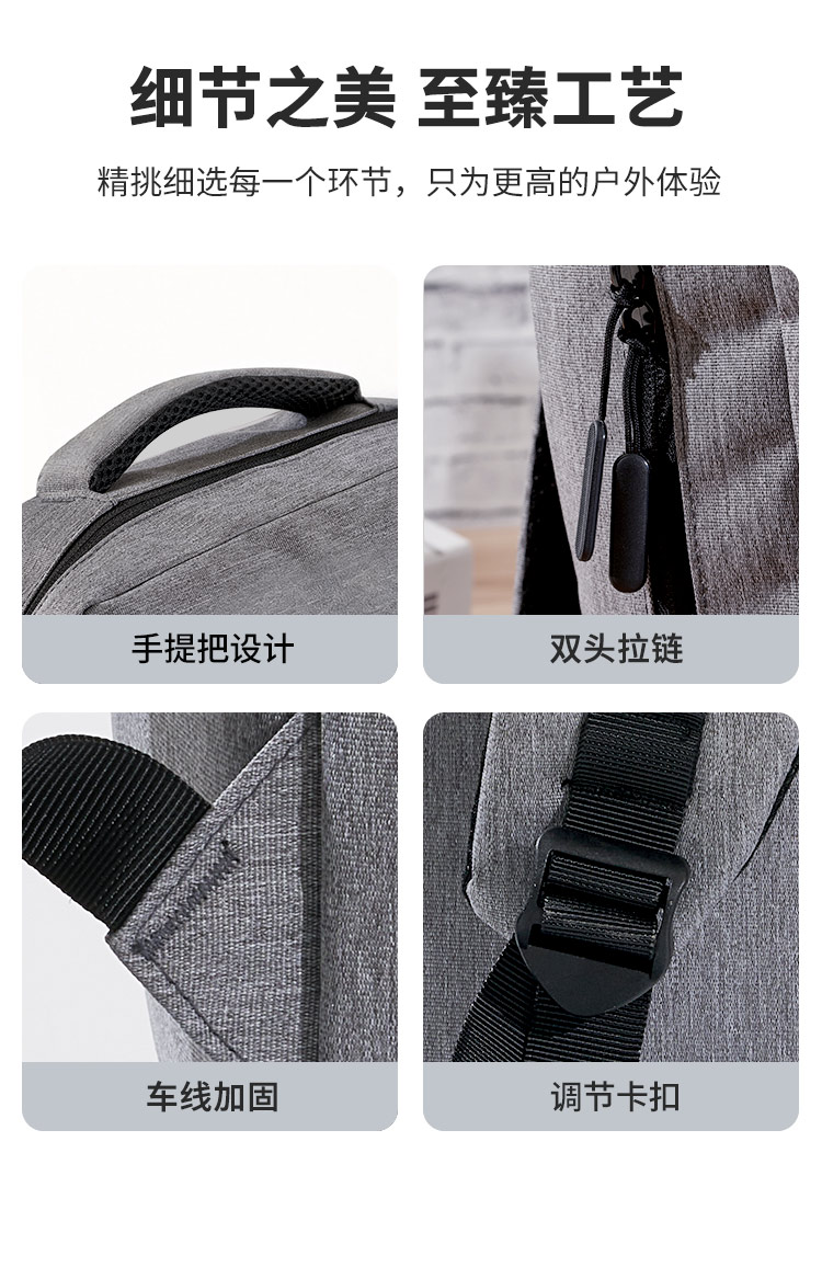 產(chǎn)品材質(zhì):900D陽(yáng)離子 大外箱尺寸:50*60*70cm 背包尺寸:32*12*42cm 凈重:0.7kg左右 毛重:23kg左右