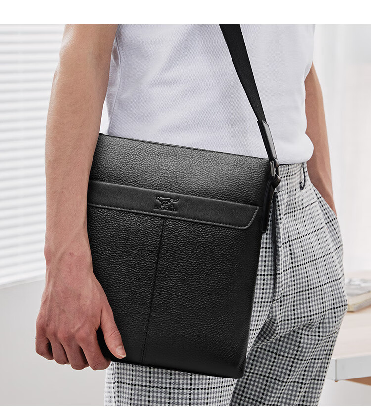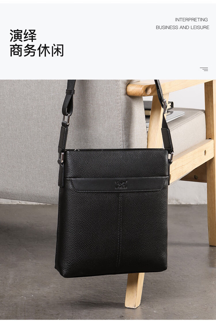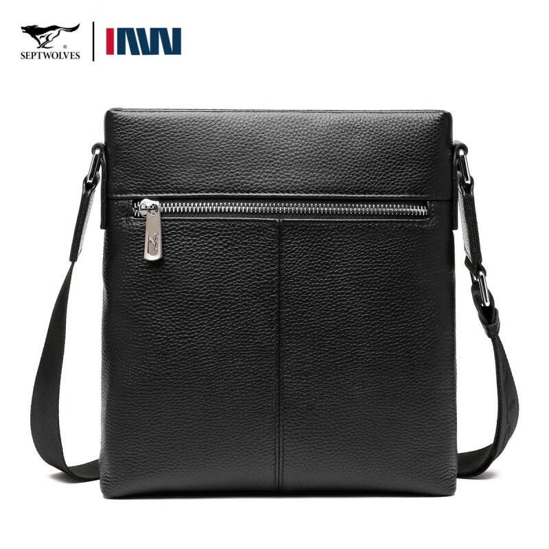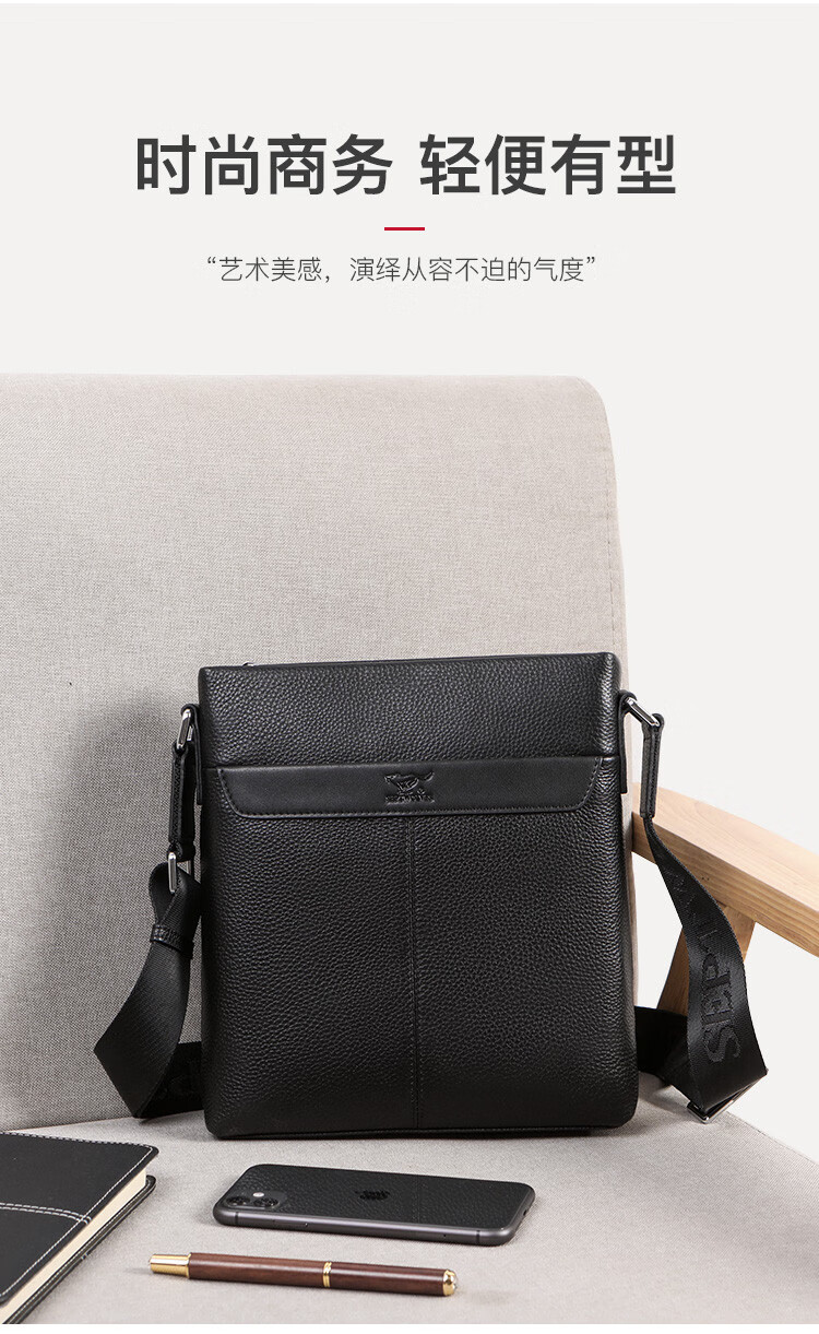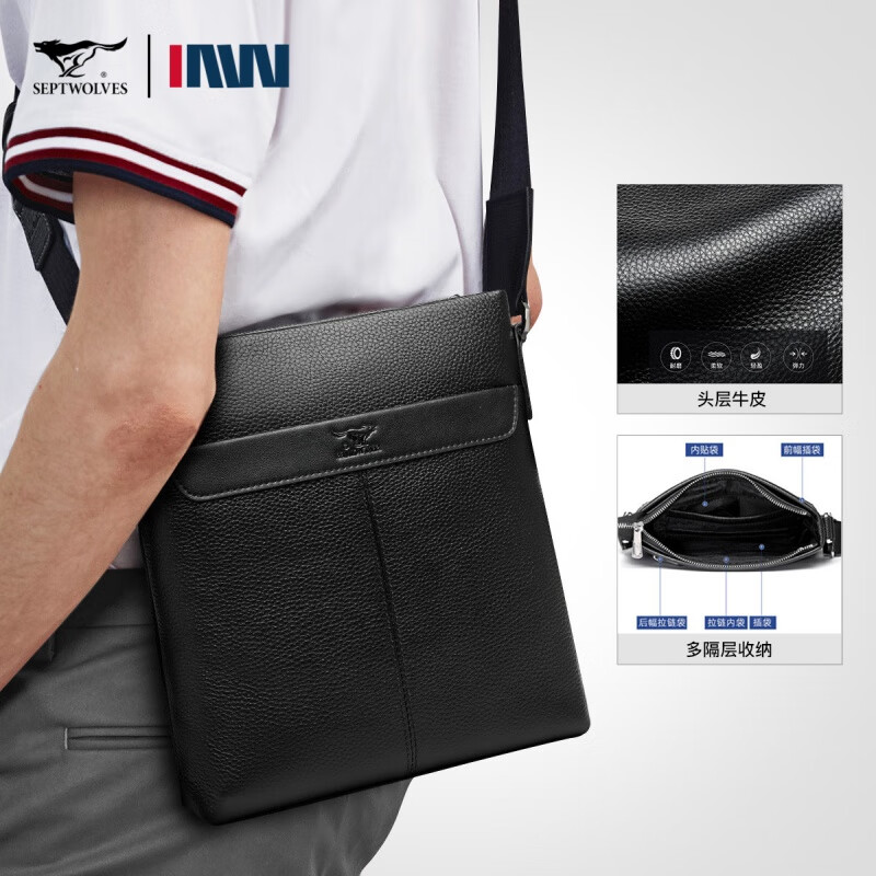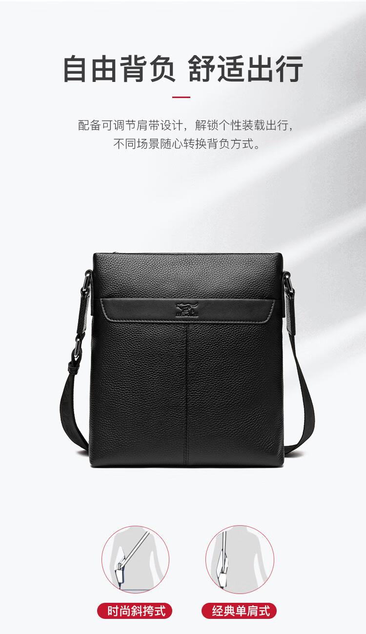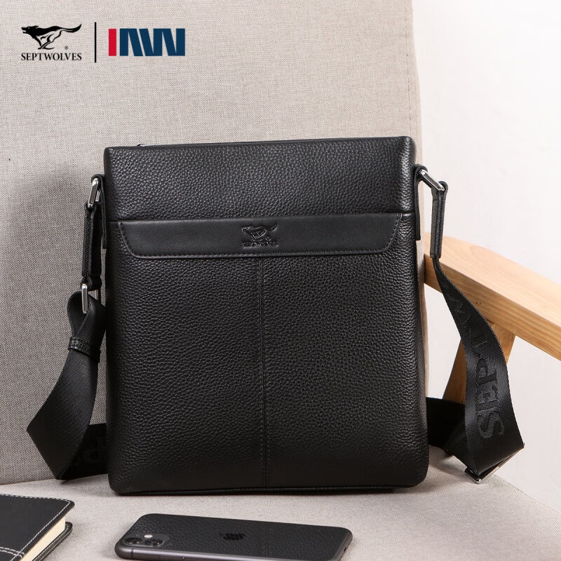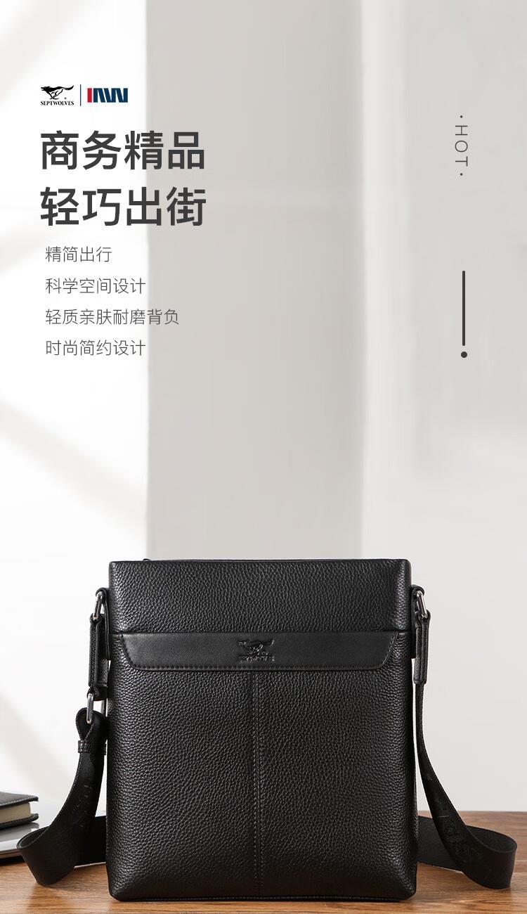 七匹狼真皮單肩包斜挎包輕商務(wù)頭層牛皮WA120251-1