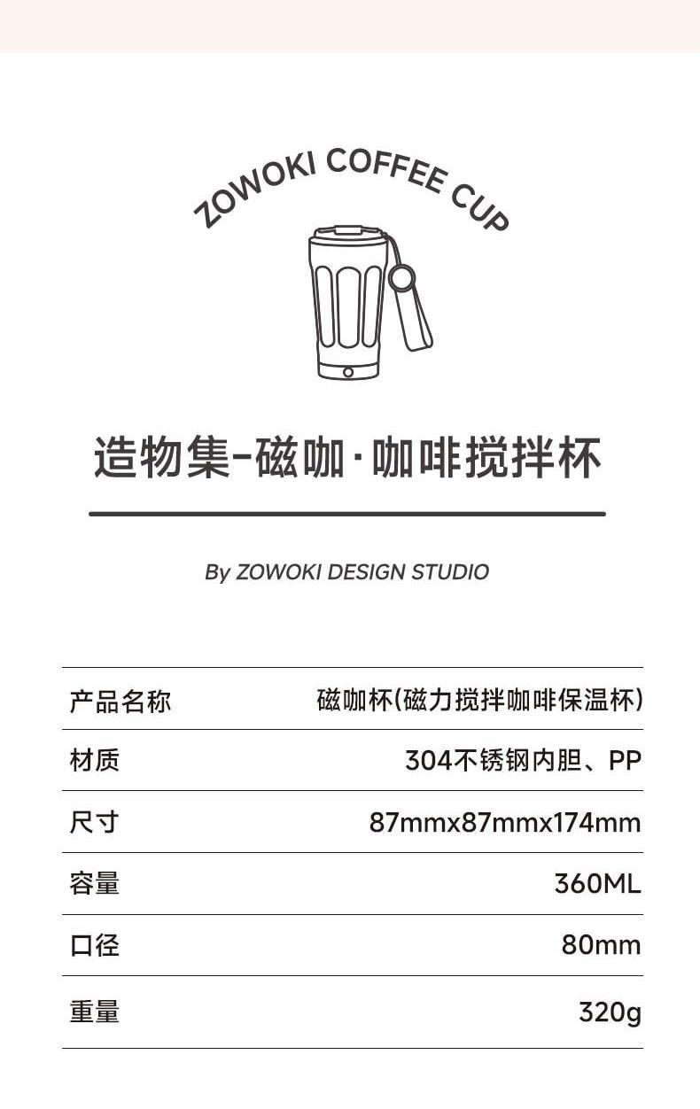 容量:360ml | 凈重:320g | 口徑:80mm 304不銹鋼內(nèi)膽,食品級材質(zhì),使用健康放心。 保溫保冷,四季可用。 磁力攪拌無需手動。一鍵按壓攪拌,解放雙手。 便攜提繩設(shè)計,出行更方便。