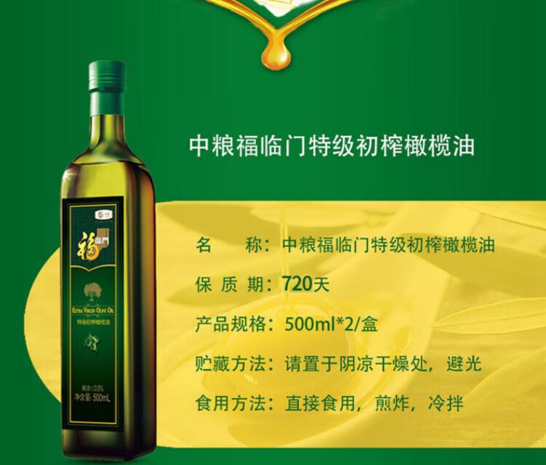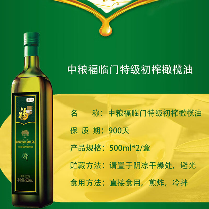 中糧福臨門特級(jí)初榨橄欖油500ml*2瓶禮盒
