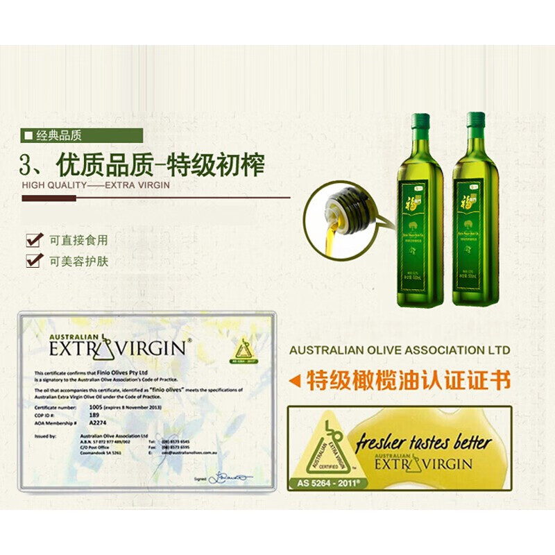 中糧品質(zhì) + 西班牙特級(jí)初榨:央企背書,甄選西班牙安達(dá)盧西亞優(yōu)質(zhì)橄欖,天然酸度≤0.5% 優(yōu)于國(guó)標(biāo),"液體黃金" 更健康