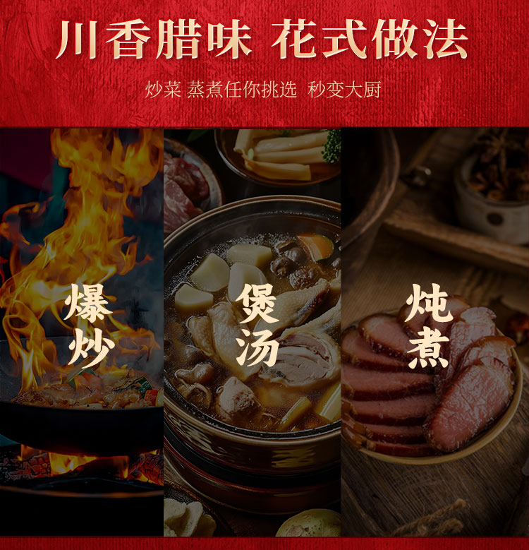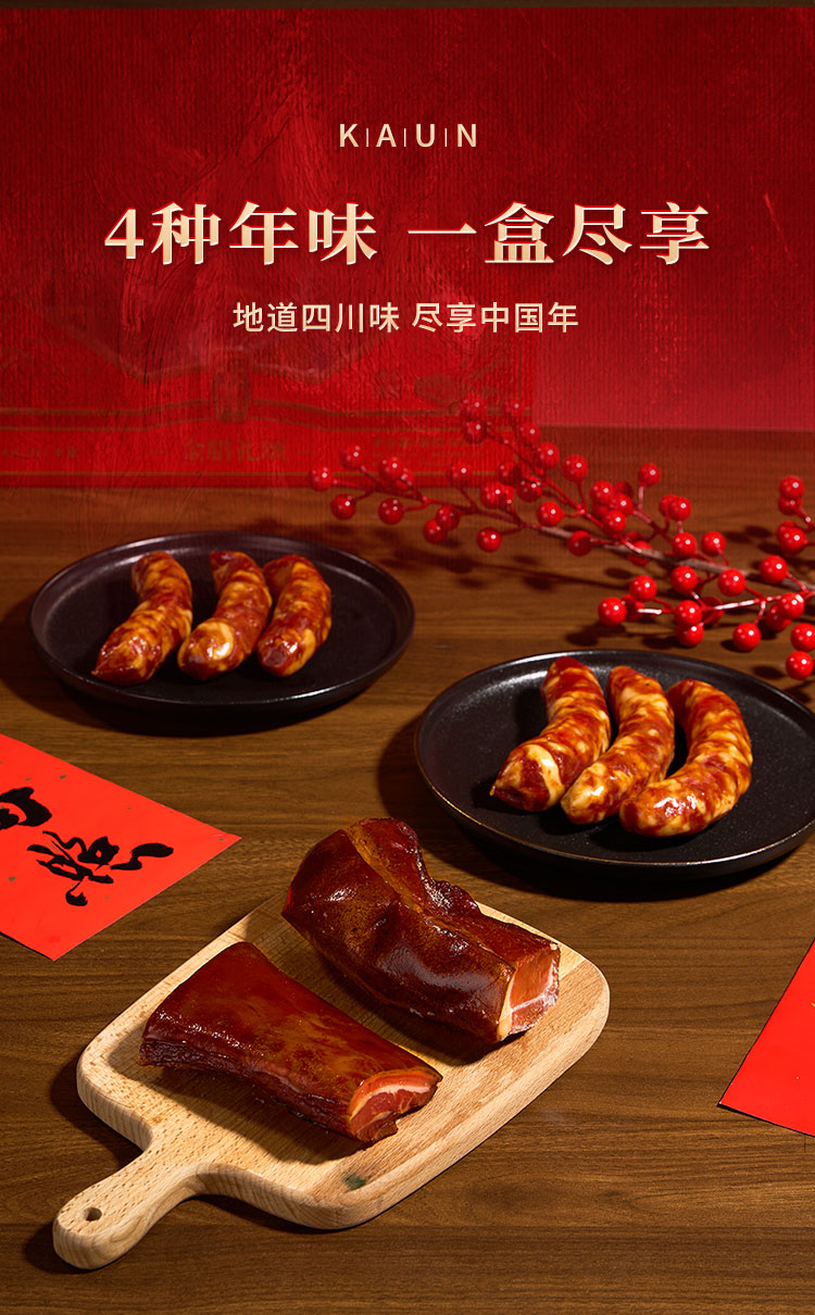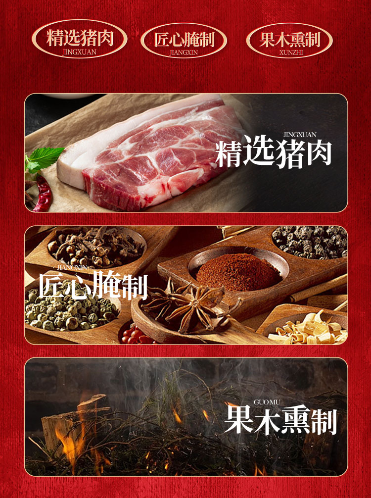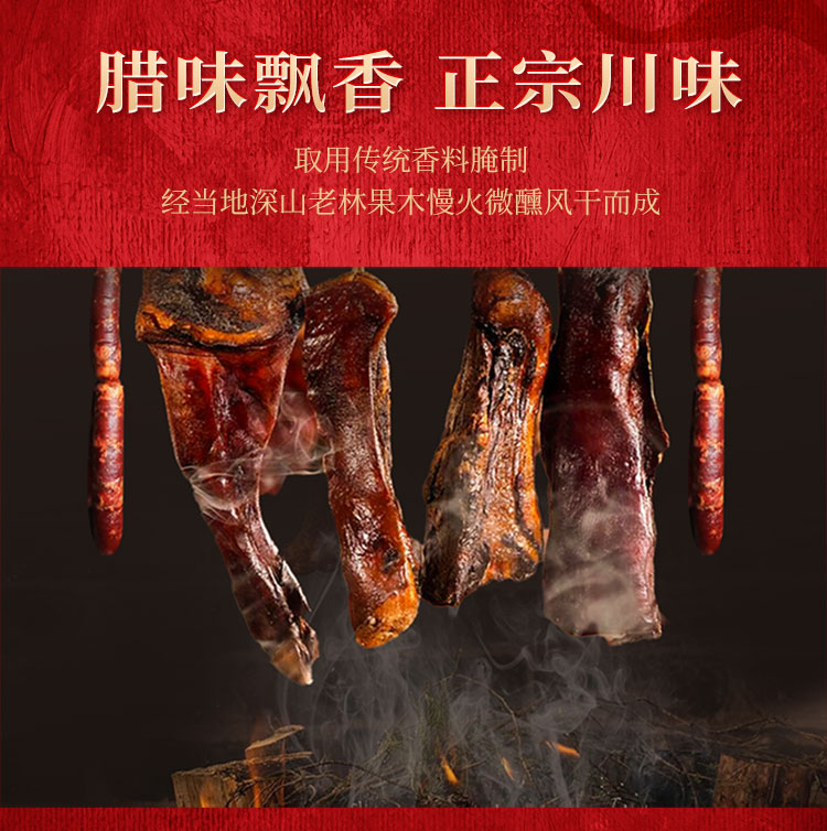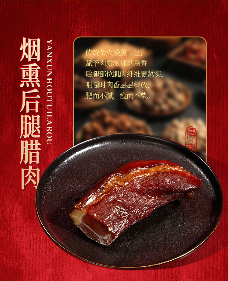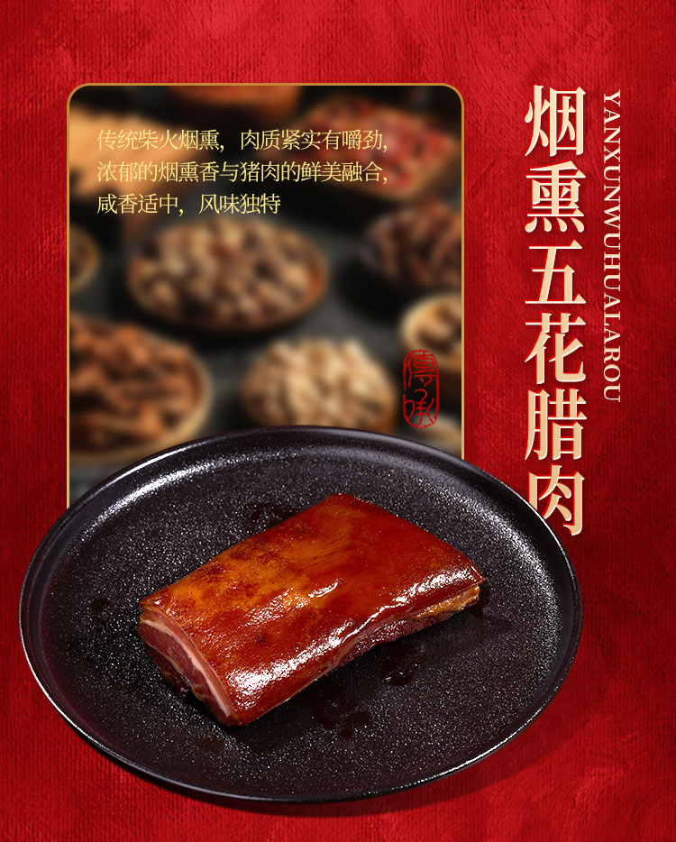 煙熏后腿臘肉200g 煙熏五花臘肉200g 麻辣香腸200g 香辣香腸200g