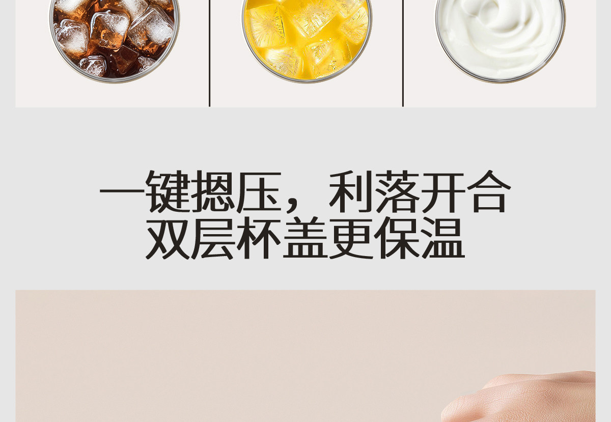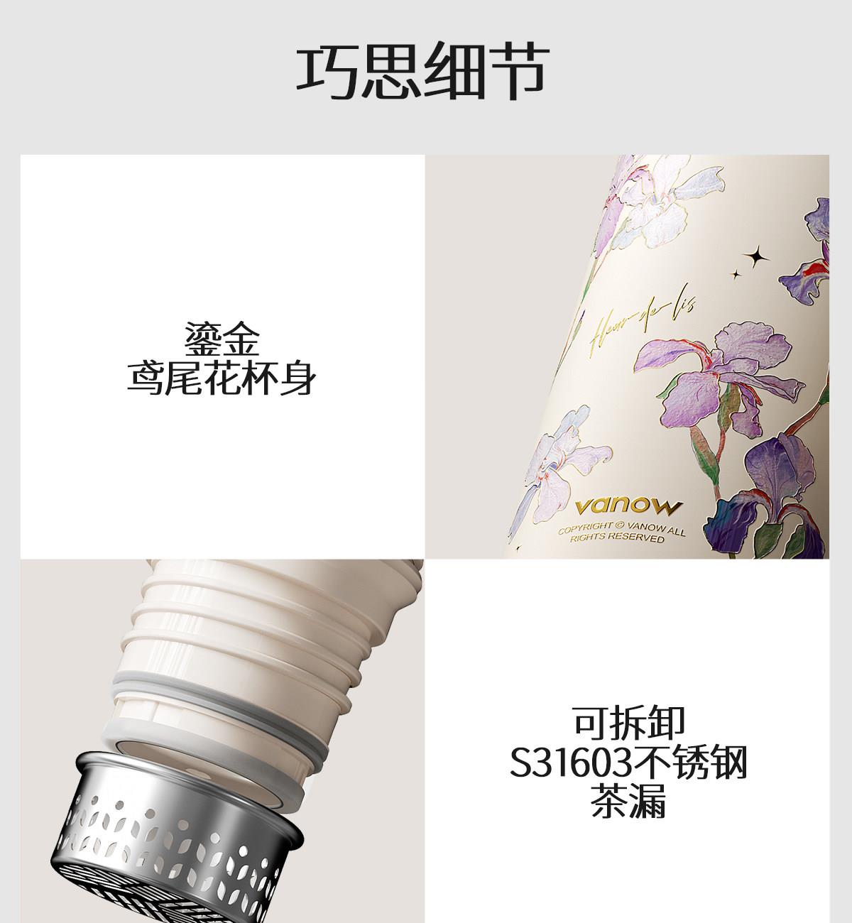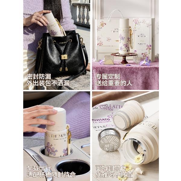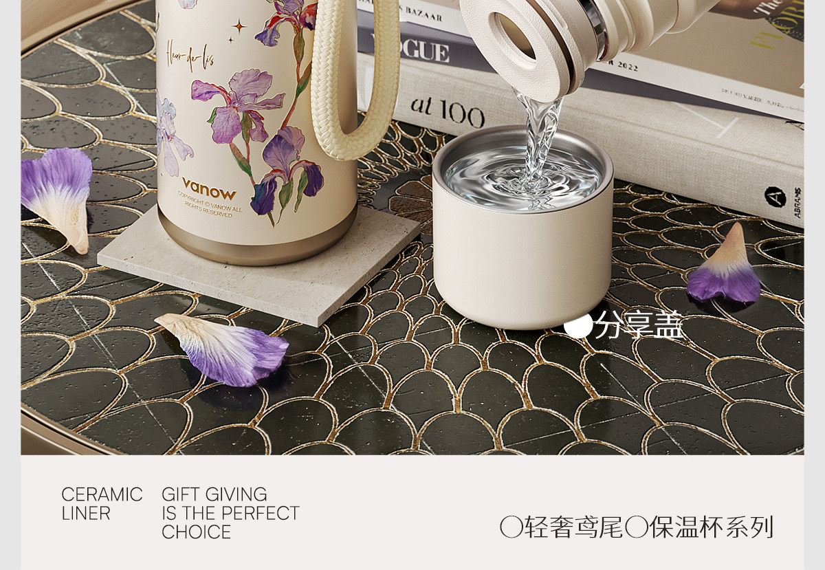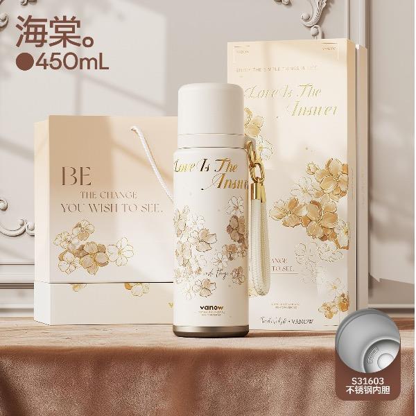 型號:VO-HY45ZD、VO-HT45ZD、VO-YW45ZD 顏色:花漾、海棠、鳶尾花 容量:450ml 材質(zhì):316不銹鋼/pp聚丙烯/硅橡膠 尺寸:225mm*68mm 產(chǎn)品賣點(diǎn):1.暖冬溫暖陪伴,杯中依然滾燙 2.一健摁壓,利落開合,雙層杯蓋更保溫 3.一杯雙飲,閑趣自在心 4.獨(dú)立茶倉,優(yōu)雅喝不吐渣 5.鎖住溫度,更留住細(xì)致呵護(hù)