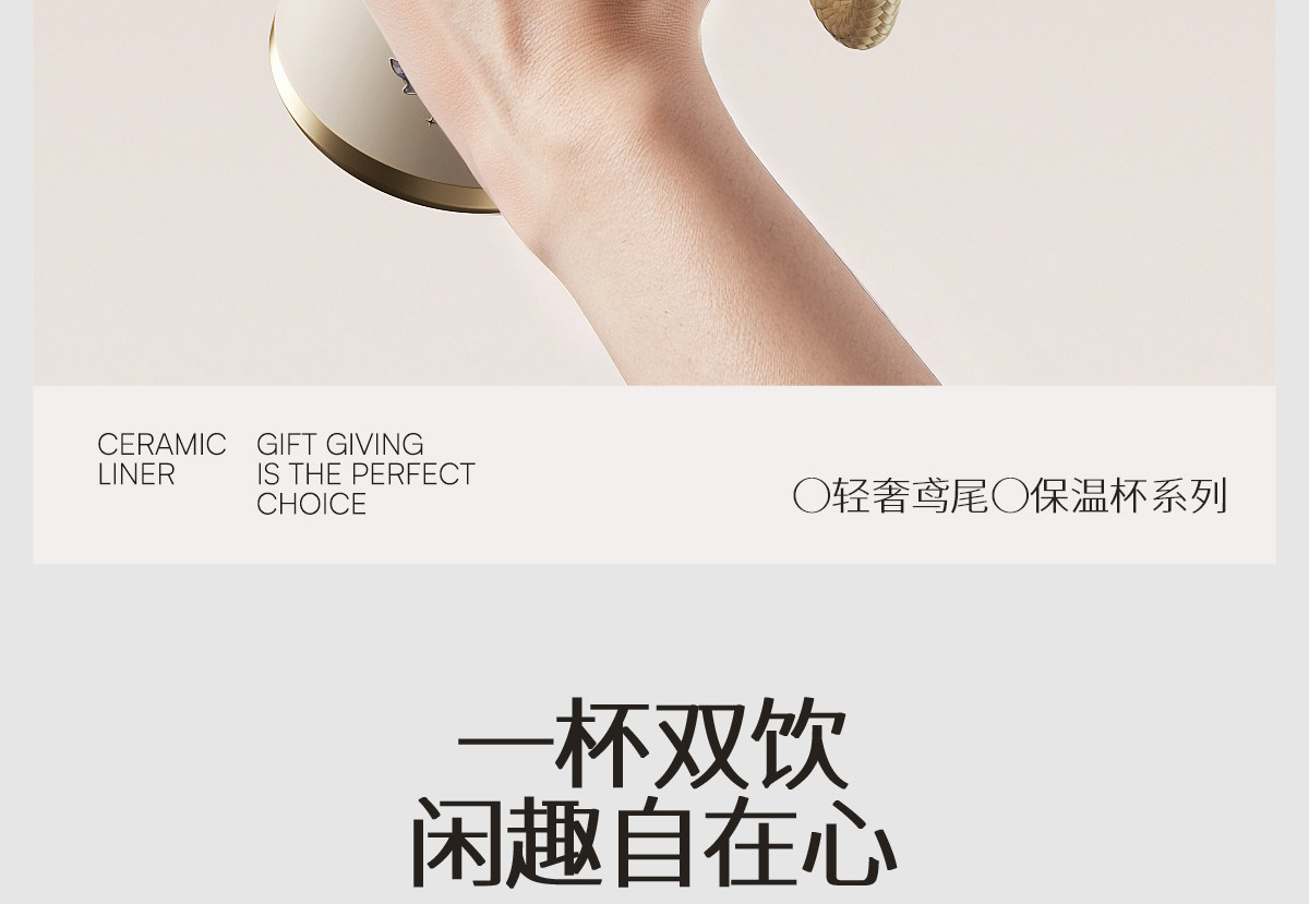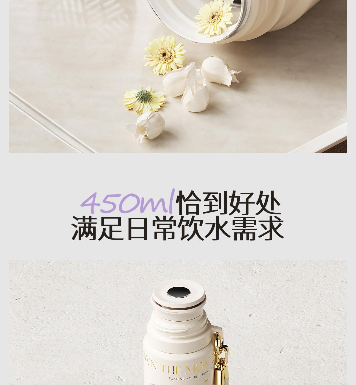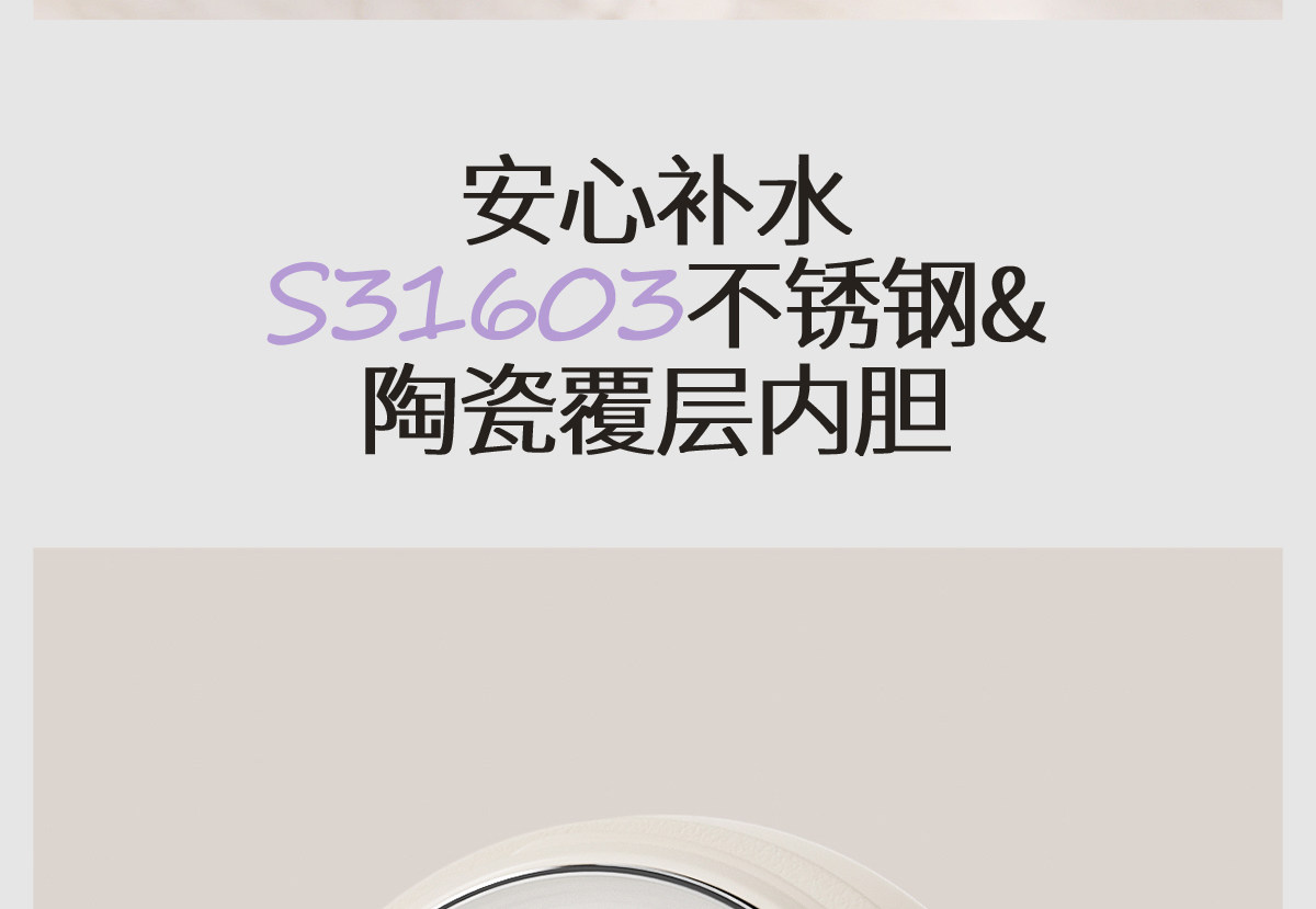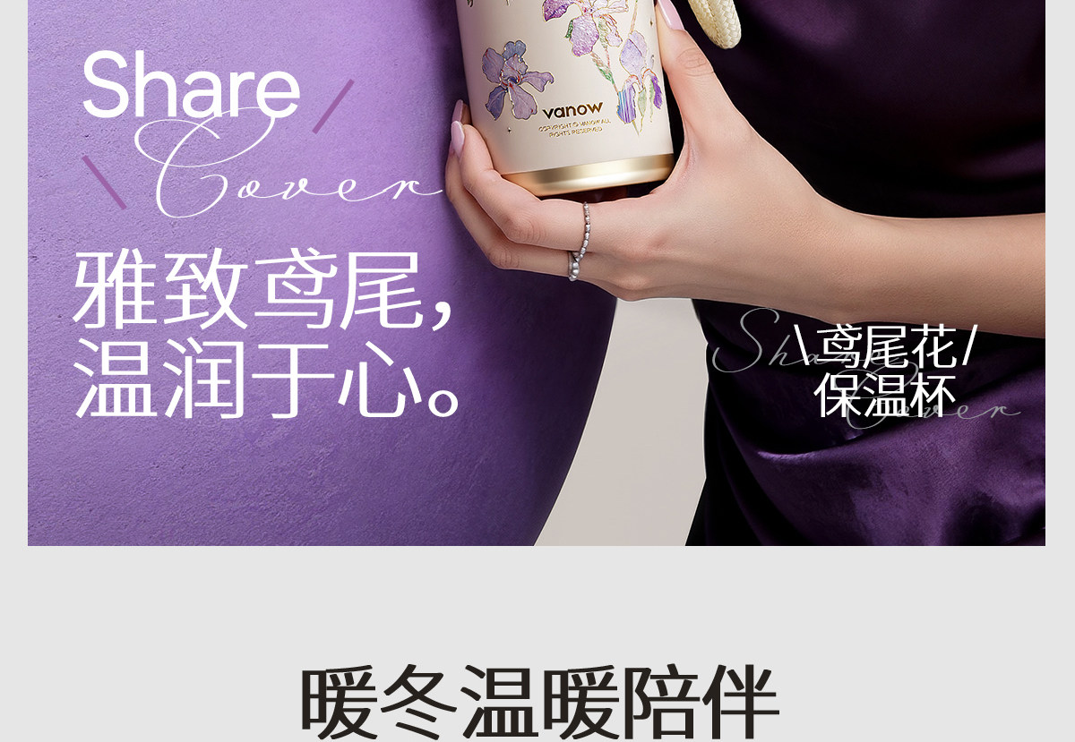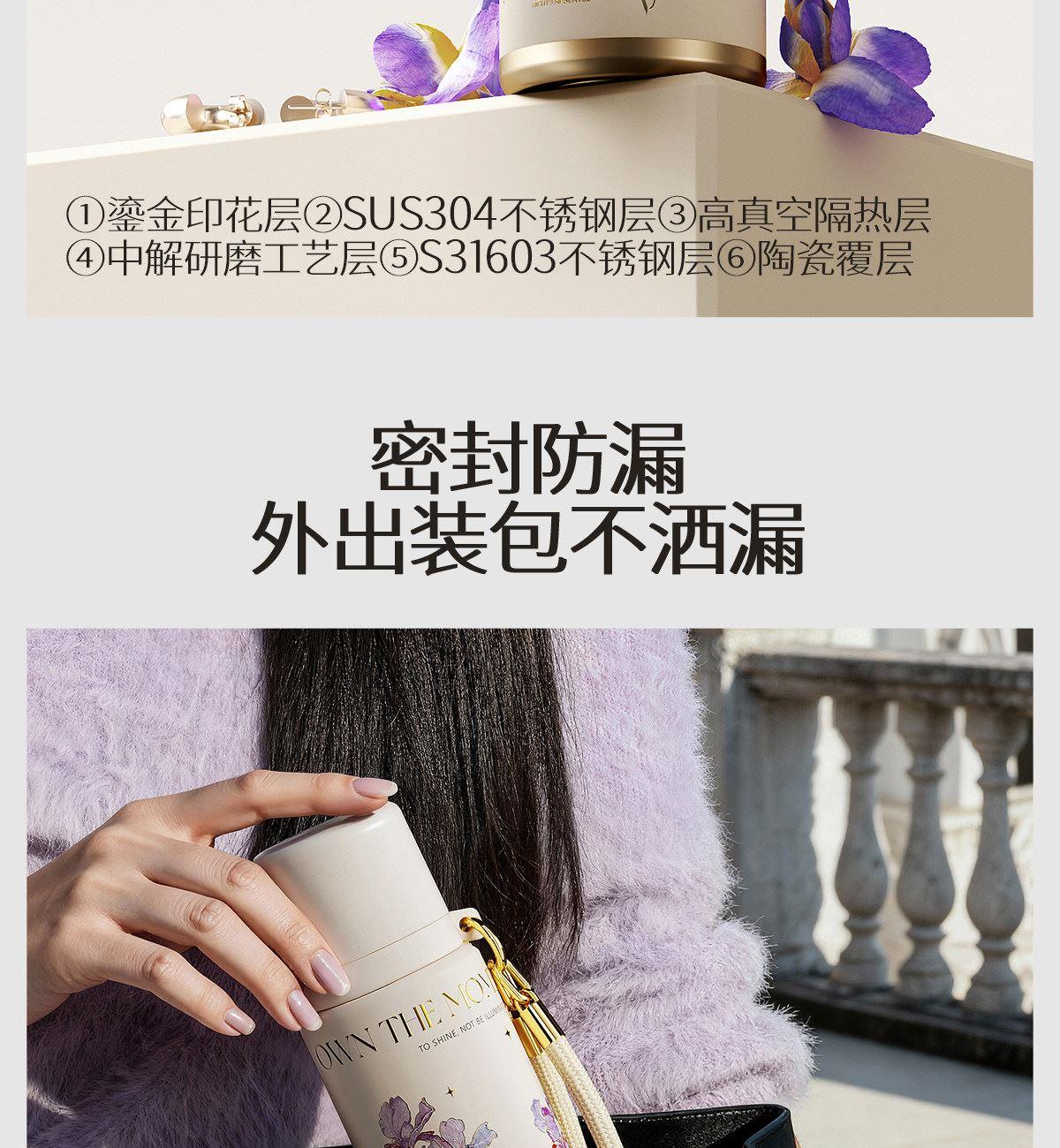 型號:VO-HY45ZD、VO-HT45ZD、VO-YW45ZD 顏色:花漾、海棠、鳶尾花 容量:450ml 材質(zhì):316不銹鋼/pp聚丙烯/硅橡膠 尺寸:225mm*68mm 產(chǎn)品賣點(diǎn):1.暖冬溫暖陪伴,杯中依然滾燙 2.一健摁壓,利落開合,雙層杯蓋更保溫 3.一杯雙飲,閑趣自在心 4.獨(dú)立茶倉,優(yōu)雅喝不吐渣 5.鎖住溫度,更留住細(xì)致呵護(hù)