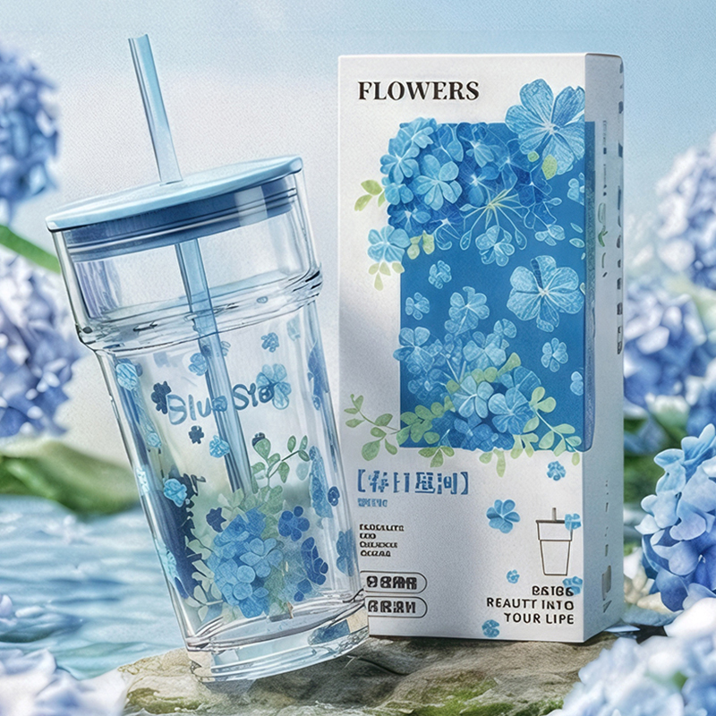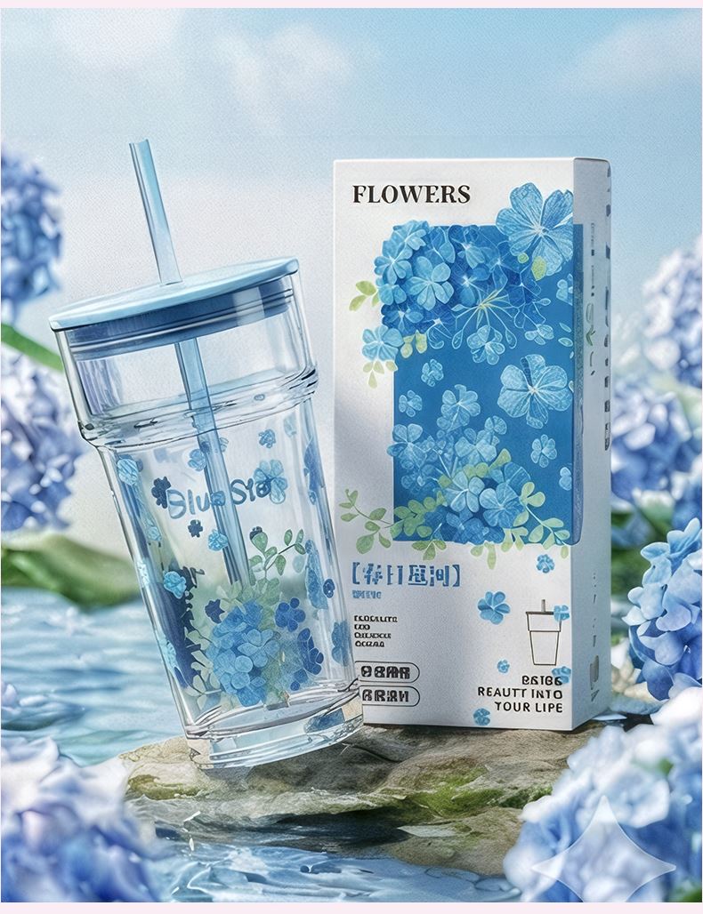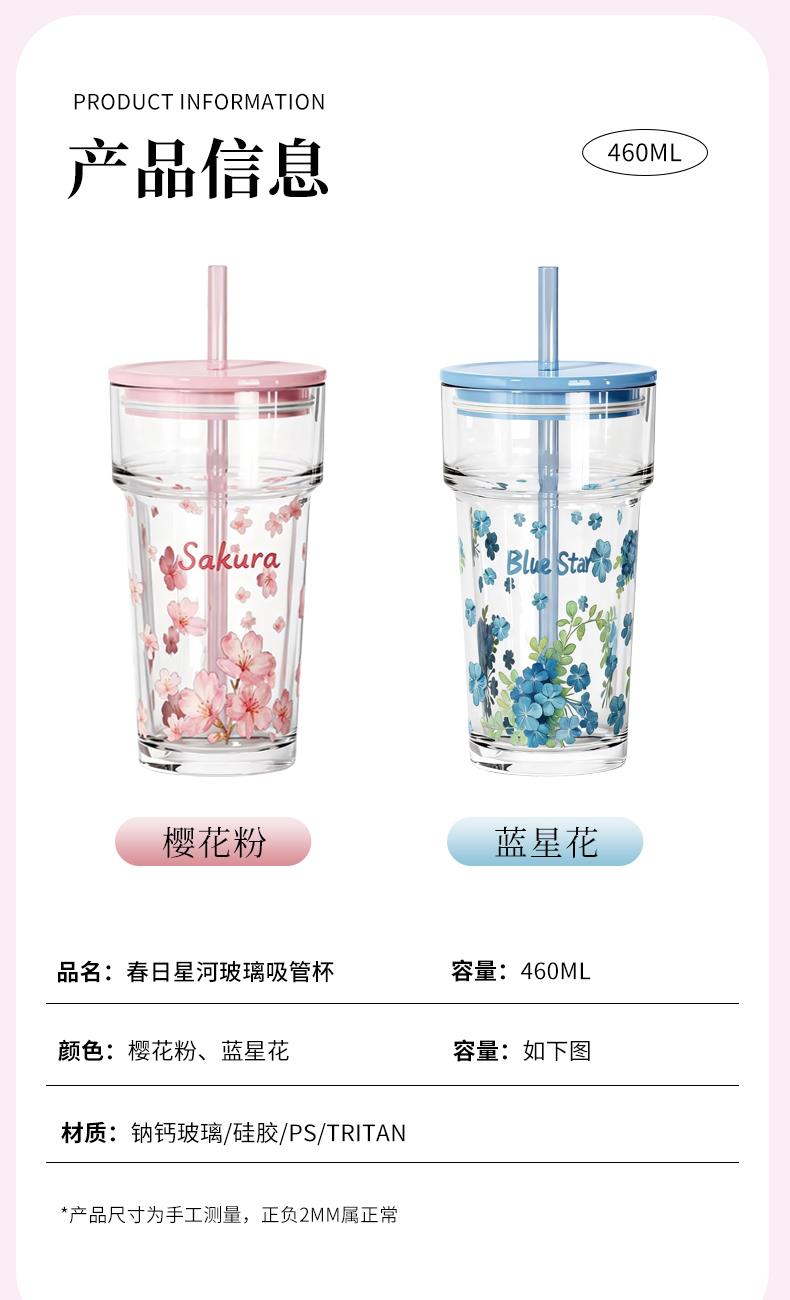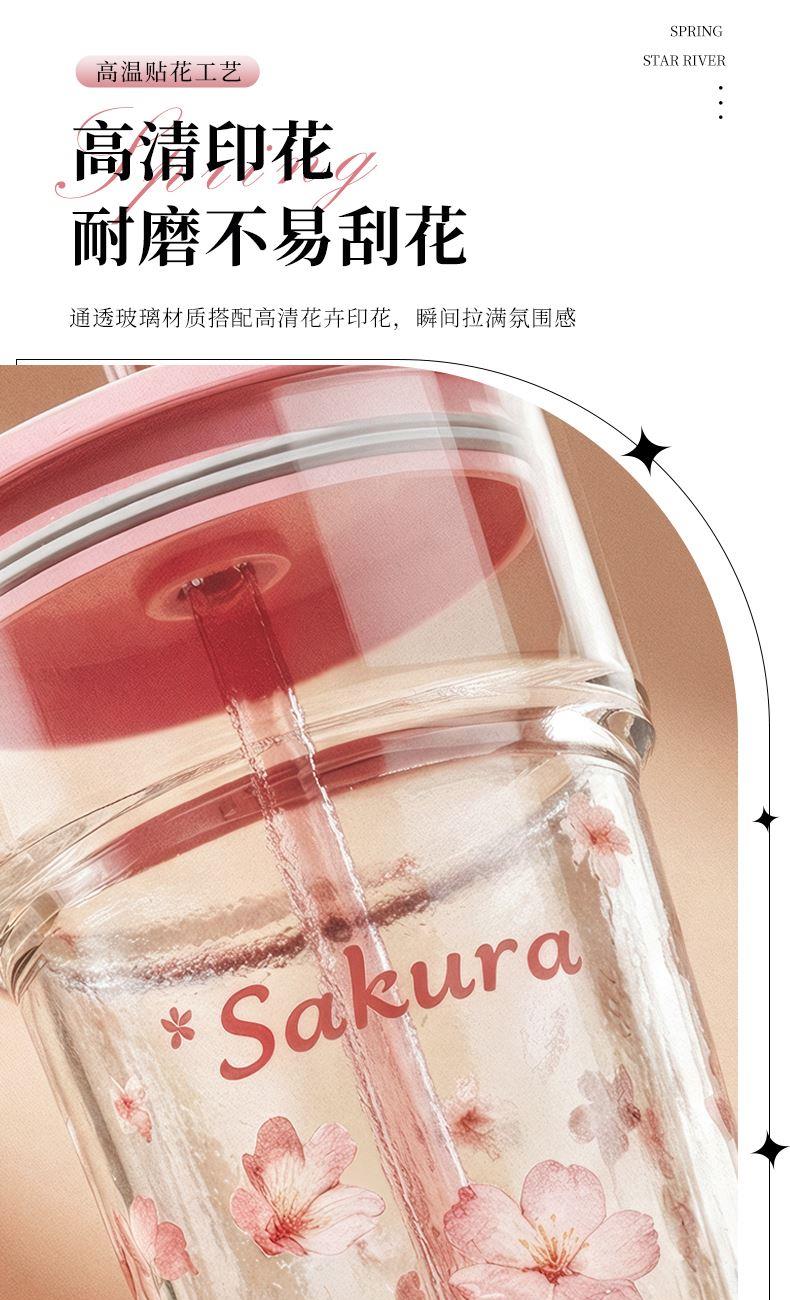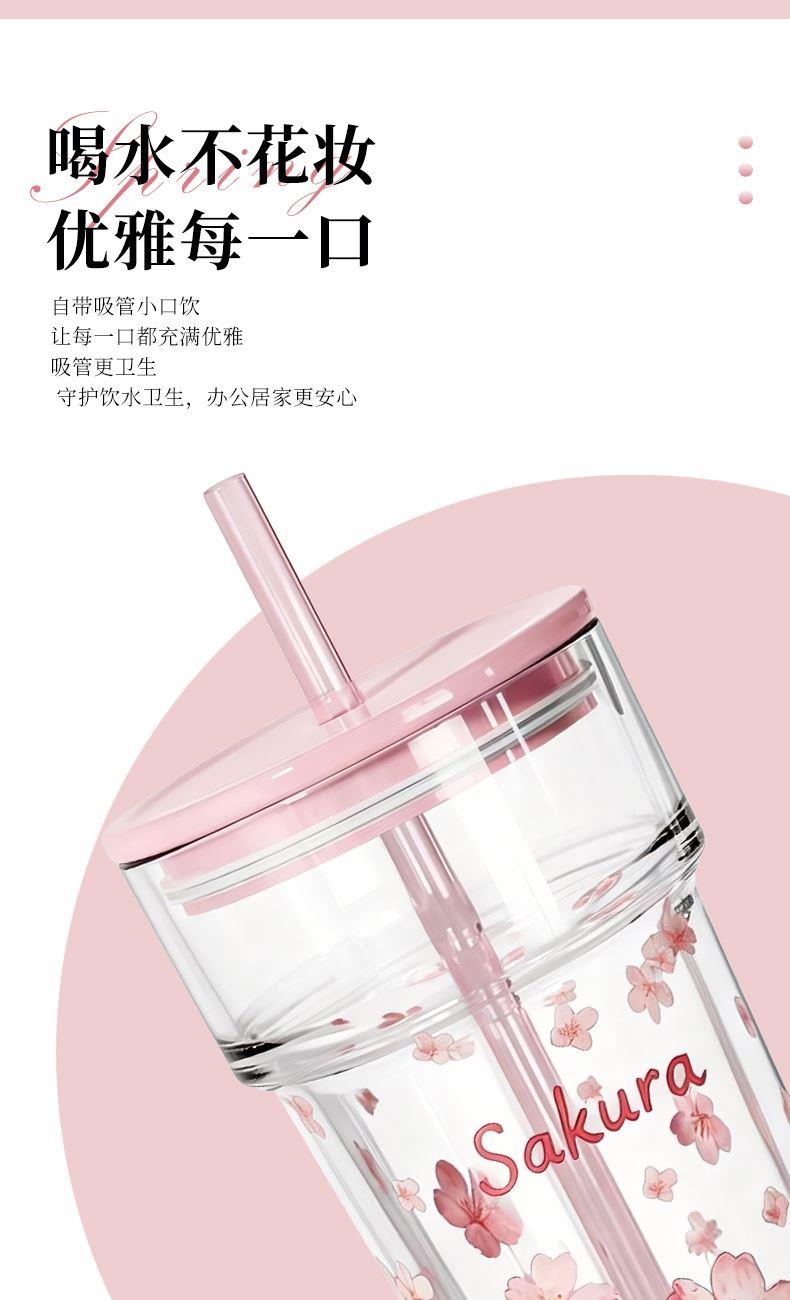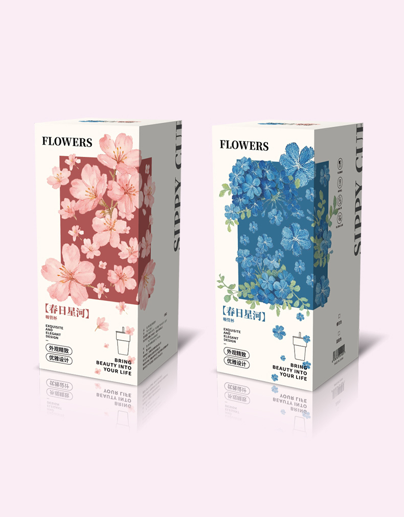 2、透明玻璃杯身印滿粉櫻,禮盒滿鋪櫻花紋樣,配色溫柔高 級(jí),自用賞心悅目,送禮自帶儀式感