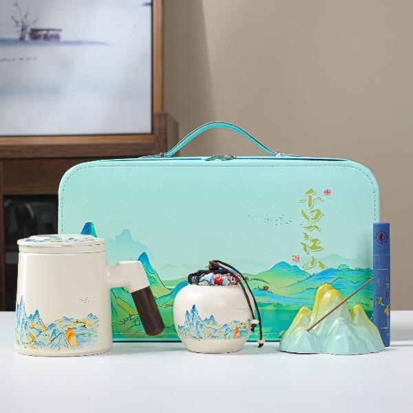 瓷語花香千里江山辦公杯套裝 禮品已成功加入PPT!