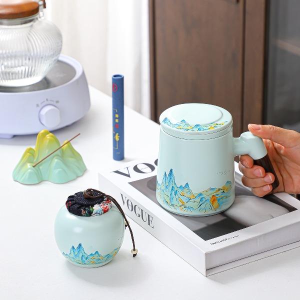 瓷語花香千里江山辦公杯套裝 瓷語花香千里江山辦公杯套裝
