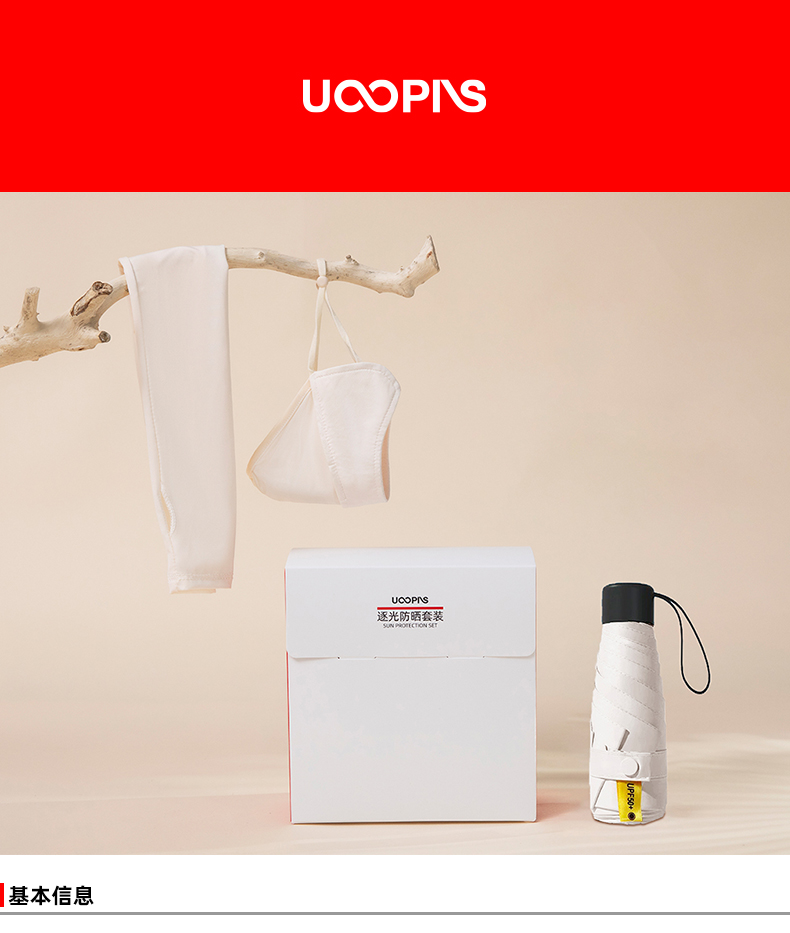 UOOPINS(優(yōu)品序)防曬口罩+防曬冰袖+黑膠晴雨傘組合 禮品已成功加入PPT!