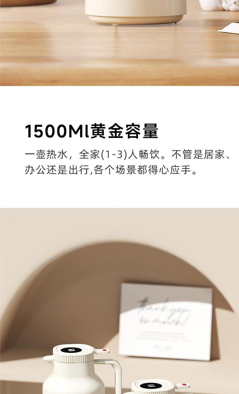 容量:1500ml | 凈重:870g | 口徑:40mm 高硼硅玻璃內(nèi)膽,食品級材質(zhì),健康更放心。 一觸顯溫,科學(xué)沖泡。 一鍵按壓出水,單手操作。 防塵壺嘴,不用擔(dān)心落灰,進(jìn)雜質(zhì),守護(hù)飲水健康。