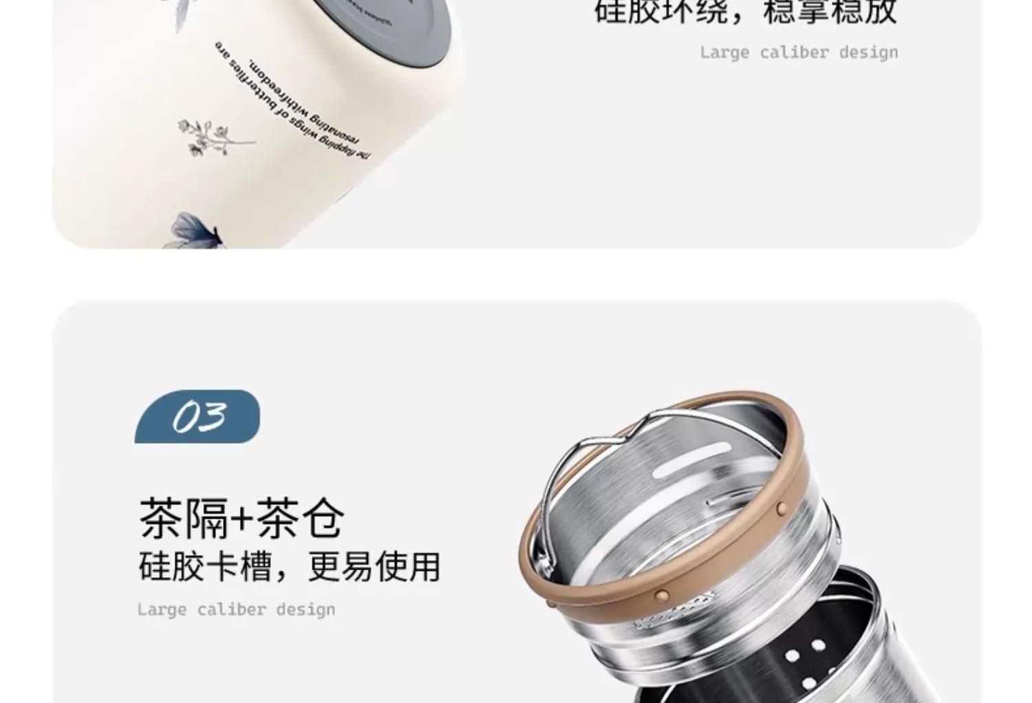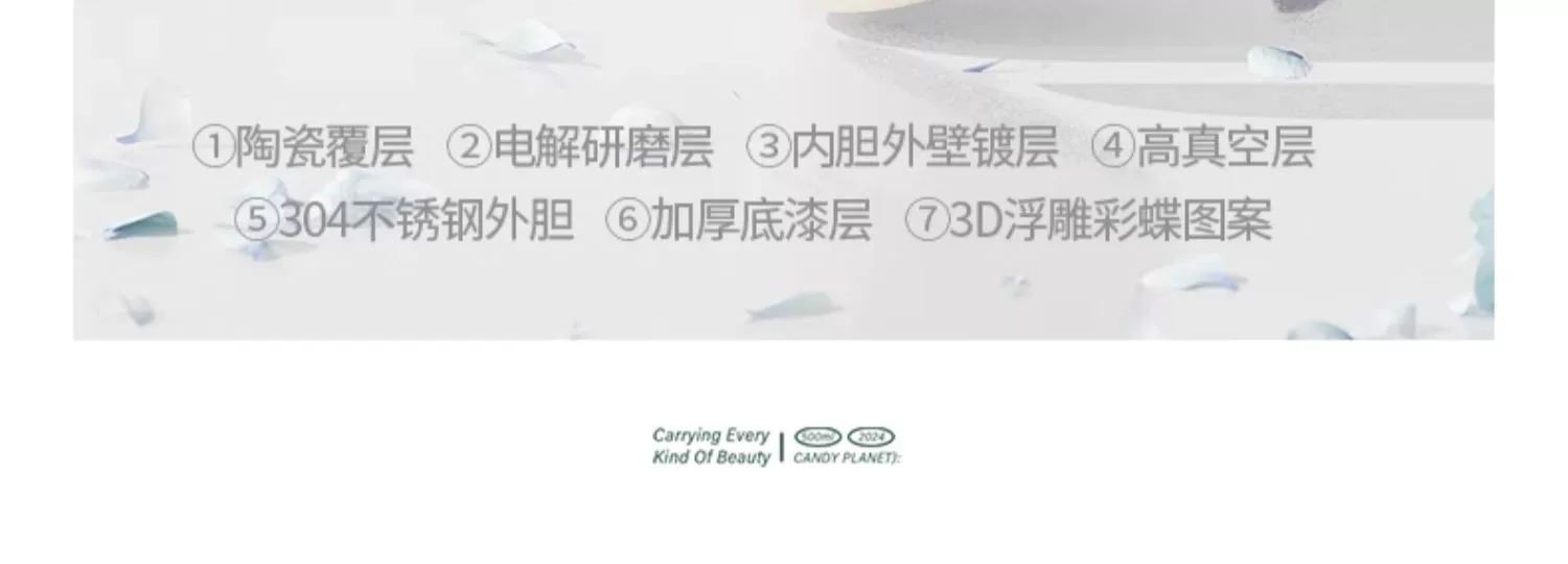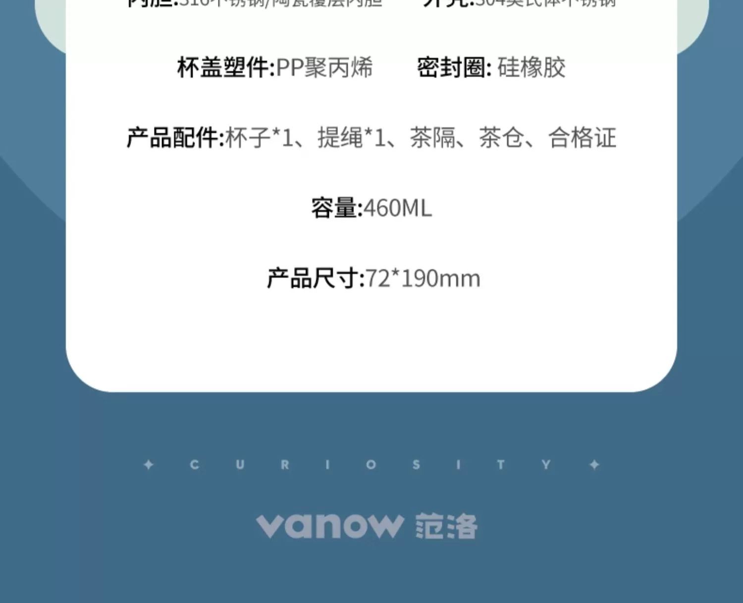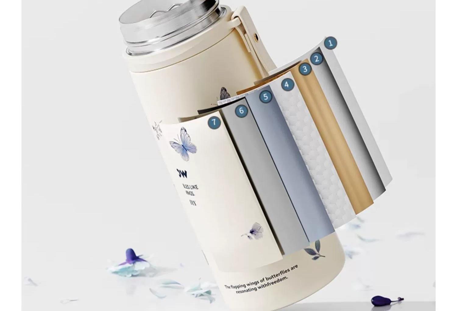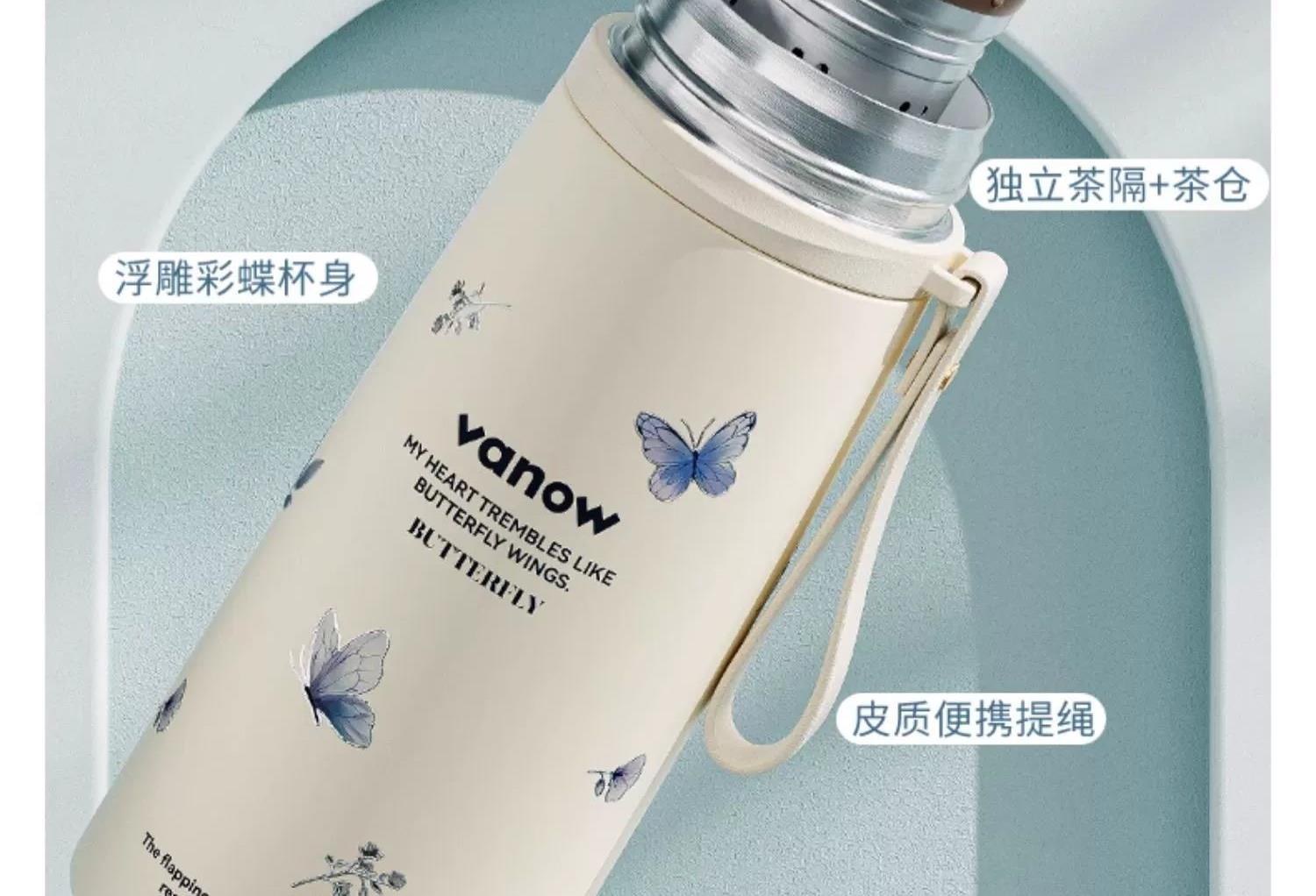 型號(hào):VO-HD46NS、VO-HD46NS-C 顏色:蝴蝶 容量:460ml 材質(zhì):內(nèi)膽316不銹鋼、外殼304不銹鋼 尺寸:70mm*185mm 產(chǎn)品賣點(diǎn):1.溫度看的見,一觸顯溫,知冷知熱免燙嘴 2.養(yǎng)生茶飲,燜茶也不在話下 3.開啟后每隔兩小時(shí),會(huì)響起滴滴提醒 4.360度密封,裝包滿滿安全感