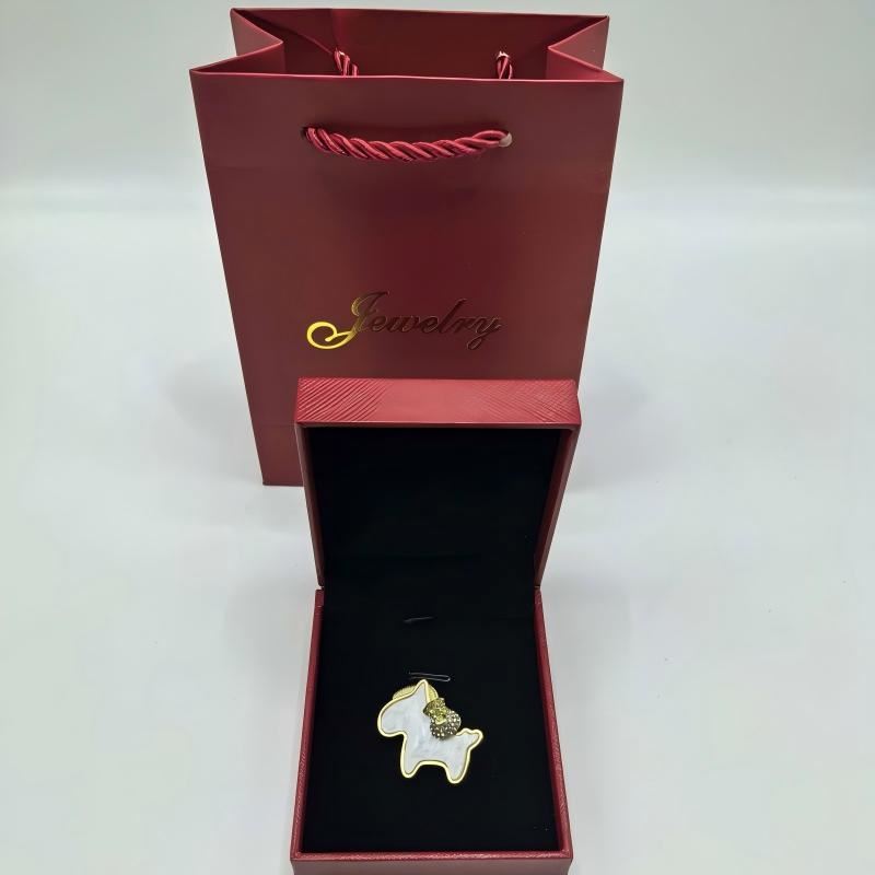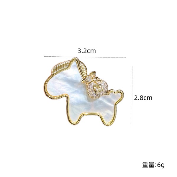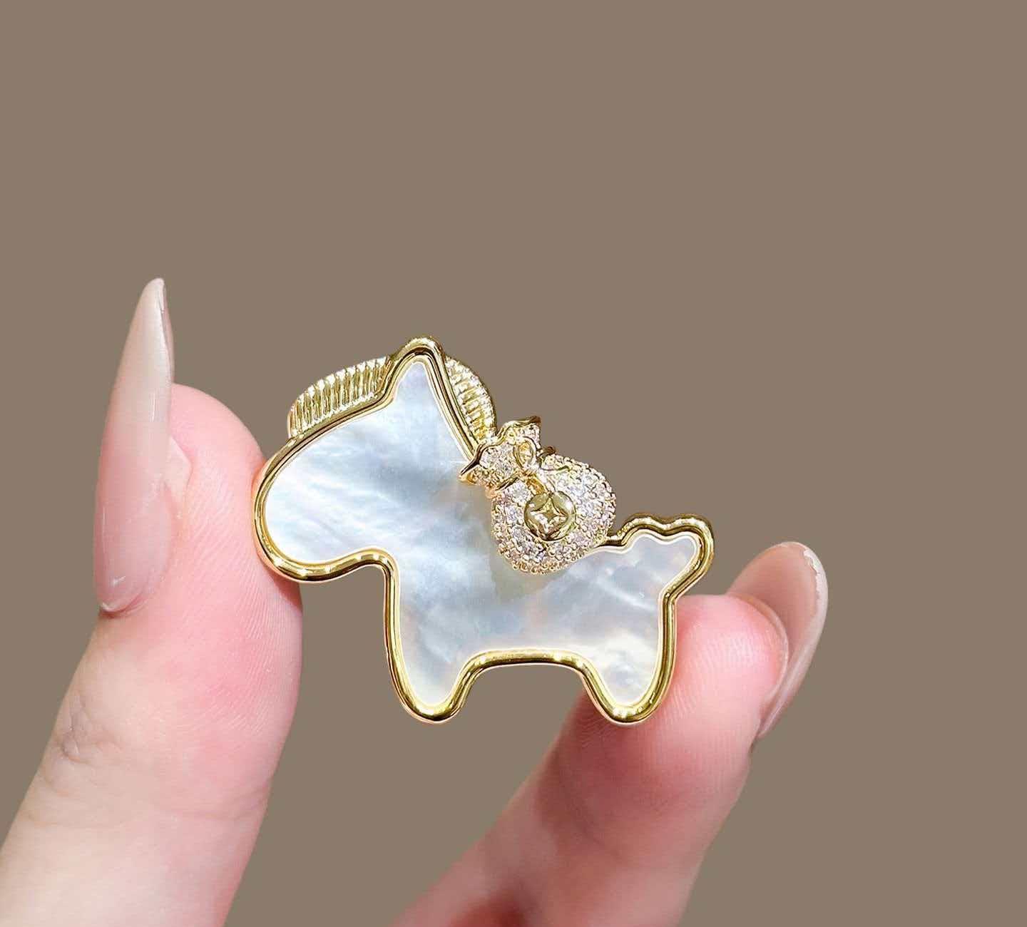 產(chǎn)品尺寸:3.2*2.8cm 重約6克 產(chǎn)品配置:胸針+包裝手提 產(chǎn)品材質(zhì):仿貝母+合金 “馬上有福,點(diǎn)亮日 這只金色小馬,把溫柔月光和整袋好運(yùn)都背在身上 ? 溫潤仿貝母身體,泛起珍珠光澤 ? 福袋鑲滿細(xì)鉆,光下會(huì)閃閃發(fā)亮 ? 僅6g重,別在哪兒都是恰到好處的精致