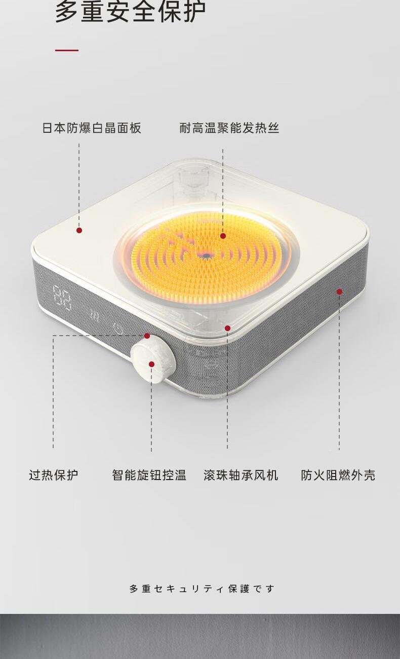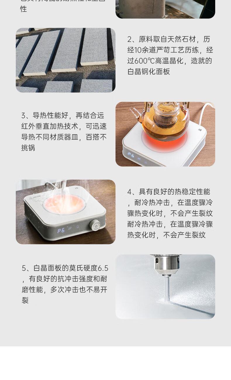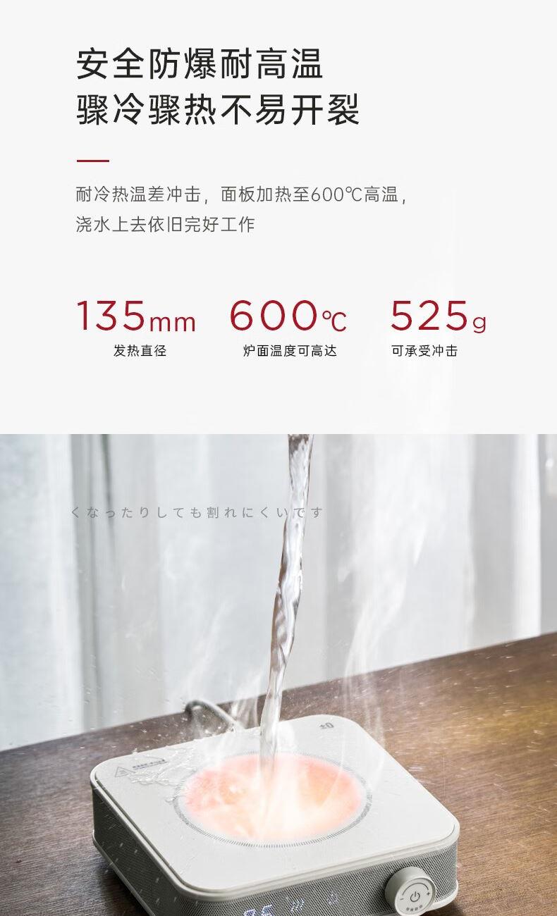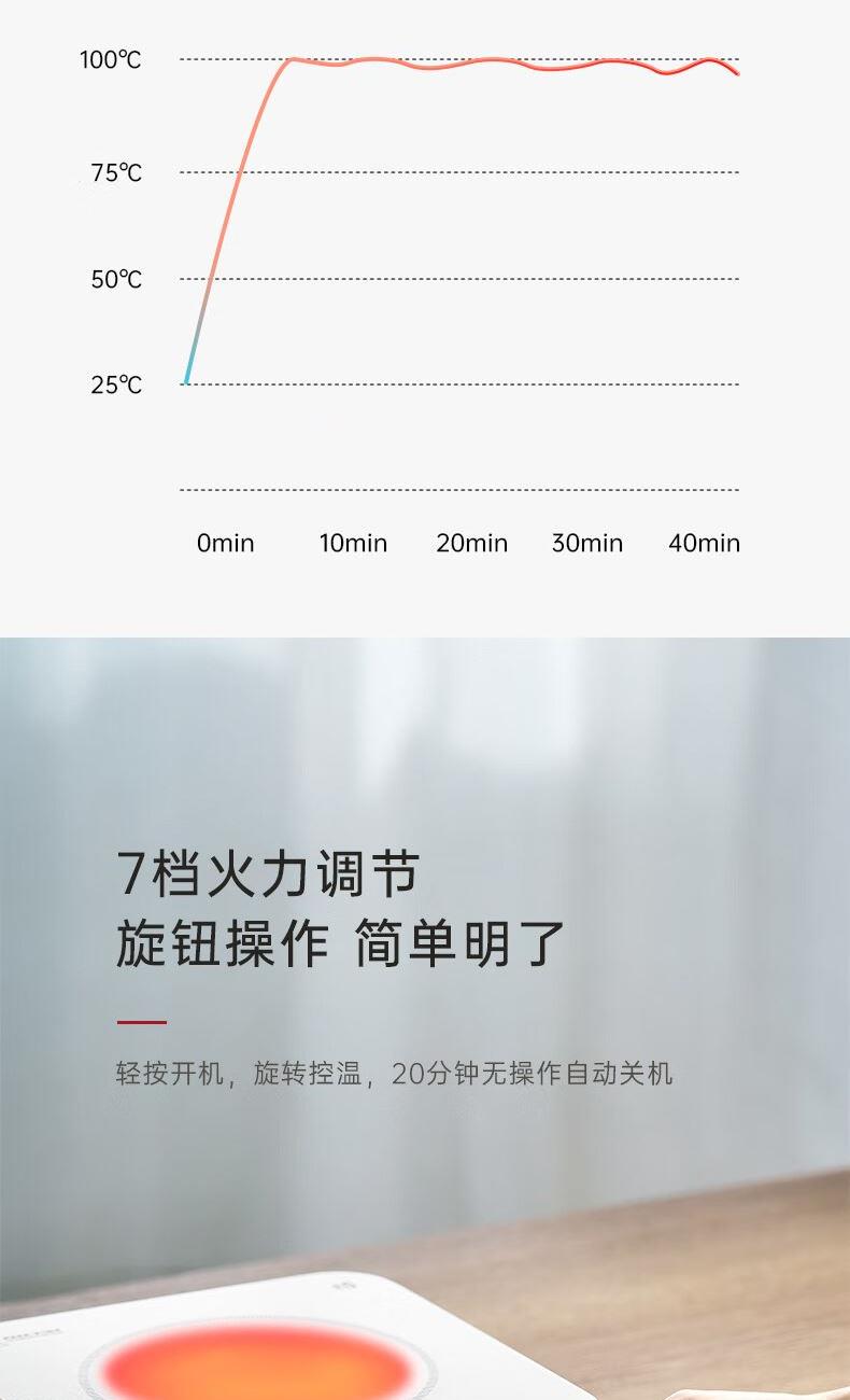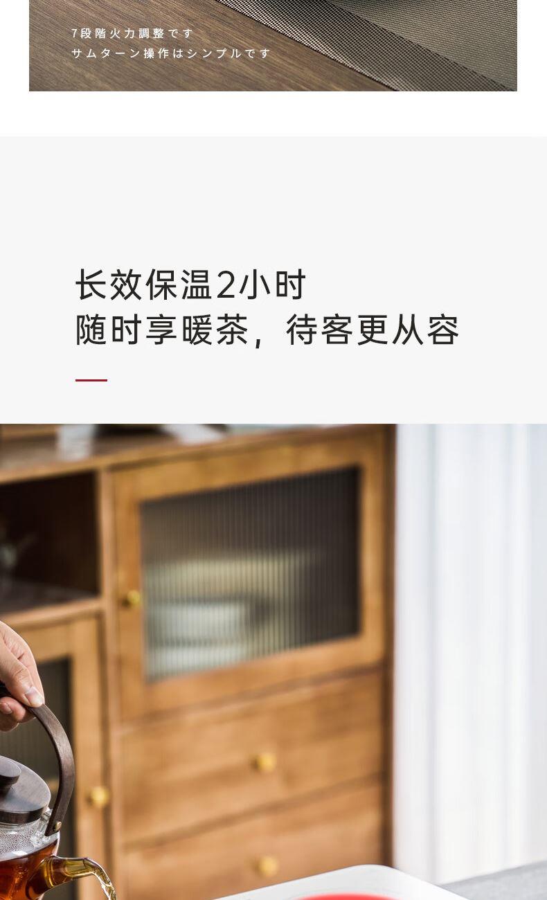 型號:CKH-J010 產品尺寸: 202*215*60mm 產品凈重:約1.1 kg 額定電壓:220V~ 額定頻率:50Hz 額定功率:1200W 可保溫時間:2小時 紅外聚能“垂直加熱”技術 隨心搭配,多壺適用 旋鈕開關靈活掌握火候 風扇靜音散熱壽命更長久
