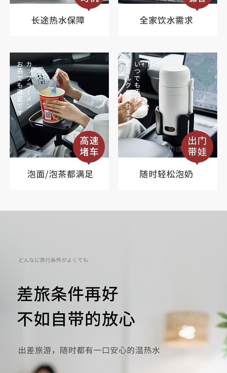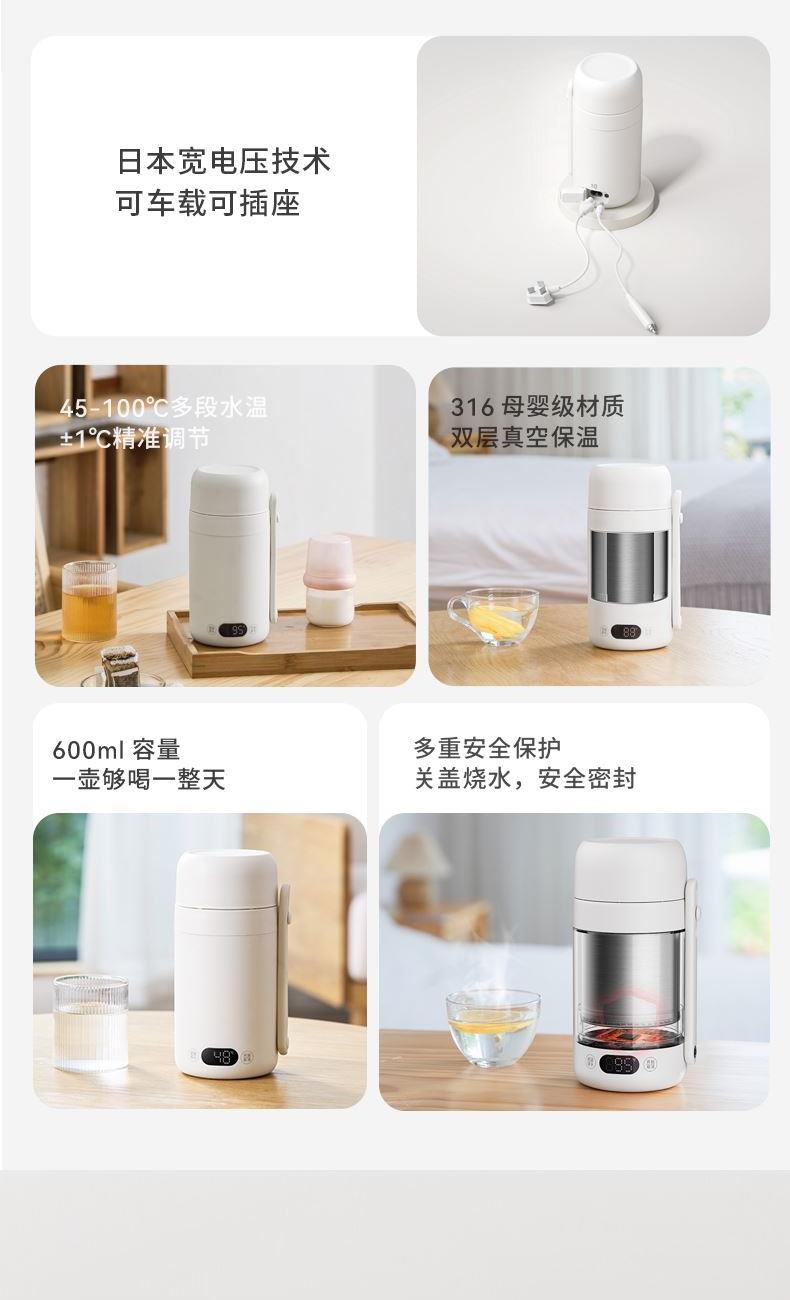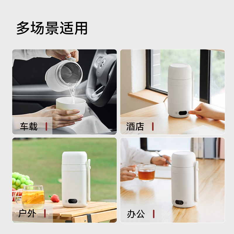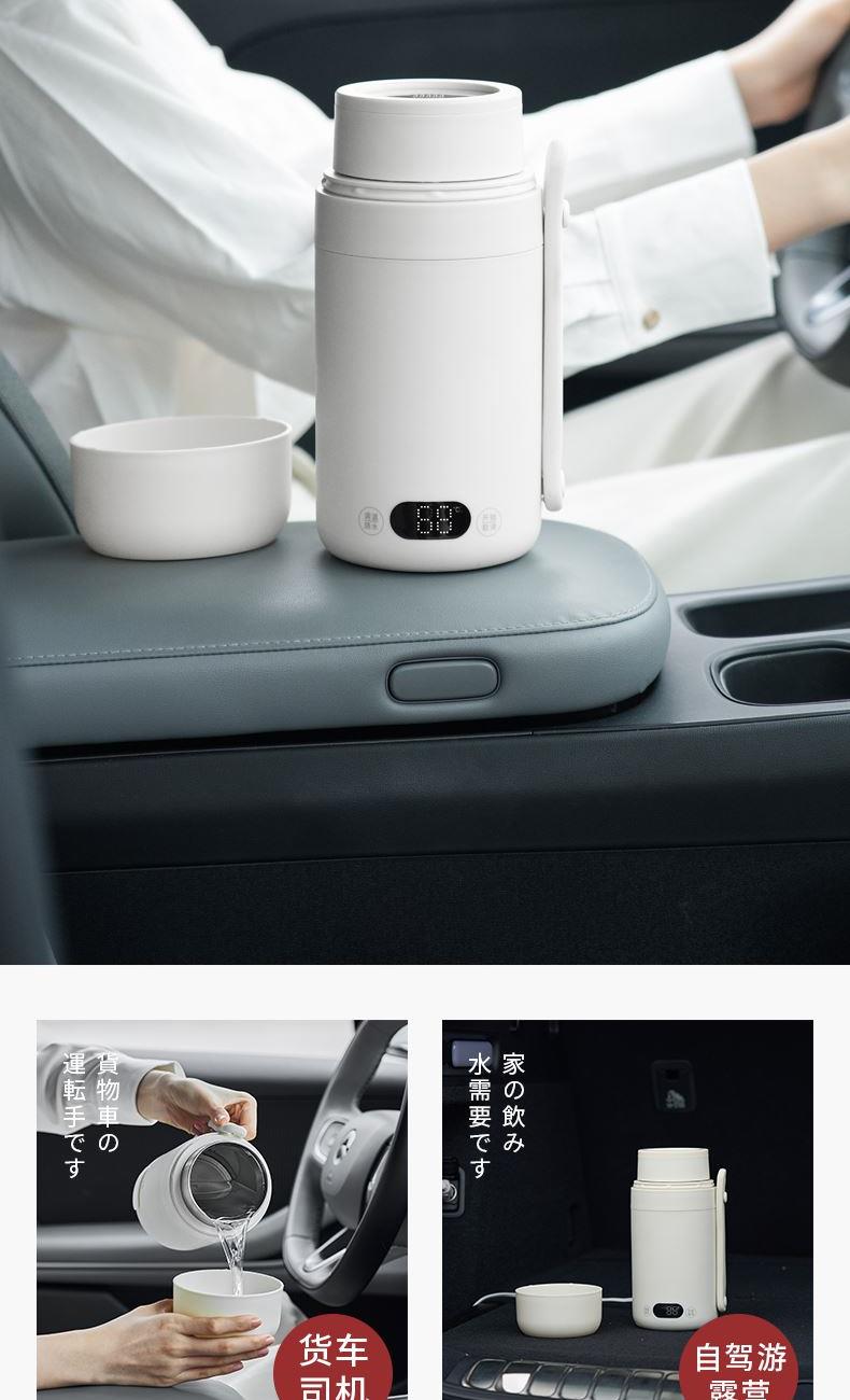 溫度調(diào)節(jié):常溫-100攝氏度 材質(zhì):316不銹鋼內(nèi)膽 操作界面:電子 功率:500w(車載12v-70w) 一杯雙蓋燒水喝水二合一 ? 12小時(shí)雙層真空保溫 ? 舒適提手戶外便攜 ? 關(guān)蓋燒水安全密封 ? 隨行熱水,一手掌握插座/車載,雙模式燒水