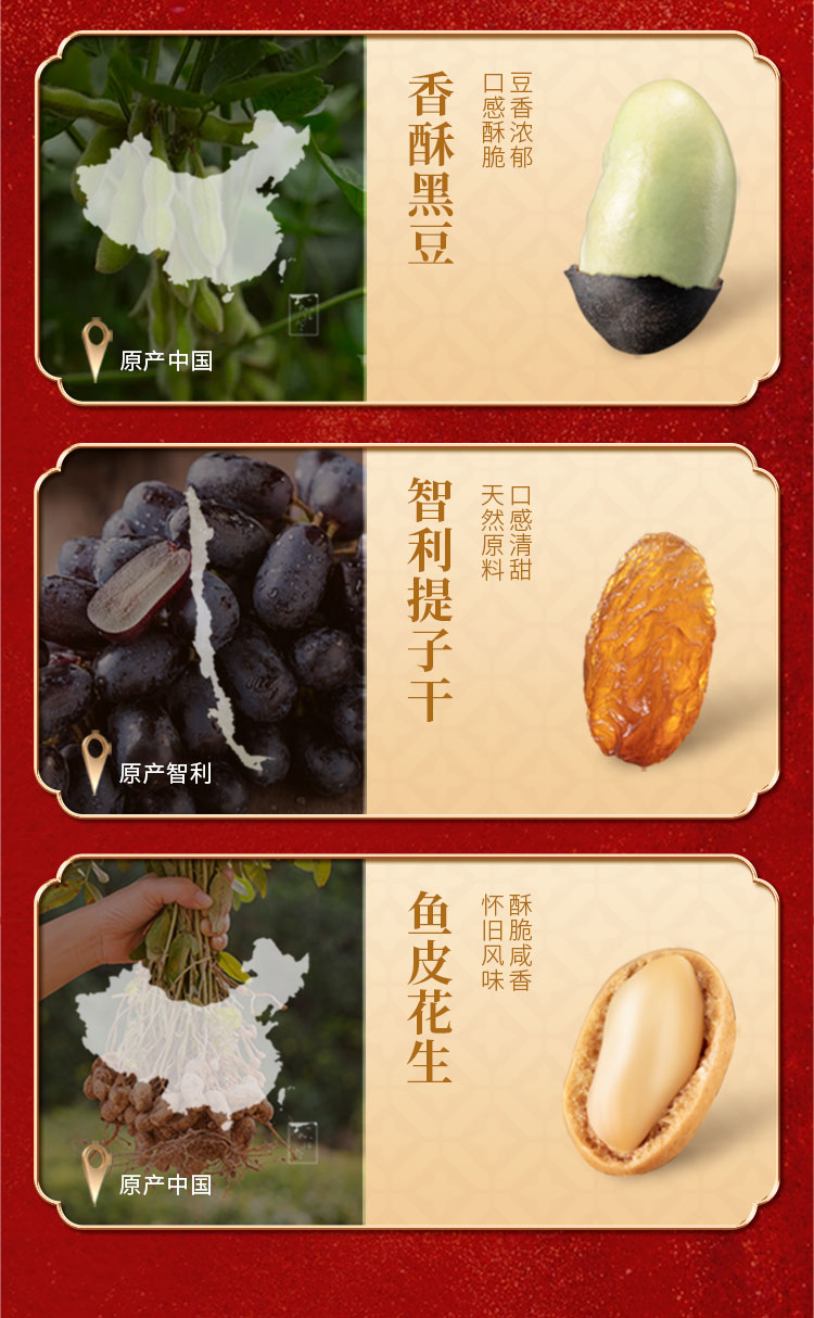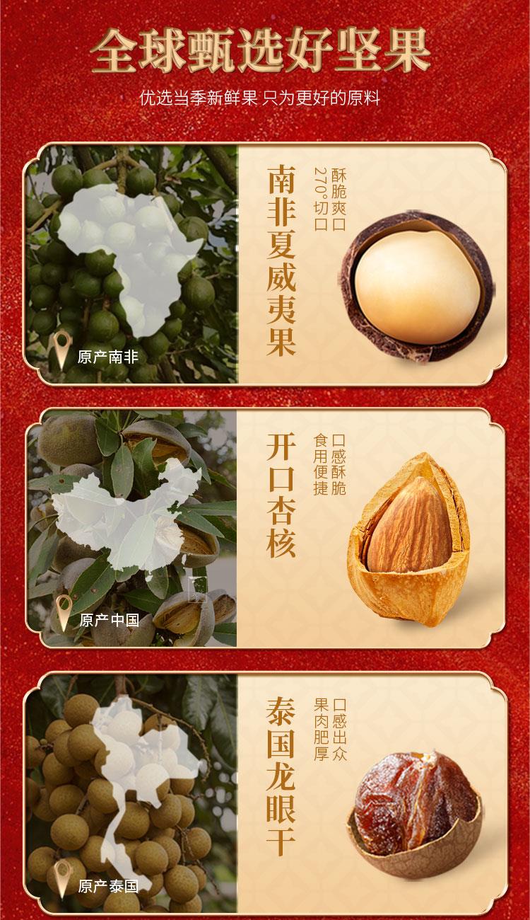 南非夏威夷果200g 開口杏核190g 泰國龍眼干90g 五香黑豆160g 智利提子干260g 魚皮花生160g