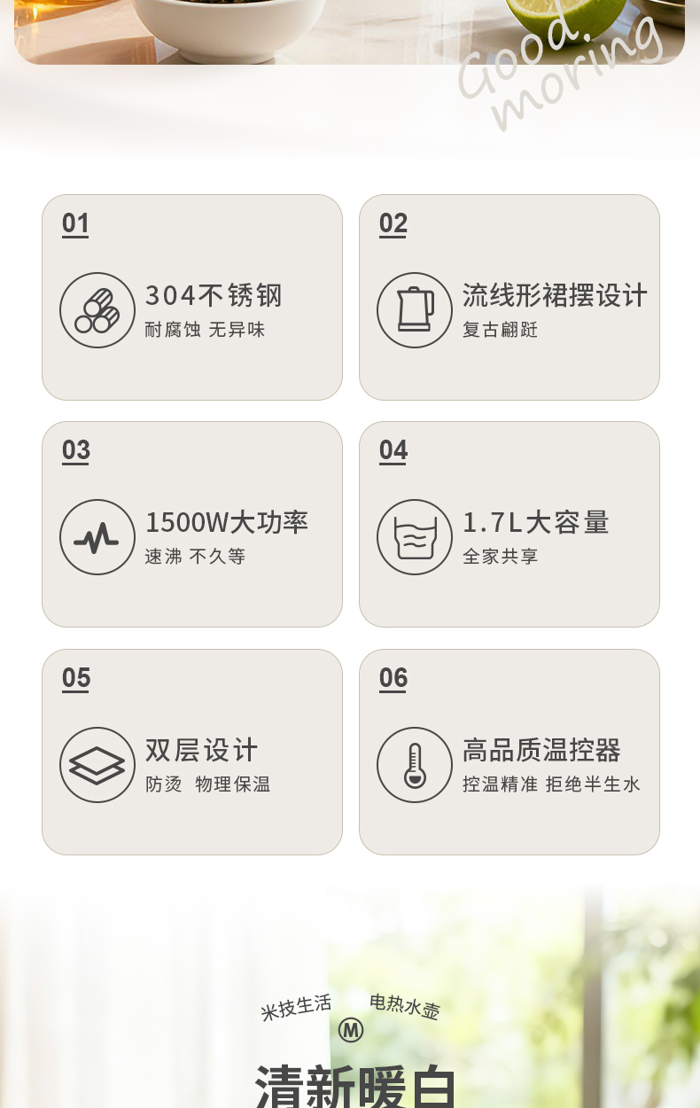 MijiHome米技生活電熱水壺HK-L1766 MijiHome米技生活電熱水壺HK-L1766