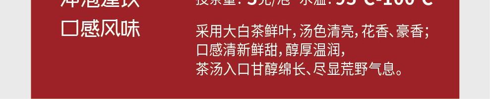 首批水仙白茶非遺大師曾瑩老師親作, 采自福建閩北地區(qū)海拔500米以上大白茶鮮葉,傳統(tǒng)工藝精心制作,湯色清亮,花香毫香顯,茶湯入口甘醇綿長,絲絲甜感入喉,盡顯荒野氣息。