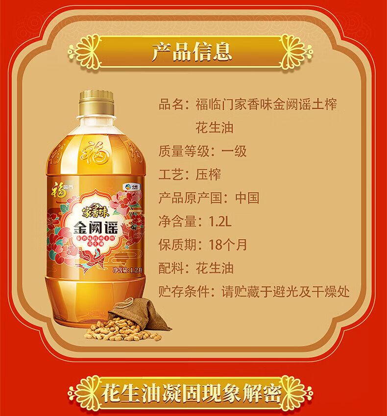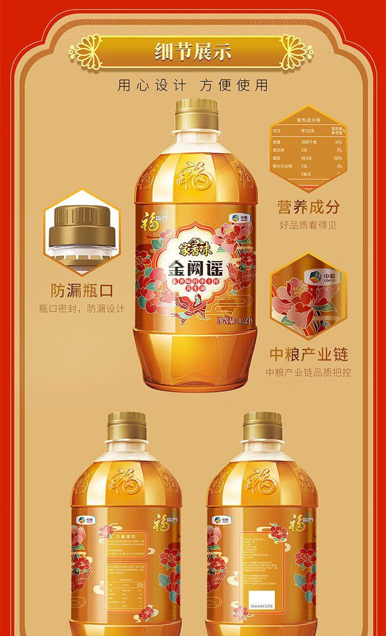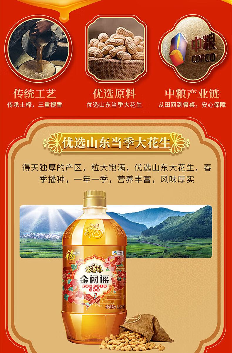 中糧福臨門家香味金闕謠土榨花生油1.2L*3禮盒裝