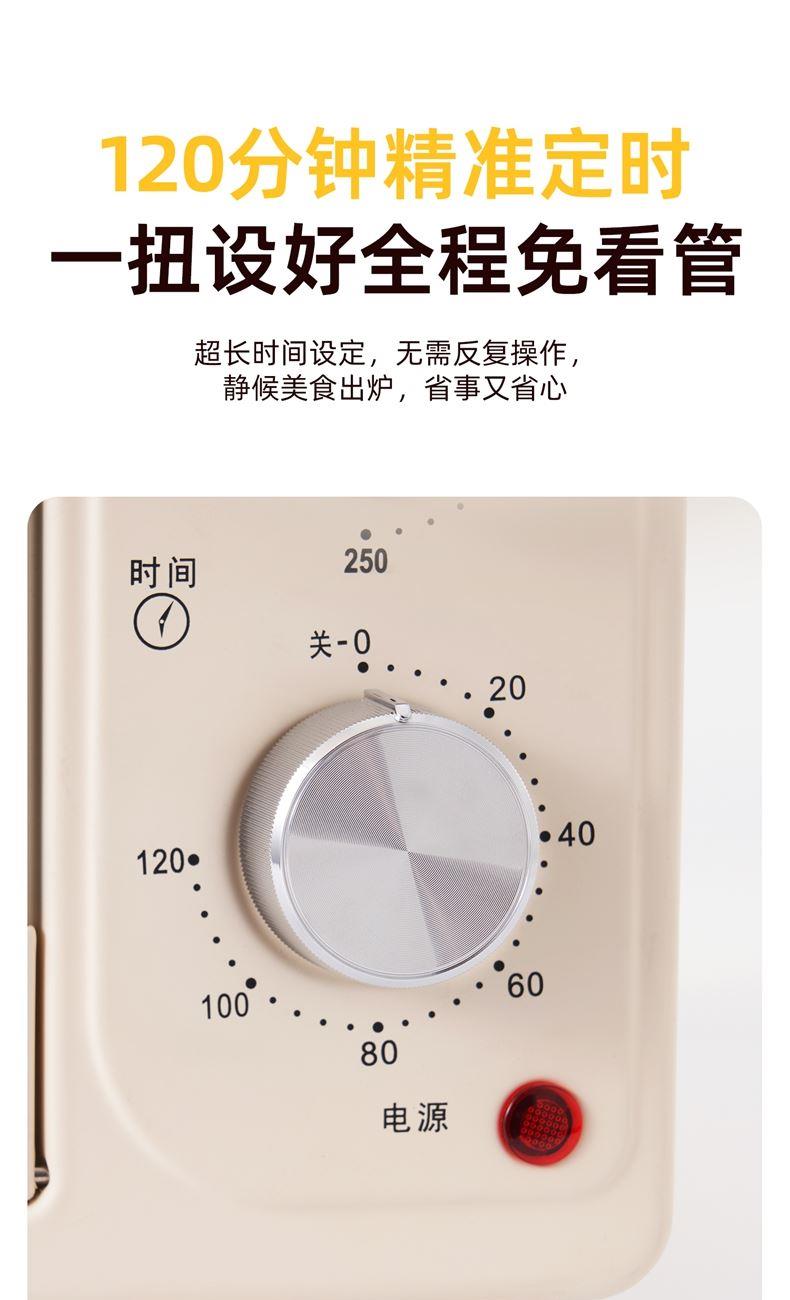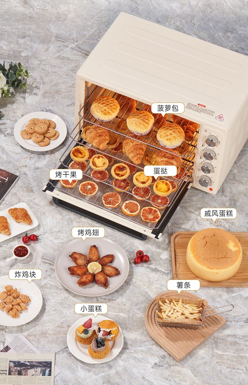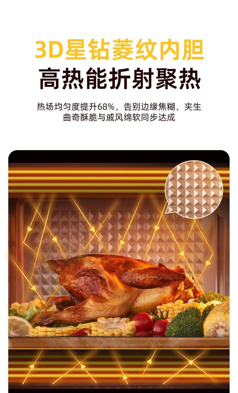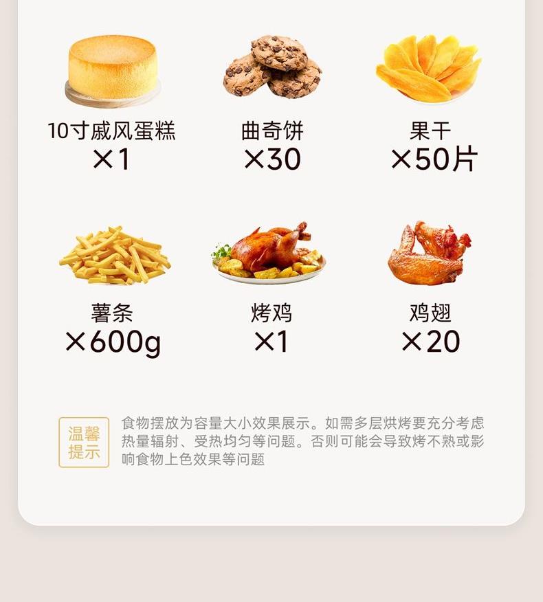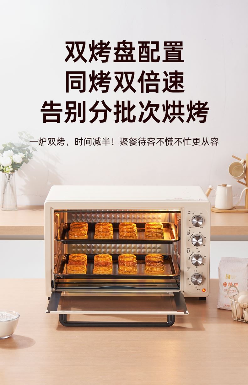 性能配置:60L 大容量,2200W,適配多種烤制需求; 具備低溫發(fā)酵、內(nèi)置照明、360 度旋轉(zhuǎn)烤叉功能; 材質(zhì)優(yōu)勢:發(fā)熱管為不銹鋼材質(zhì),內(nèi)膽是不沾油涂層,電腦式控制,臺式款式,擺放靈活,4 層烤位; 加熱系統(tǒng):熱風循環(huán),熱量均勻; 上下管獨立控溫,60 - 250℃廣域調(diào)溫;