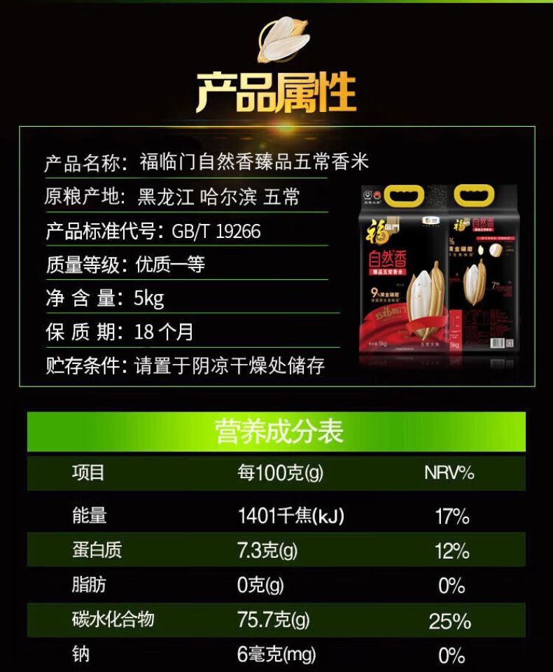 中糧福臨門自然香臻品五常大米5kg 中糧福臨門自然香臻品五常大米5kg