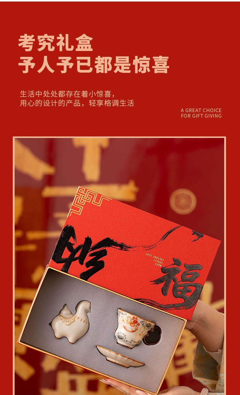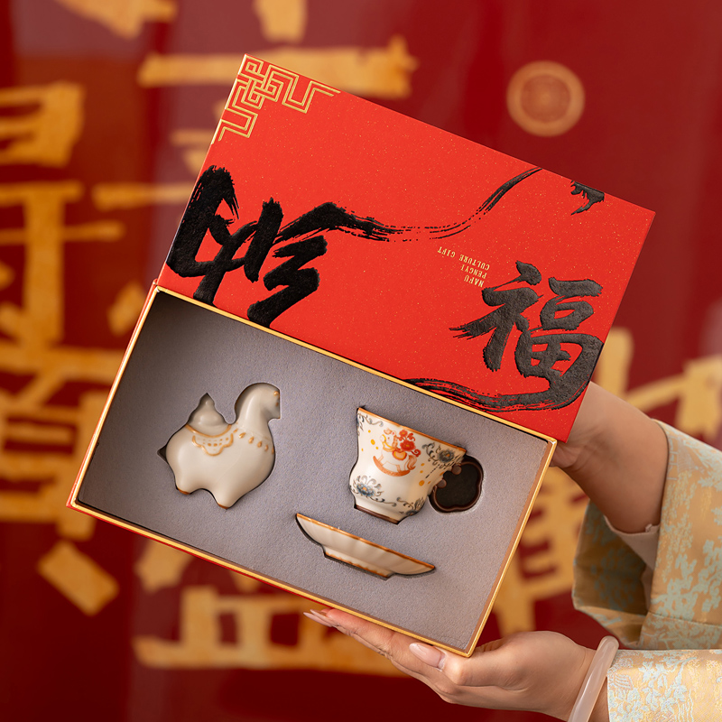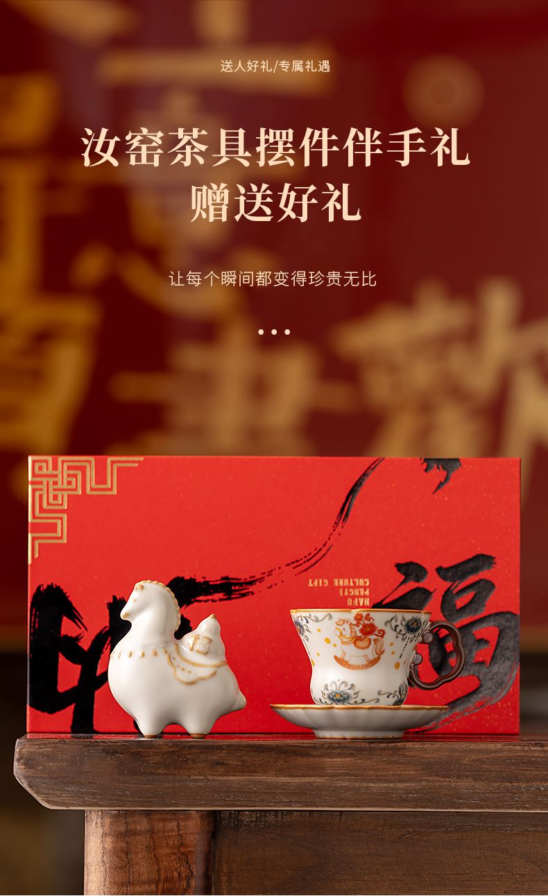 推薦說(shuō)明:馬年開(kāi)門紅禮品,馬上有錢,馬到成功杯子擺件套裝,馬背上葫蘆造型,寓意福祿。亞黃汝瓷,瑪瑙入釉,蟬翼開(kāi)片,家有千財(cái)萬(wàn)貫,不如汝窯一片。技術(shù)新品。畫(huà)面堆料技術(shù),富有立體浮雕質(zhì)感,真實(shí)感強(qiáng)。杯身開(kāi)片,可養(yǎng)瓷。