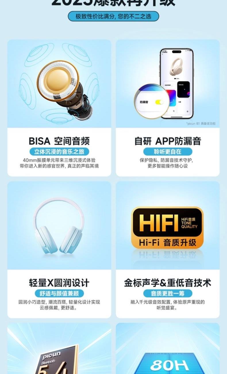 picun品存頭戴式耳機(jī)Queen冰心藍(lán)