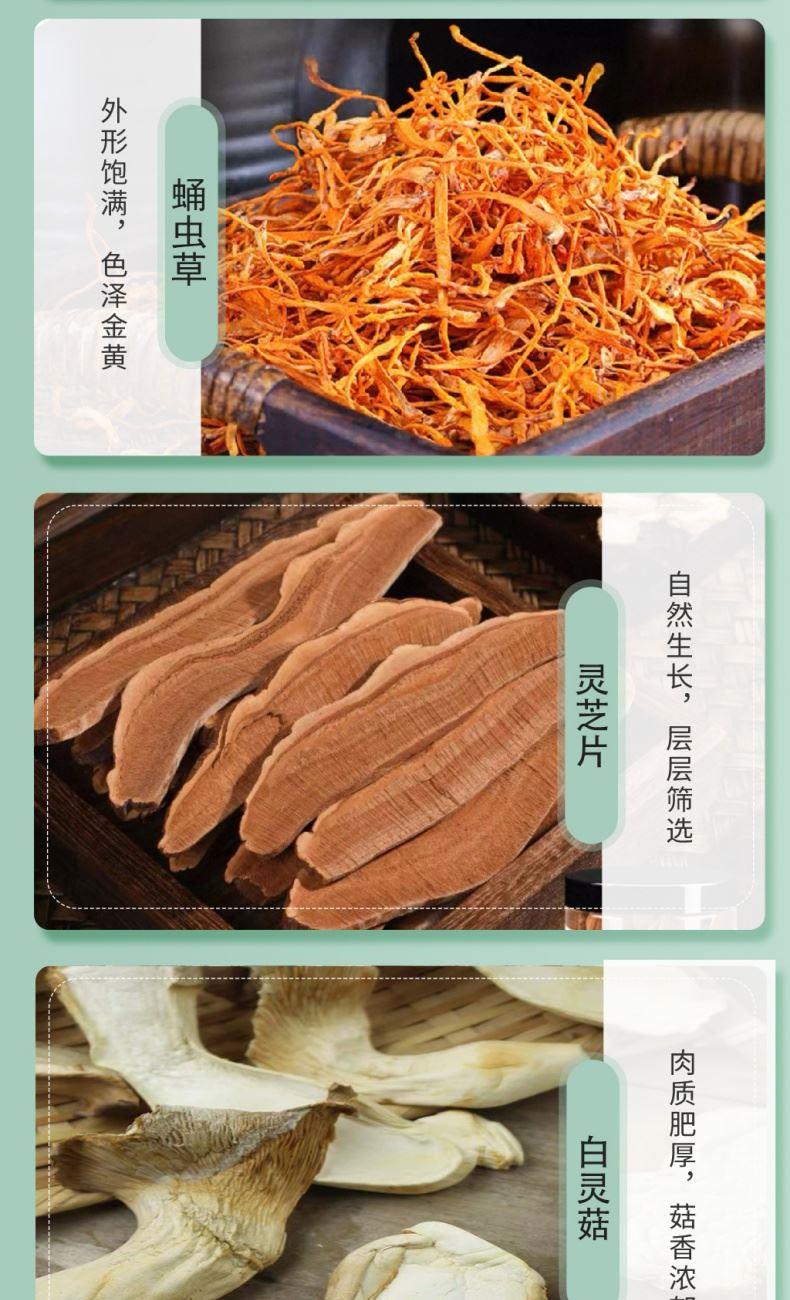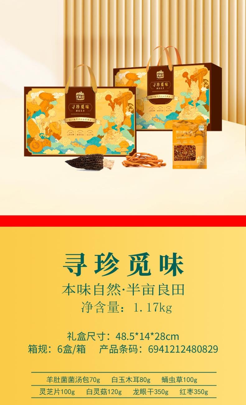 產(chǎn)品配置: 羊肚菌菌湯包70g 精選白玉木耳80g 精選蛹蟲草100g 精選靈芝片100g 野生白靈菇120g 泰國(guó)龍眼干350g 新 疆 紅 棗350g 凈含量:1.17kg 禮盒尺寸:48.5*14*28cm 半畝川珍養(yǎng)禮盒,匯聚羊肚菌、靈芝片等珍菌干貨,搭配新疆紅棗、龍眼干,天然滋補(bǔ),營(yíng)養(yǎng)均衡。