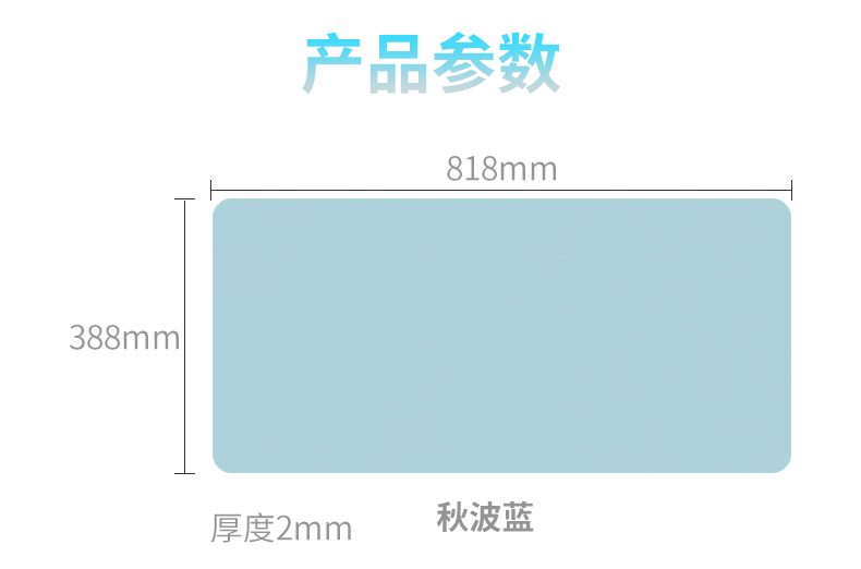 388x818mm大尺寸,足以讓鼠標無拘束移動。提升日常辦公效果和桌面簡潔。 采用優(yōu)質皮紋面料,手感細膩,滑嫩親膚。 多個場景適用(辦公桌、書桌、電腦桌、茶桌) 材質工藝:膚感防滑PU 產(chǎn)品尺寸:388x818mm 產(chǎn)品顏色:秋波藍/灰色 重量:約23kg/箱
