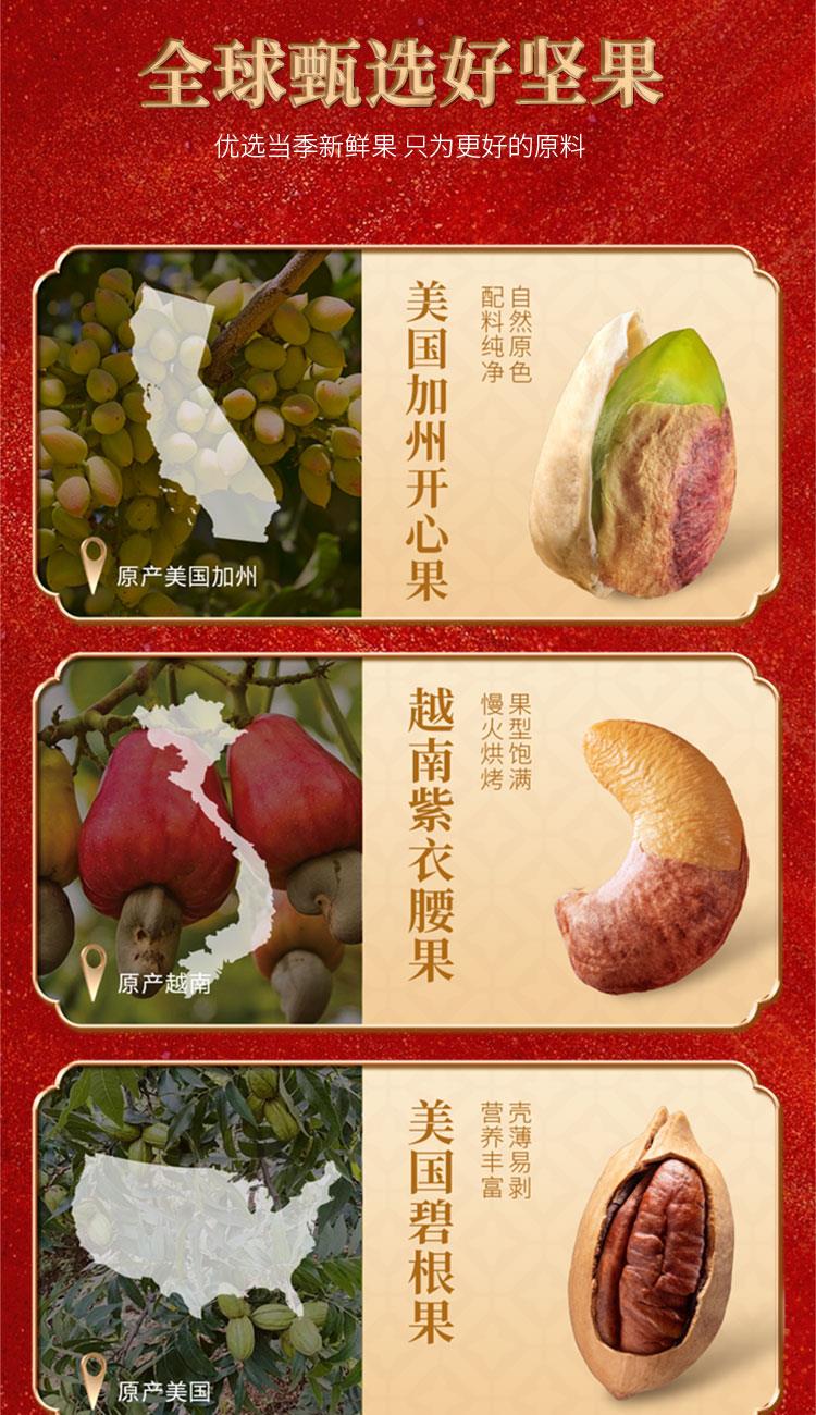 美國加州開心果235g 美國碧根果250g 越南紫衣腰果240g 南非夏威夷果245g 美國巴旦木215g 美國開口榛子230g