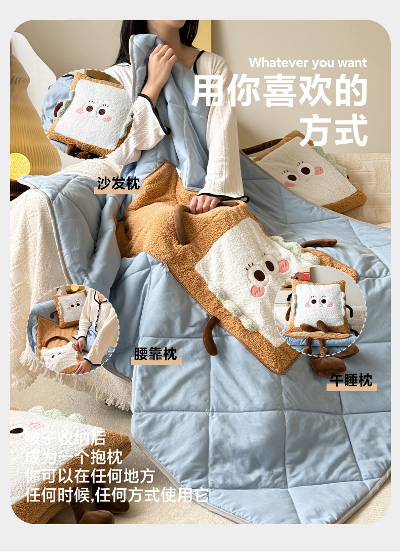 蕊絲坊家紡新款卡通立體多功能抱枕被
