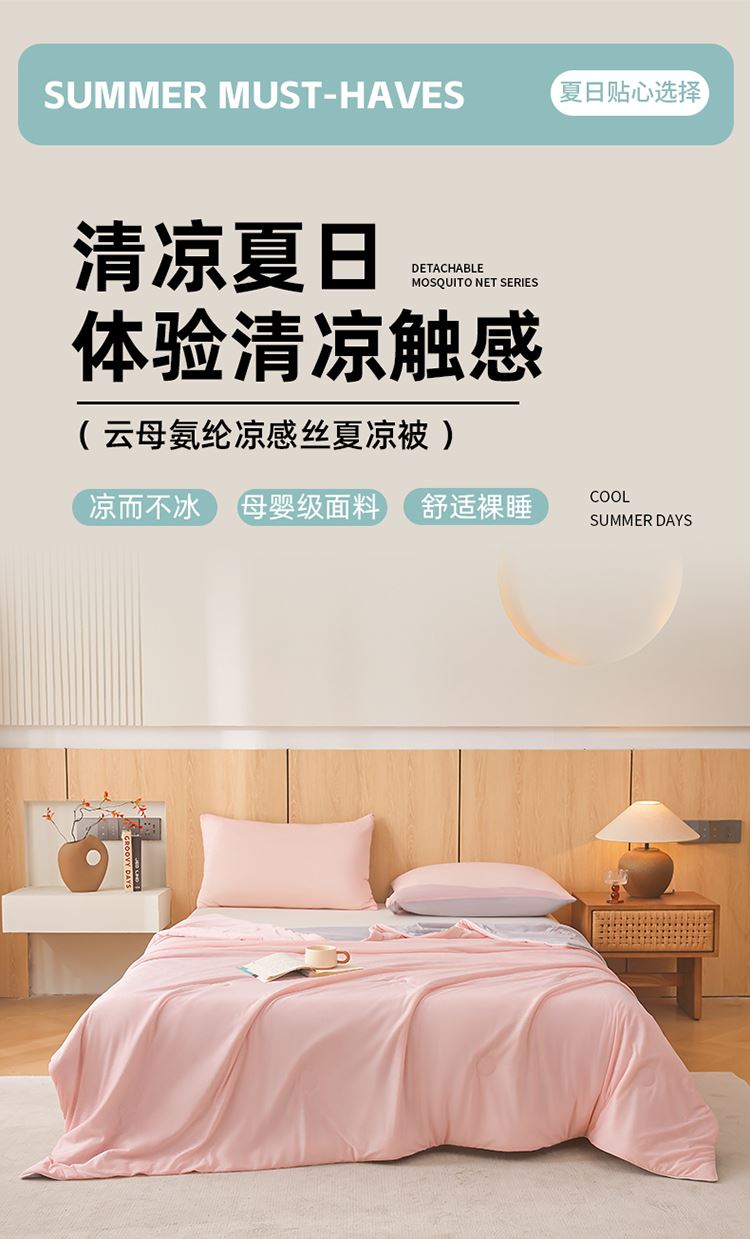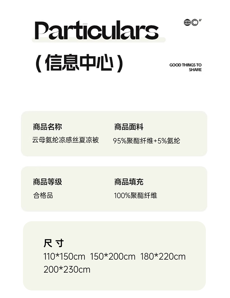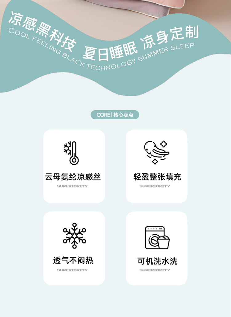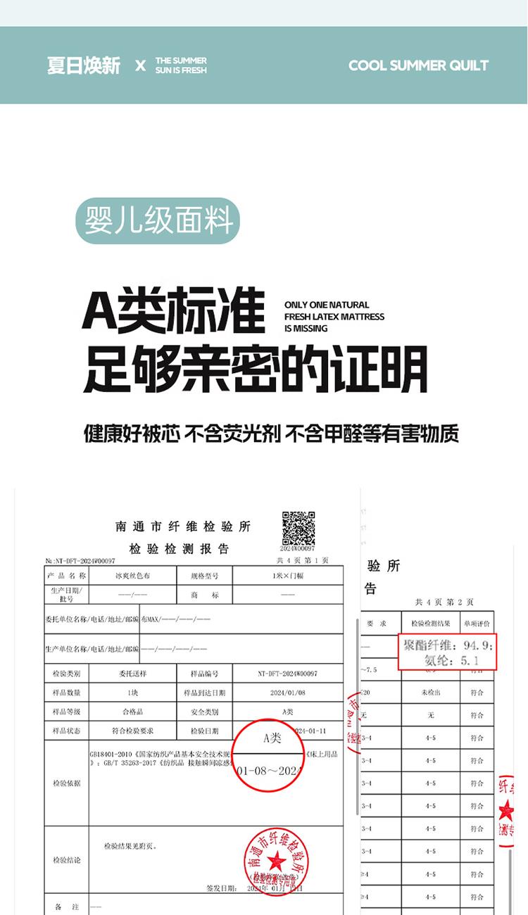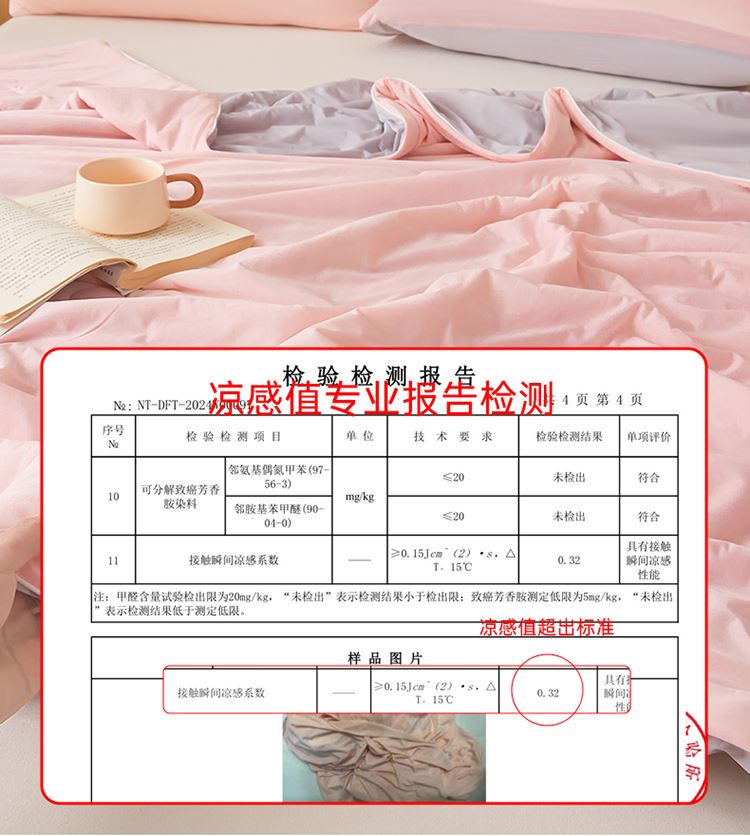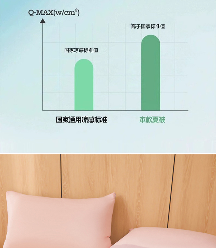 1:清涼夏日體驗清涼觸感 (云母氨綸涼感絲夏涼被) 2:云母涼感面料體感清涼觸感軟糯排濕透氣會呼吸的睡眠環(huán)境 3:*Q-MAX:為衡量皮膚接觸面料將皮膚上的熱量轉(zhuǎn)移到低溫處的性能 數(shù)值越大表示越有涼感 尺寸:180x220cm單夏被 重量:1.35kg(凈重) 包裝:彩盒/禮袋