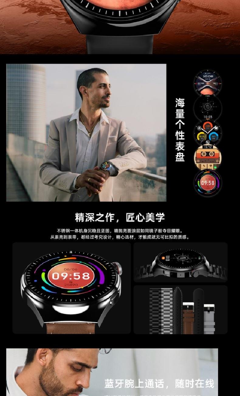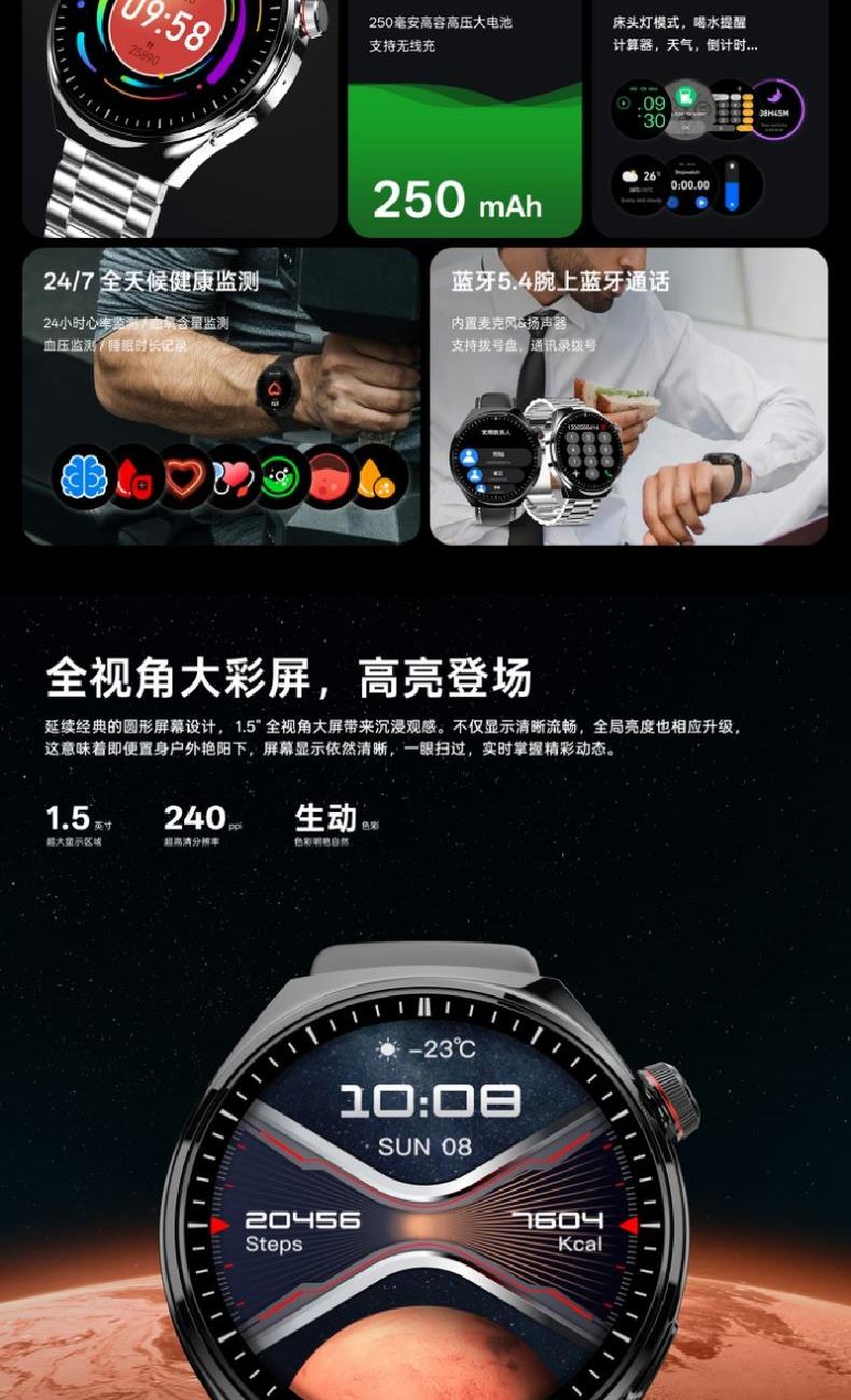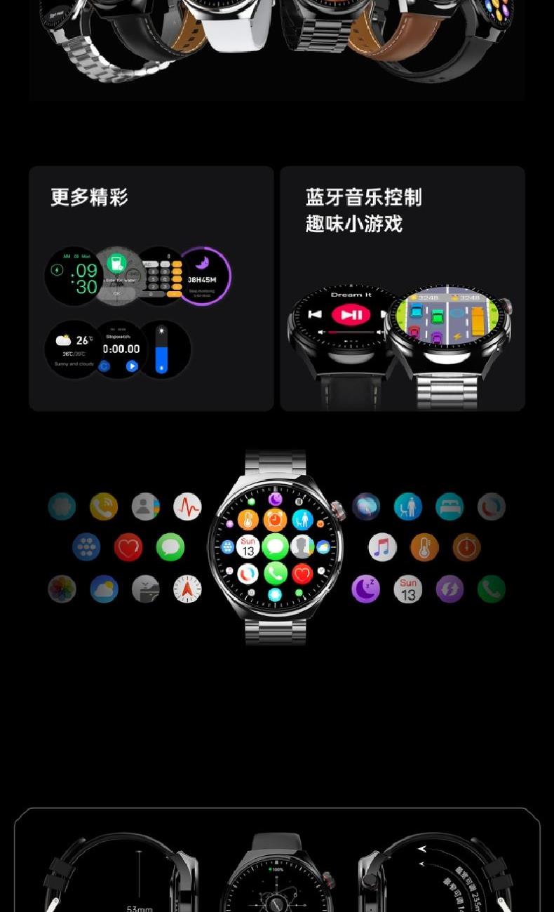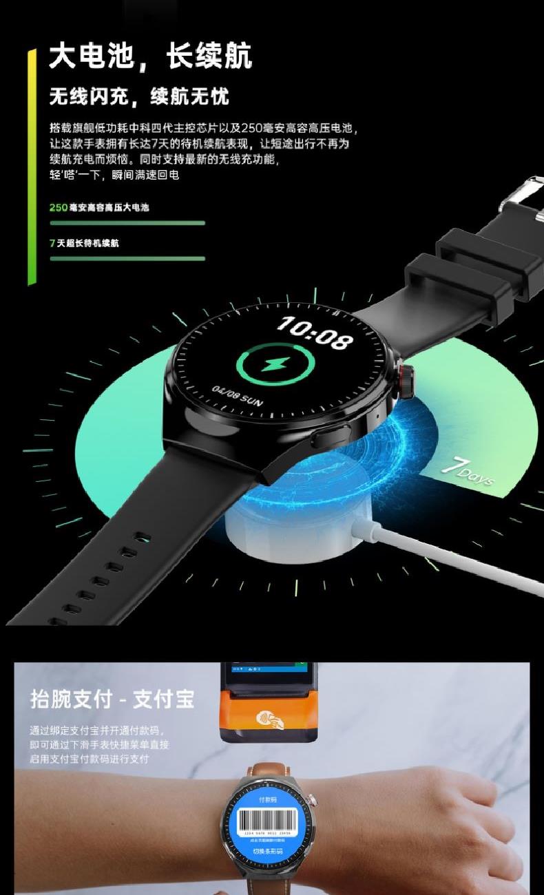 ◆帶支付寶支付,NFC功能,音樂,健康監(jiān)測(包含心率 血壓 血氧 血脂 尿酸 睡眠監(jiān)測等)天氣運(yùn)動 表盤推送、快捷菜單、游戲、靈動島、搖一搖接聽、一鍵連接、OTA、多表盤自定義(選配)等功能應(yīng)有盡有