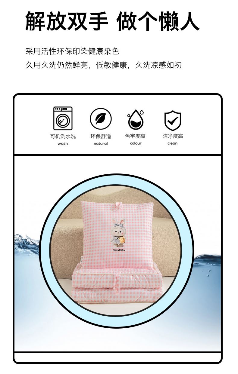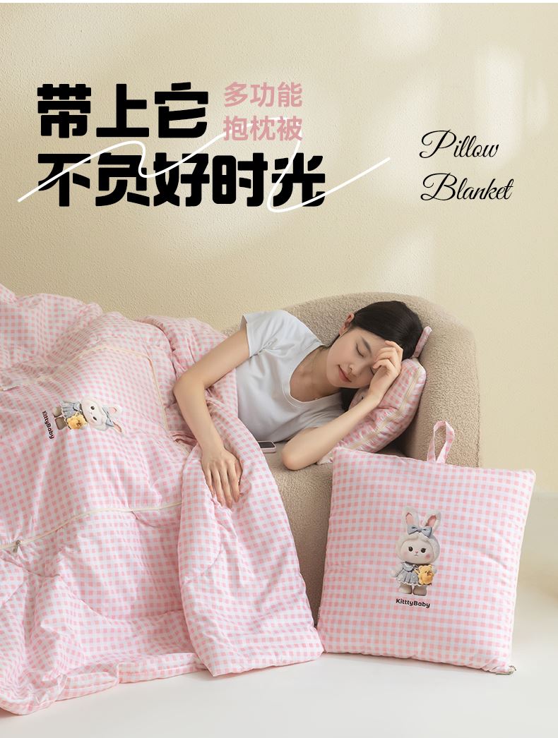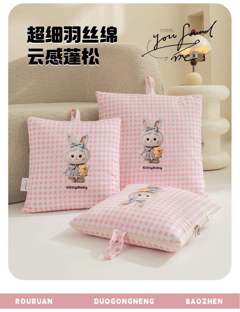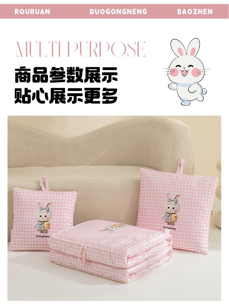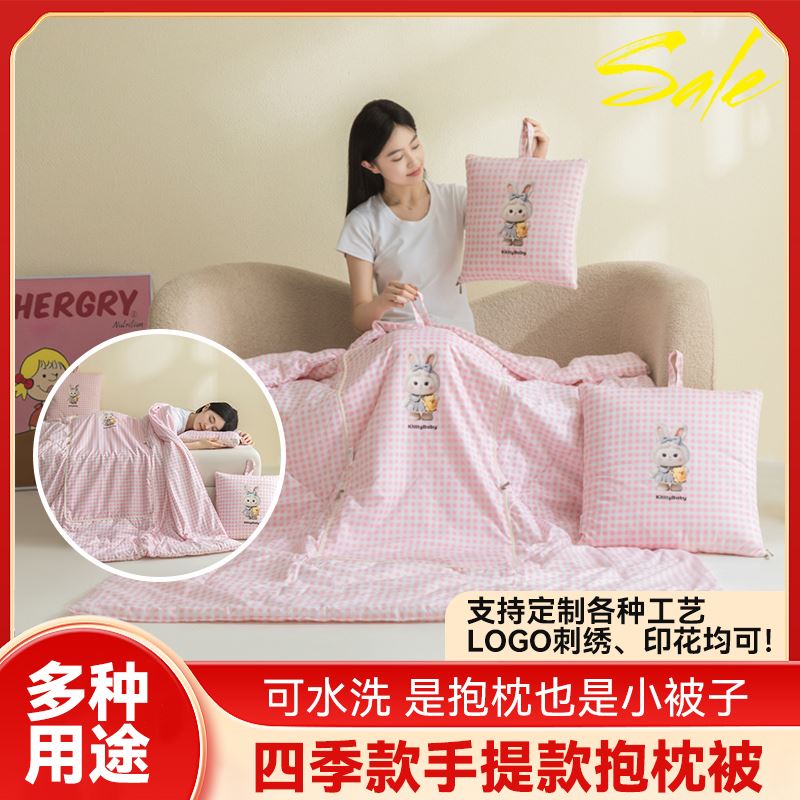 蕊絲坊家紡新款無(wú)印風(fēng)手提款開心兔系列抱枕被 禮品已成功加入PPT!