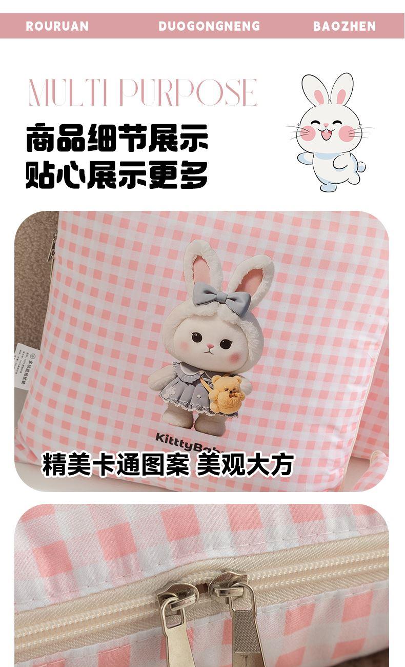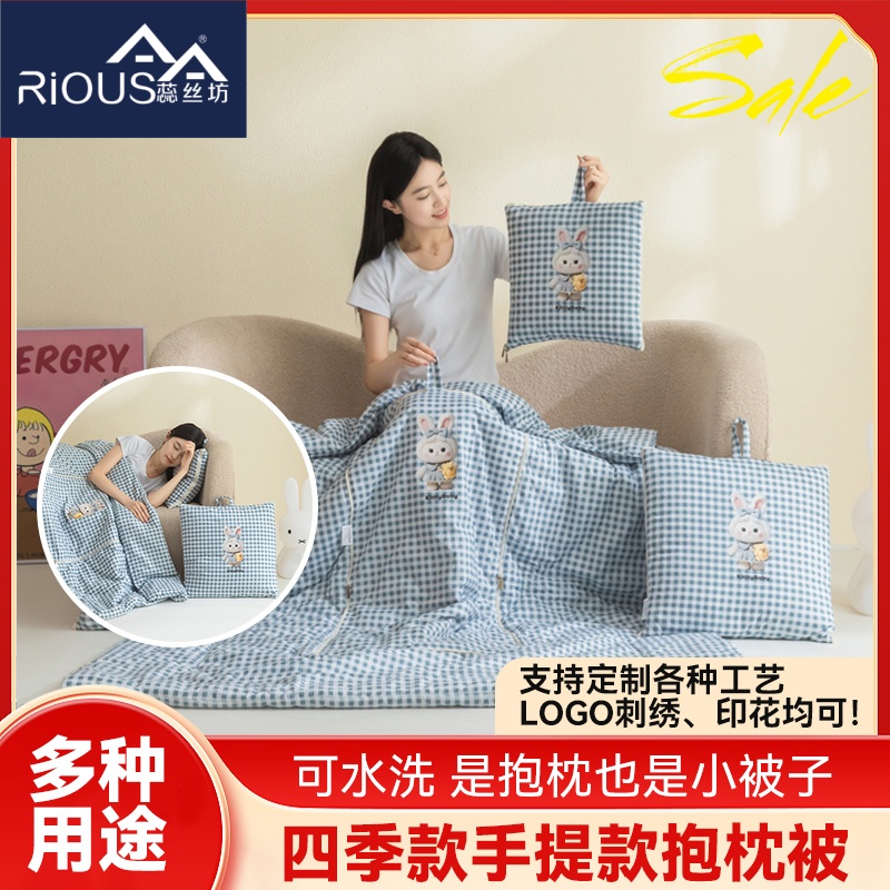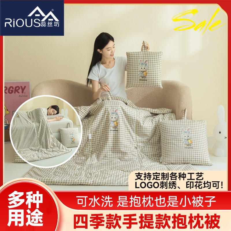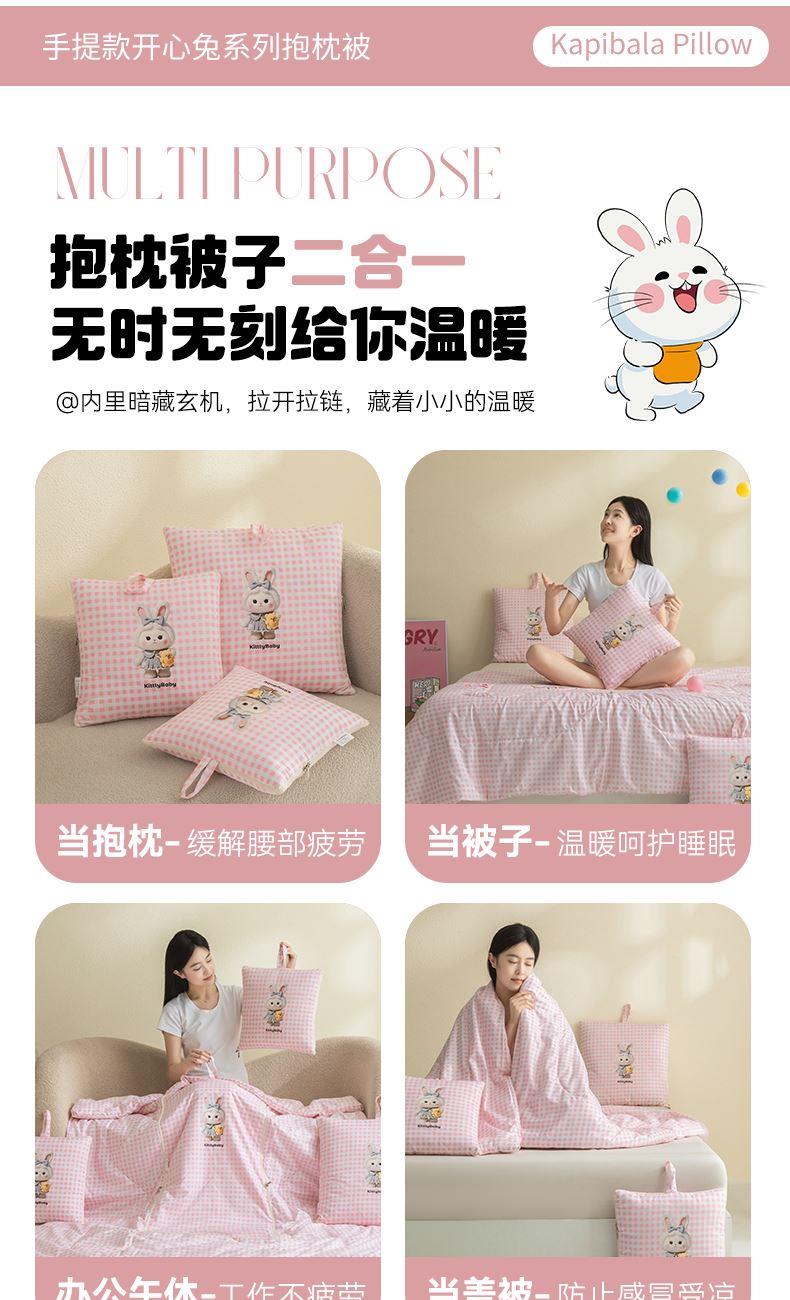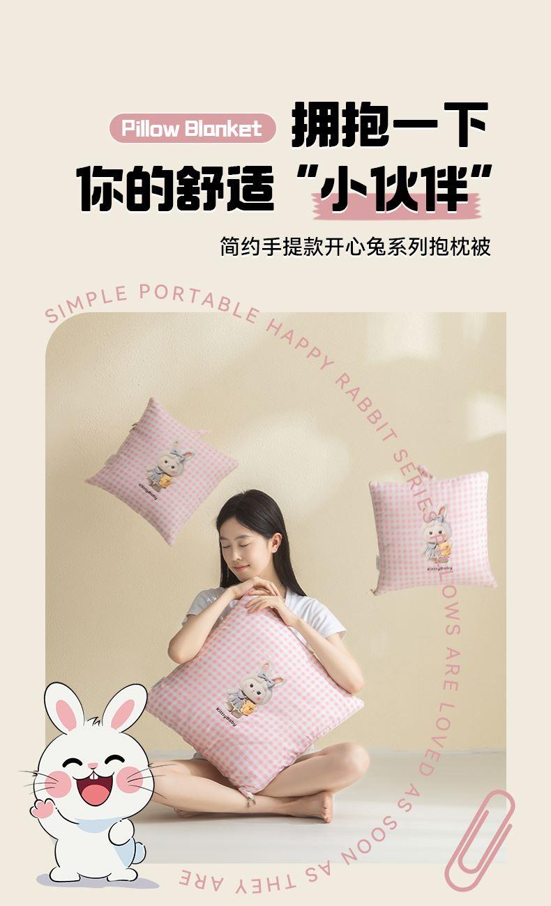 蕊絲坊家紡新款無(wú)印風(fēng)手提款開心兔系列抱枕被