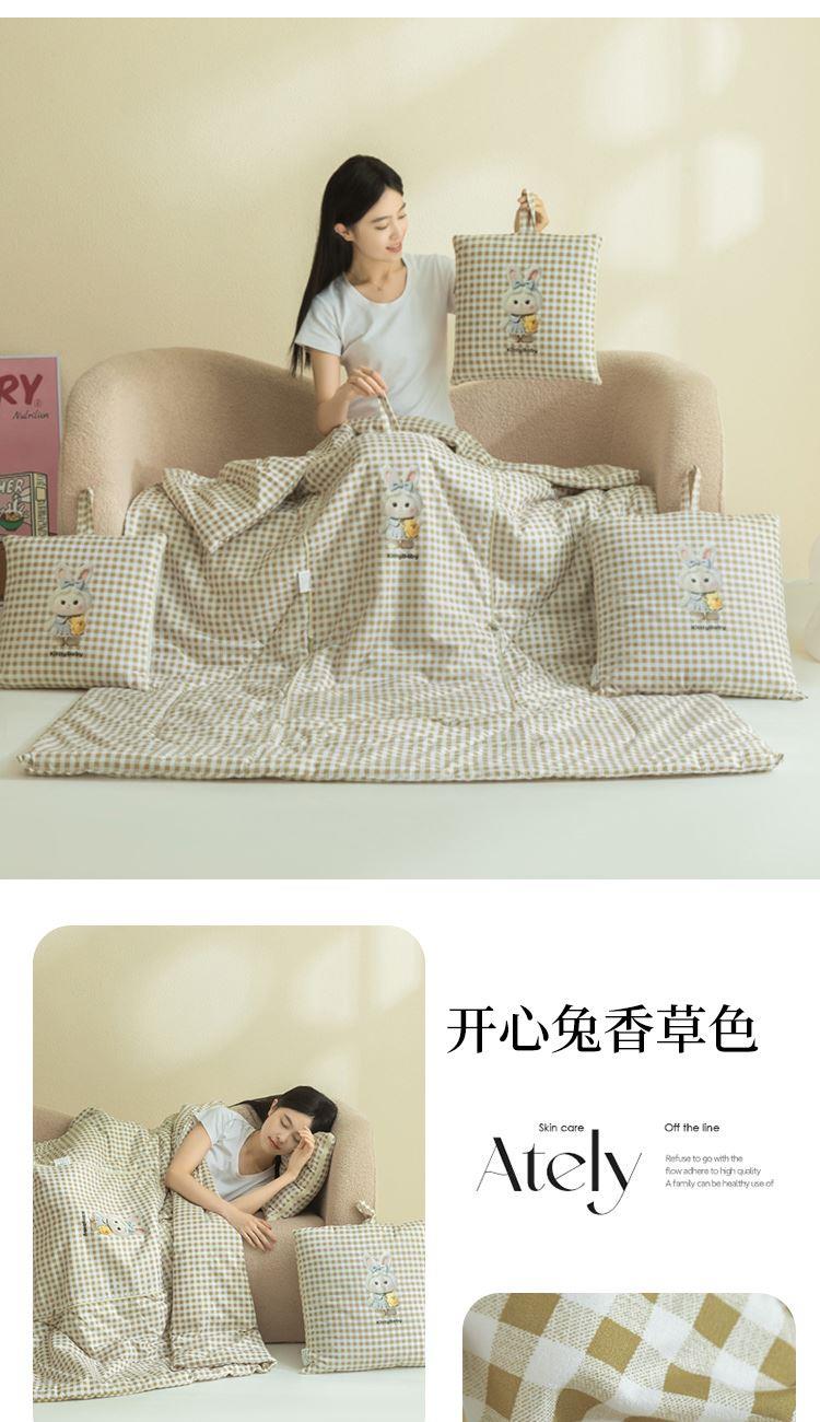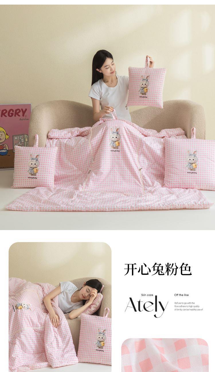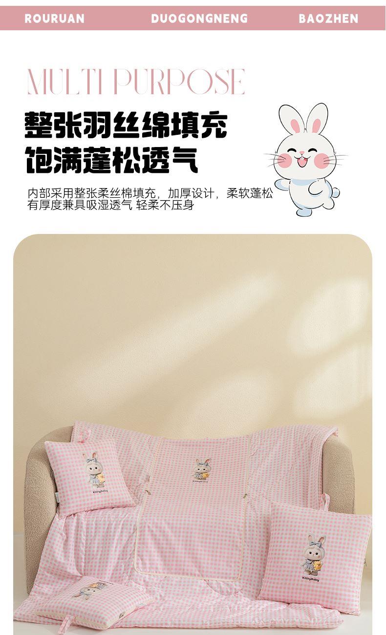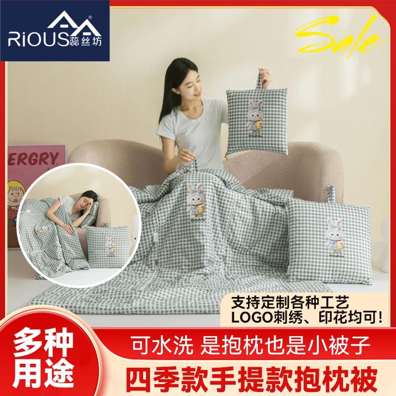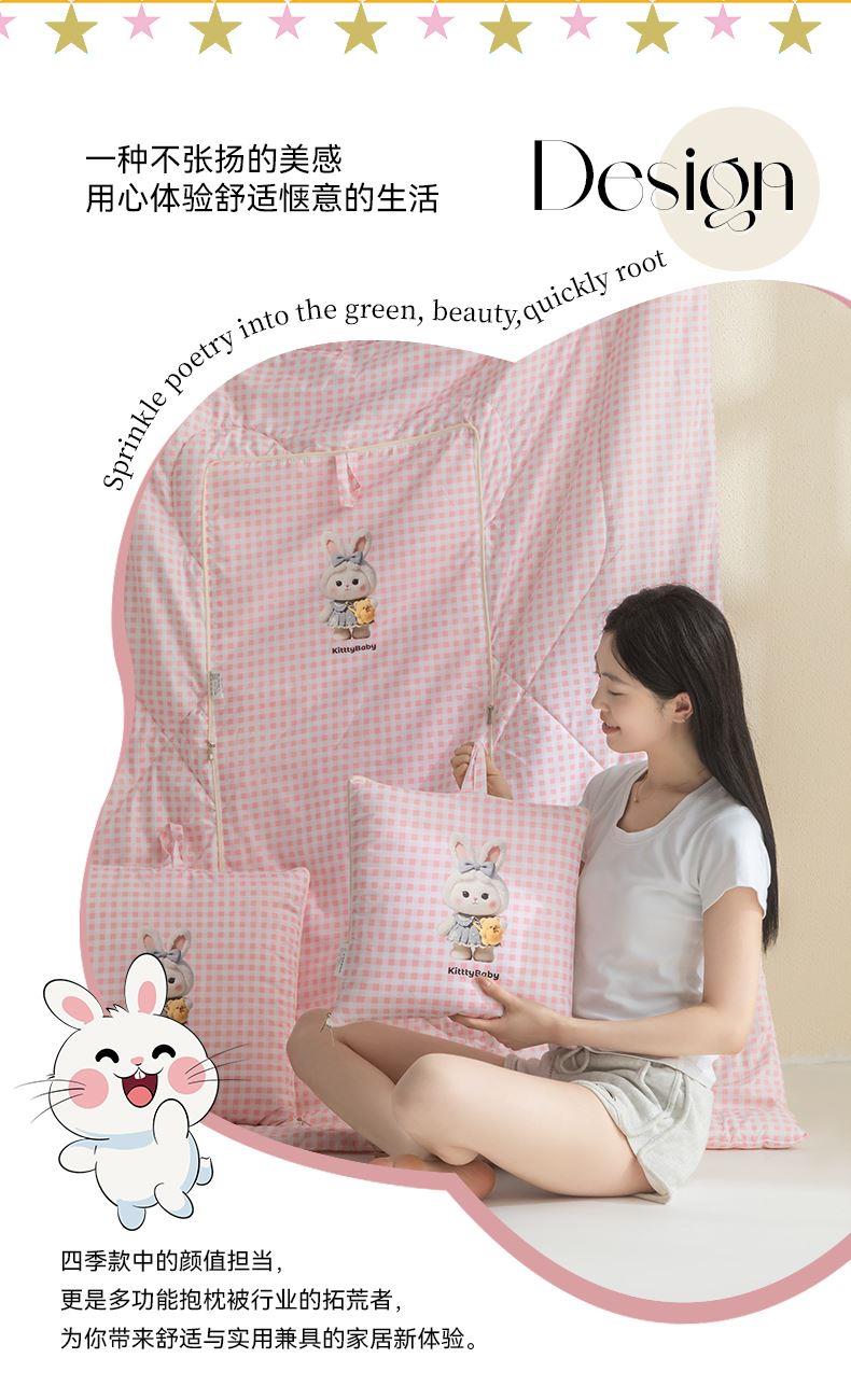 蕊絲坊家紡新款無(wú)印風(fēng)手提款開心兔系列抱枕被