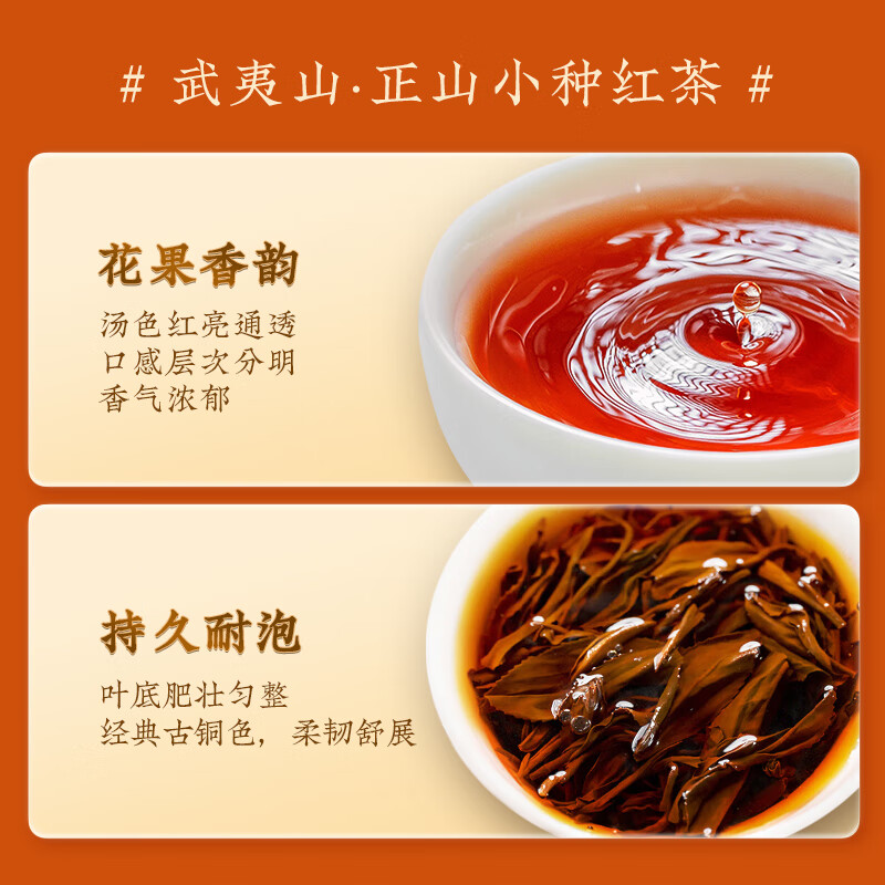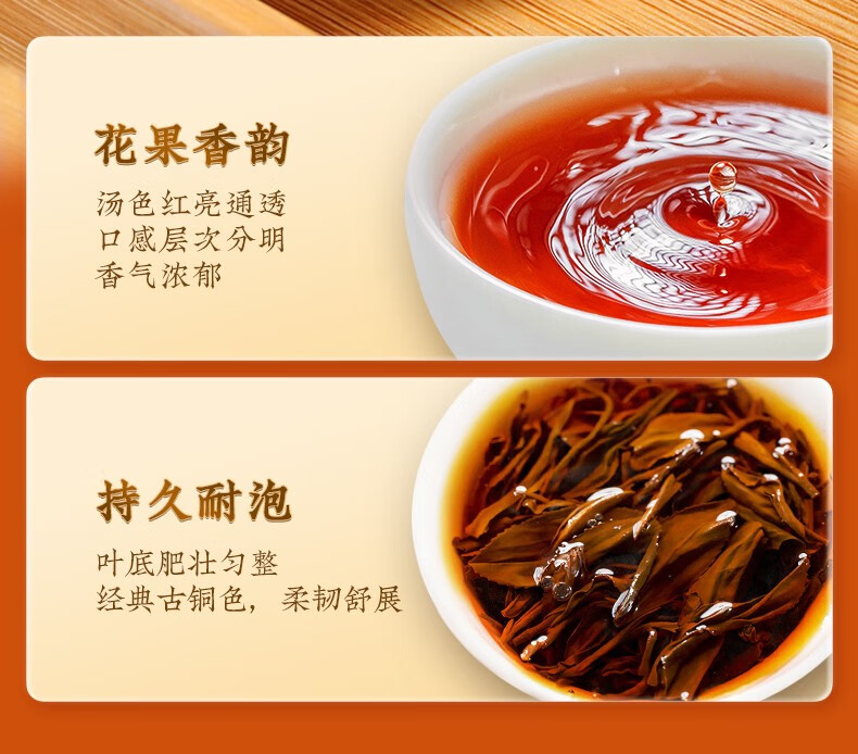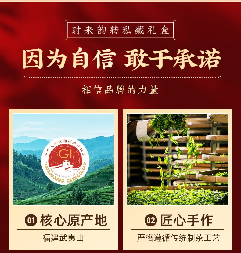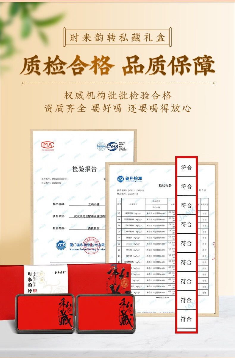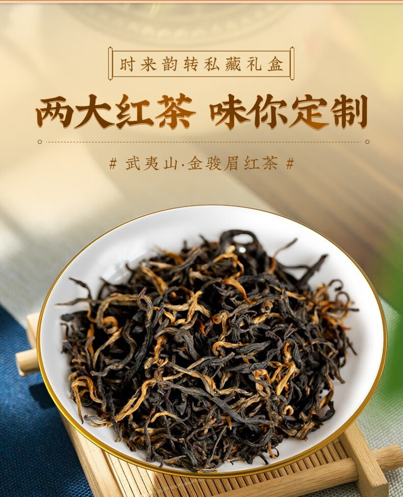 【產(chǎn)名】時(shí)來(lái)韻轉(zhuǎn)·紅茶禮盒 【等級(jí)】金駿眉特級(jí)、正山小種一級(jí) 【總凈含量】150克(2盒) 【規(guī)格】金駿眉75克、正山小種75克 【配料】武夷紅茶 【保質(zhì)期】36個(gè)月 【貯存條件】清潔、密封、避光、防潮、防異味