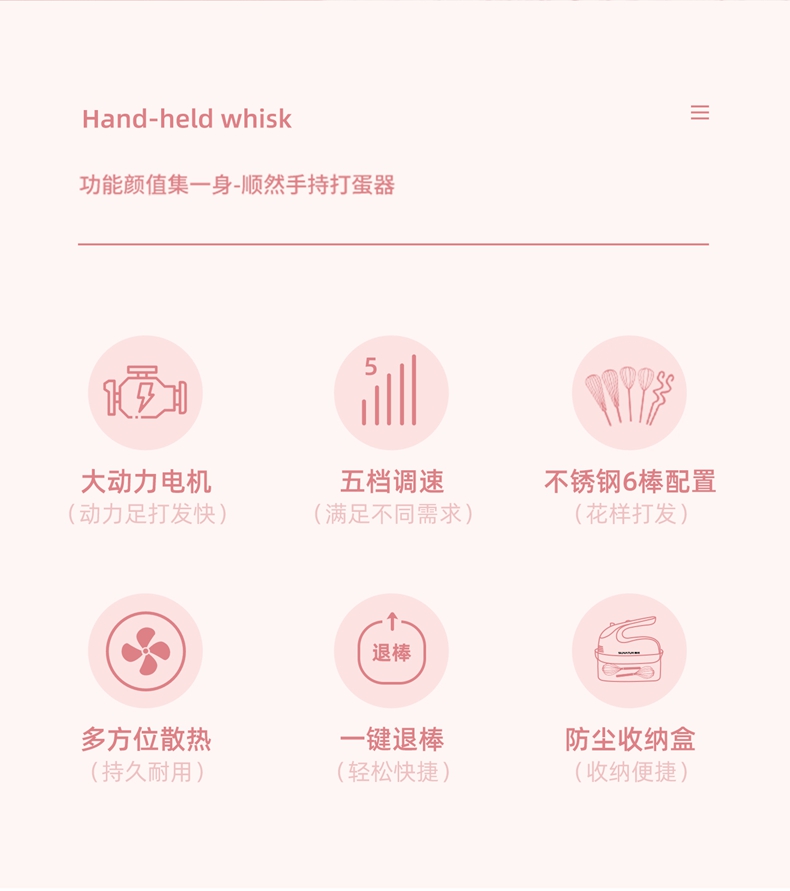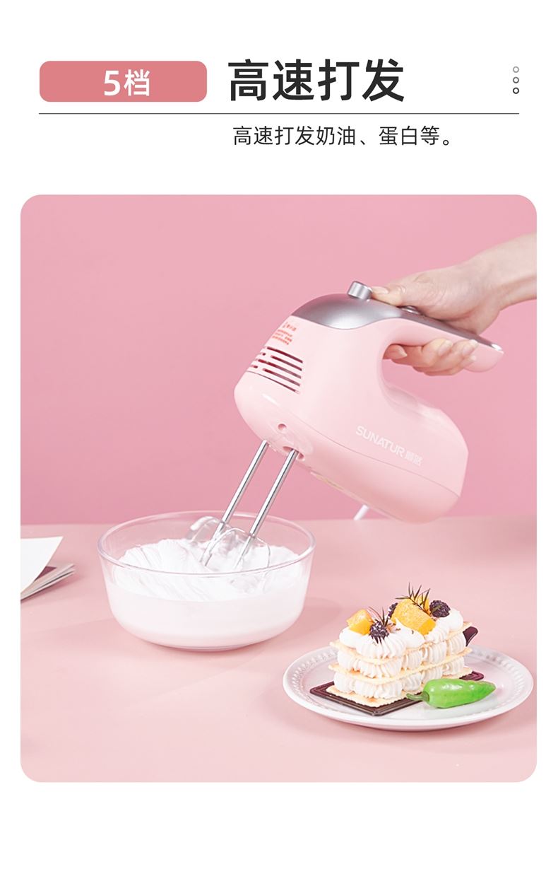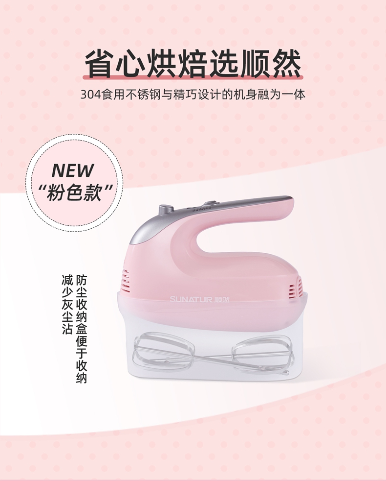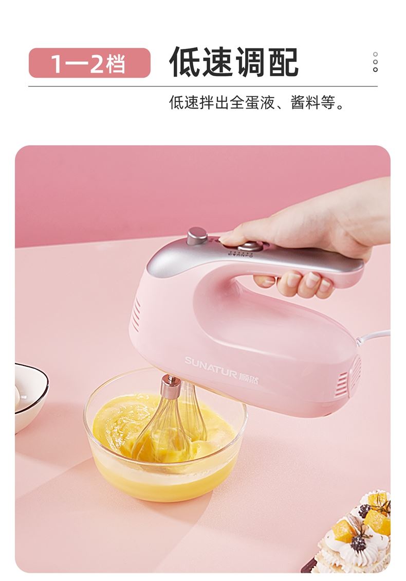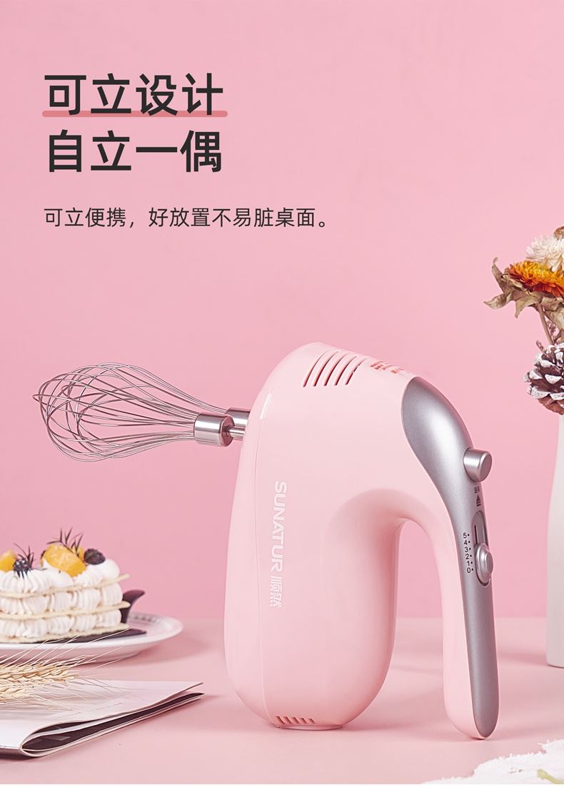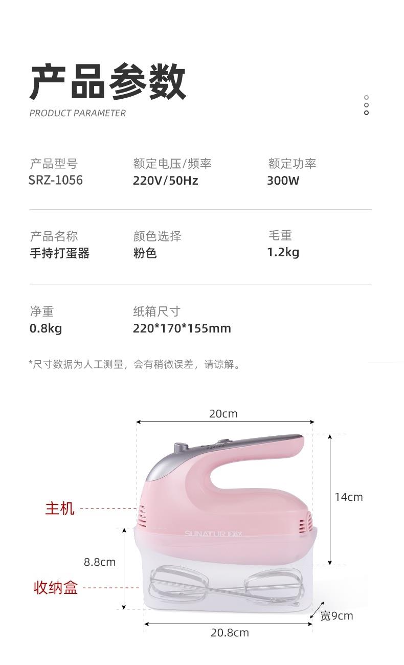 順然SUNATUR粉色打蛋器六棒收納款SRZ-1056